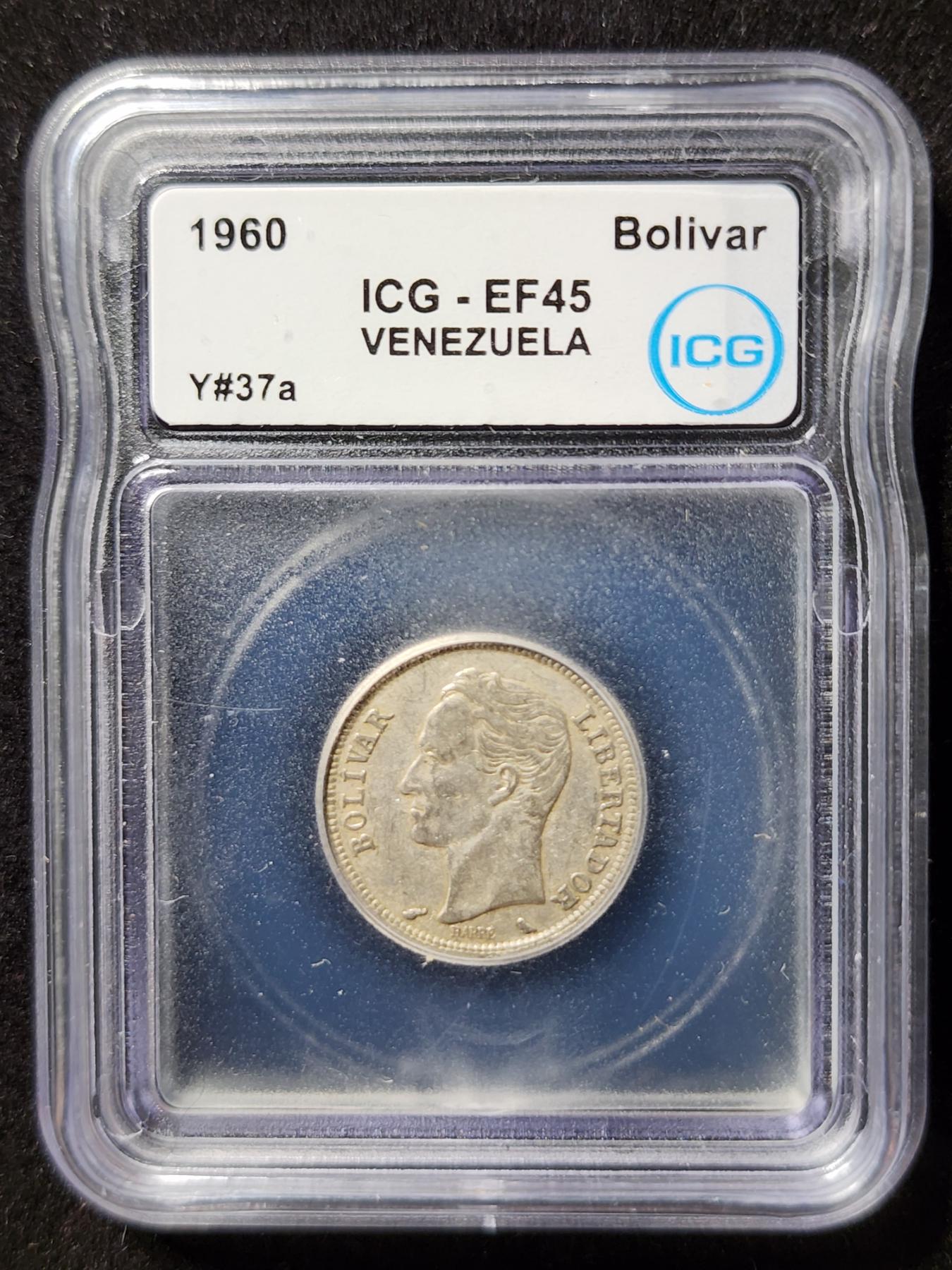 ICG EF45 Graded 1960 Venezuela Bolivar Coin
