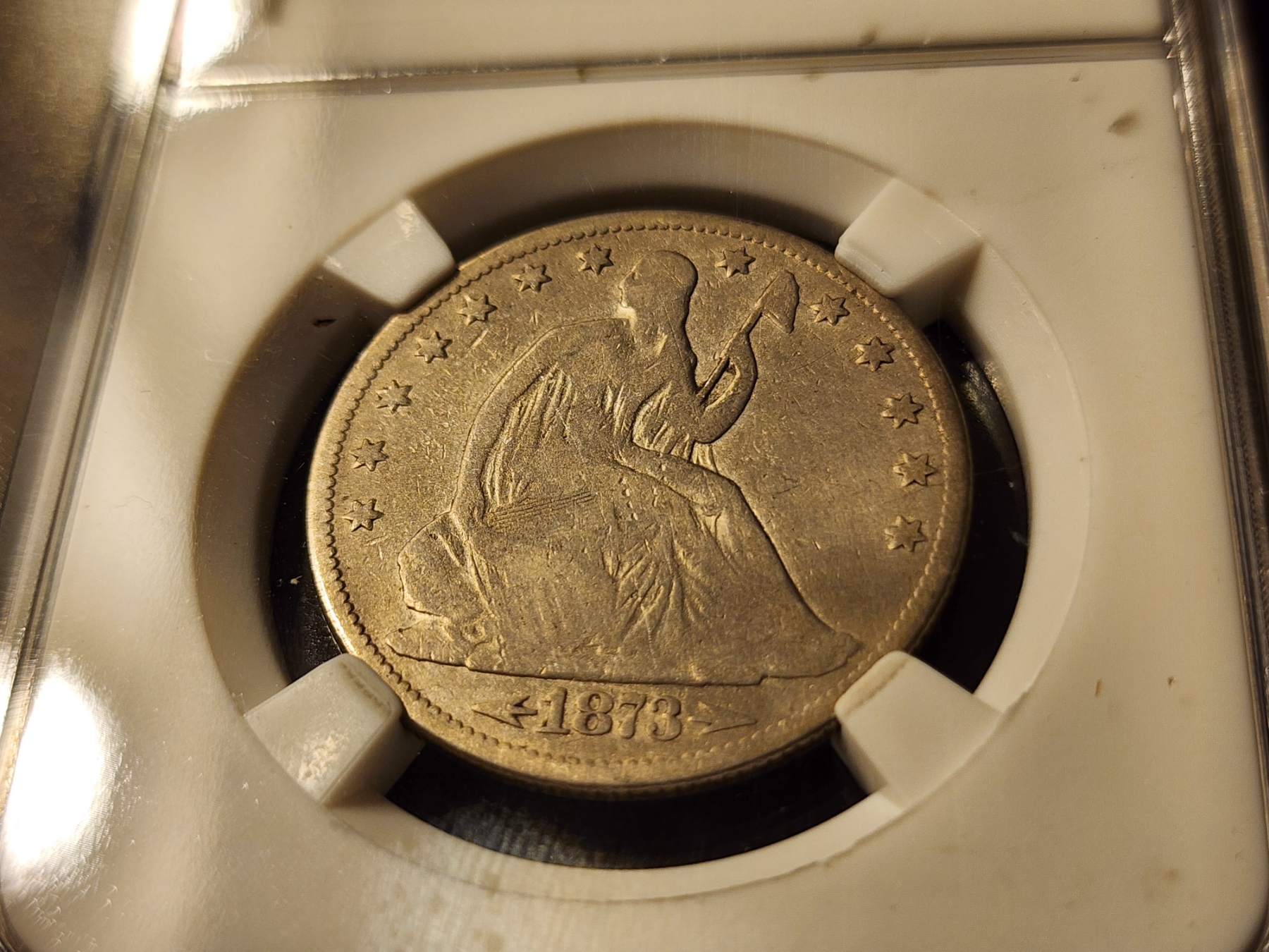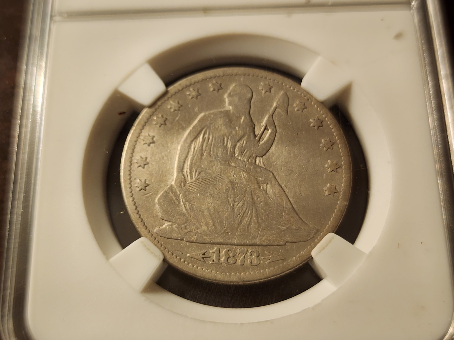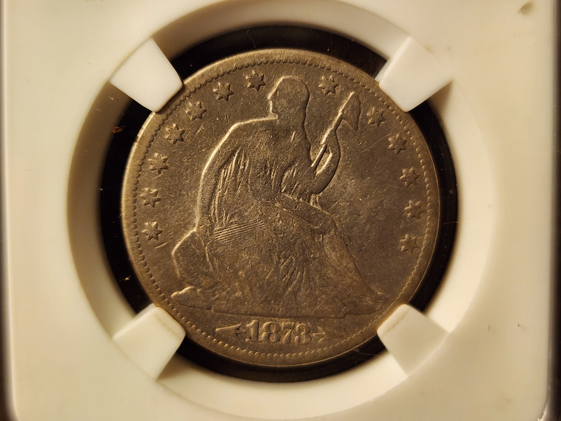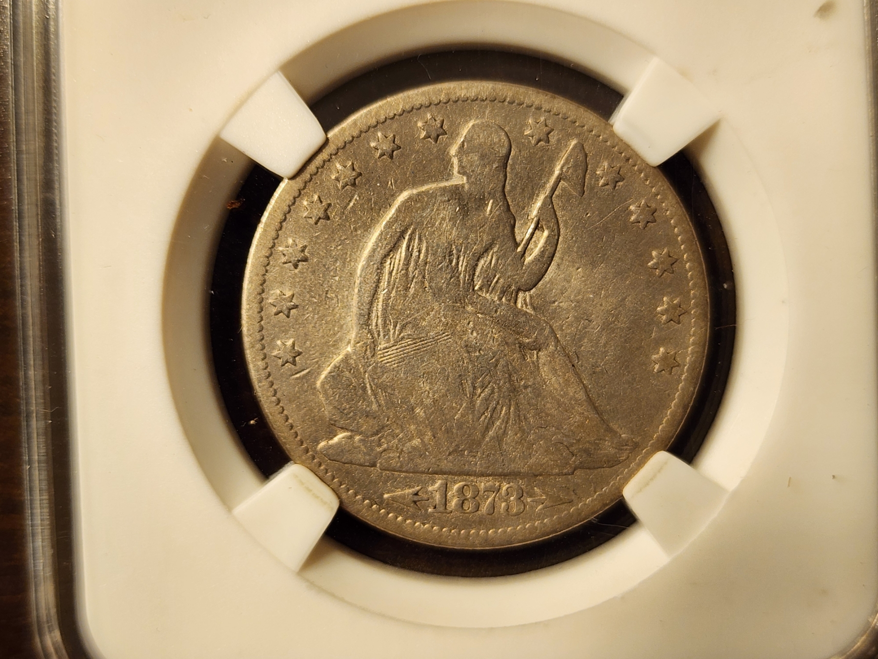 INCREDIBLE 1873 Seated Liberty 90% Silver Half Dollar ~ This Coin Comes In A Slab Case & Is In Higher Grade Condition!