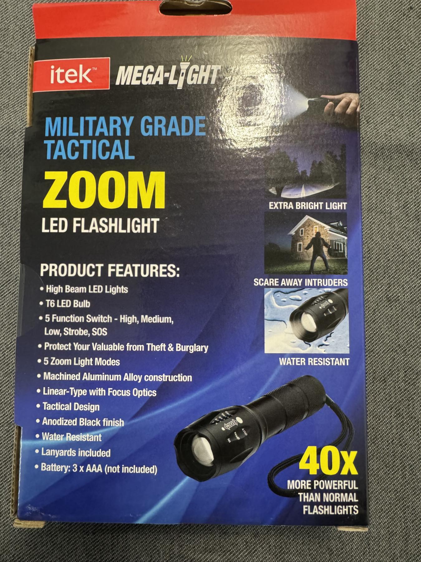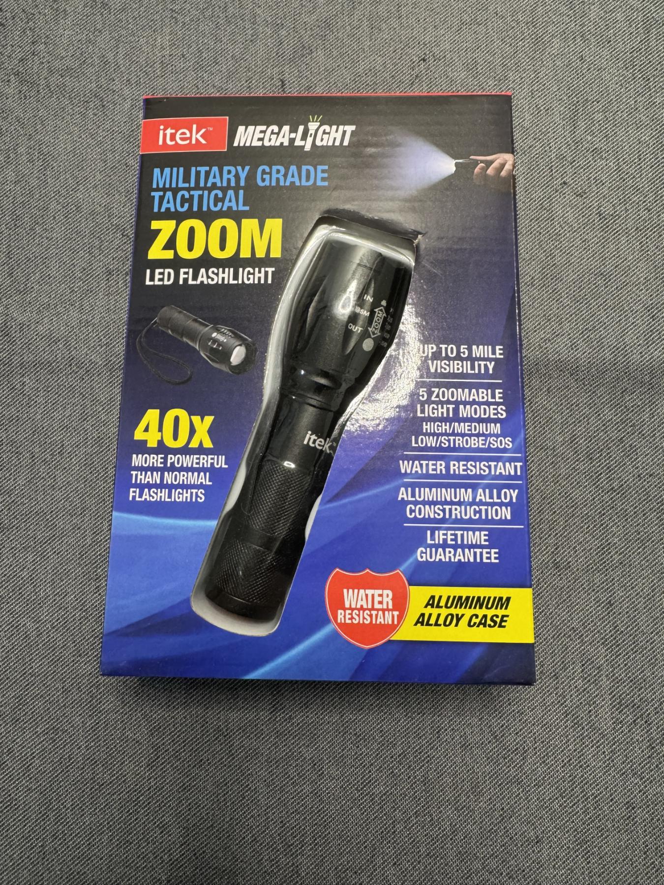 ITEK Mega-Light Military Grade Tactical Flashlight - Brand New In The Package