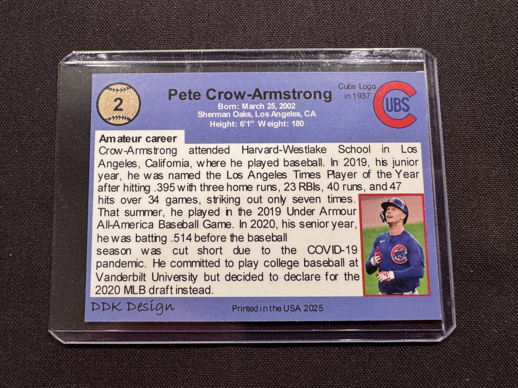Incredible Pete Crow Armstrong Chicago Cubs - PCA - Rookie Card - Mint Condition - Super Star