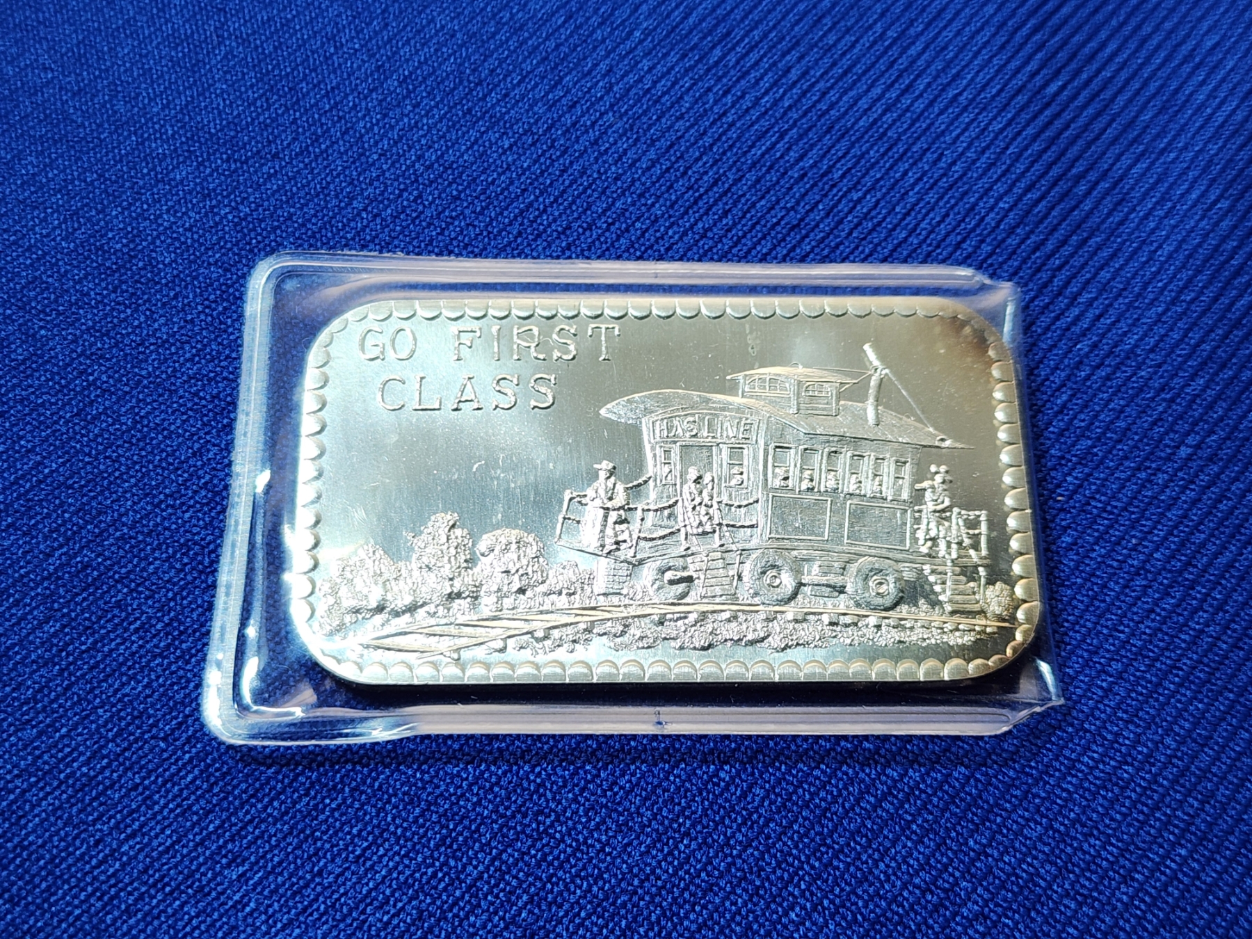 Incredible - RARE - "Go First Class" Silver Art Bar - 1 Ounce .999 Fine Silver