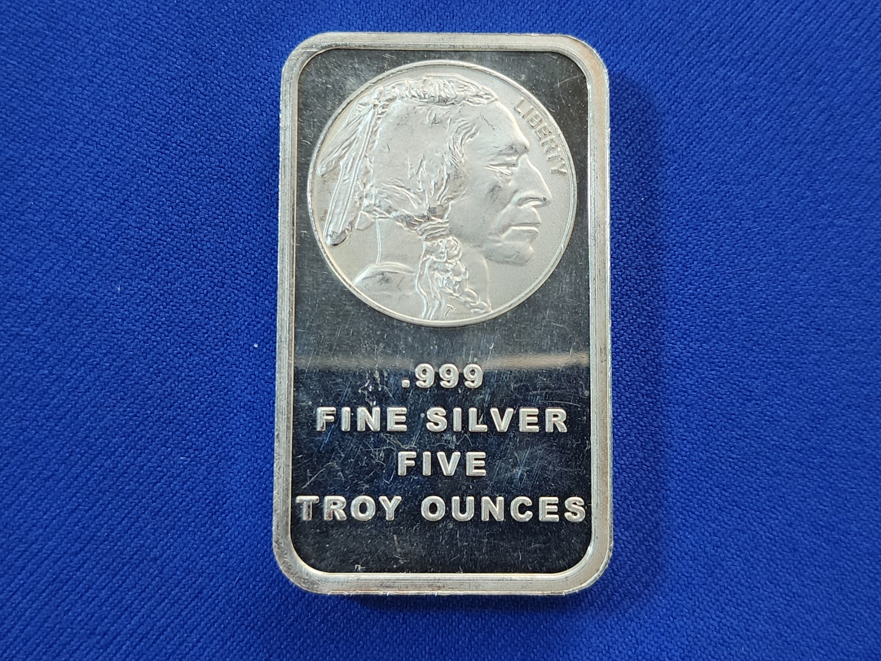 Indian Head/Buffalo Design 5 Troy Ounce .999 Fine Silver Bar