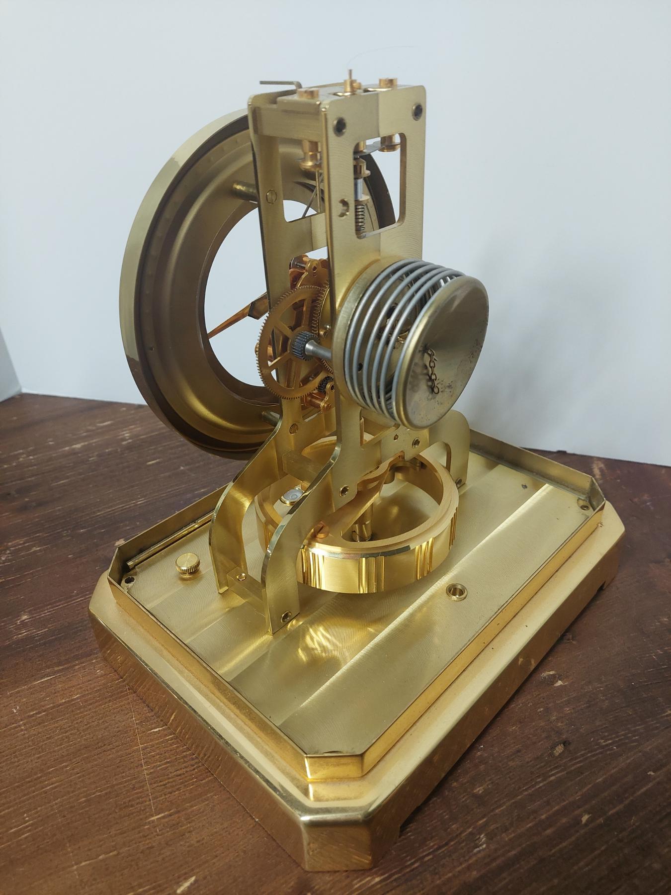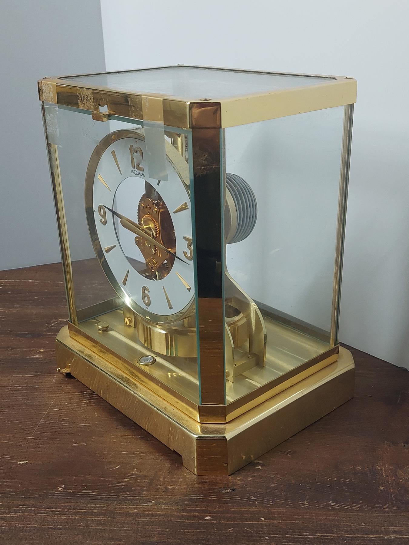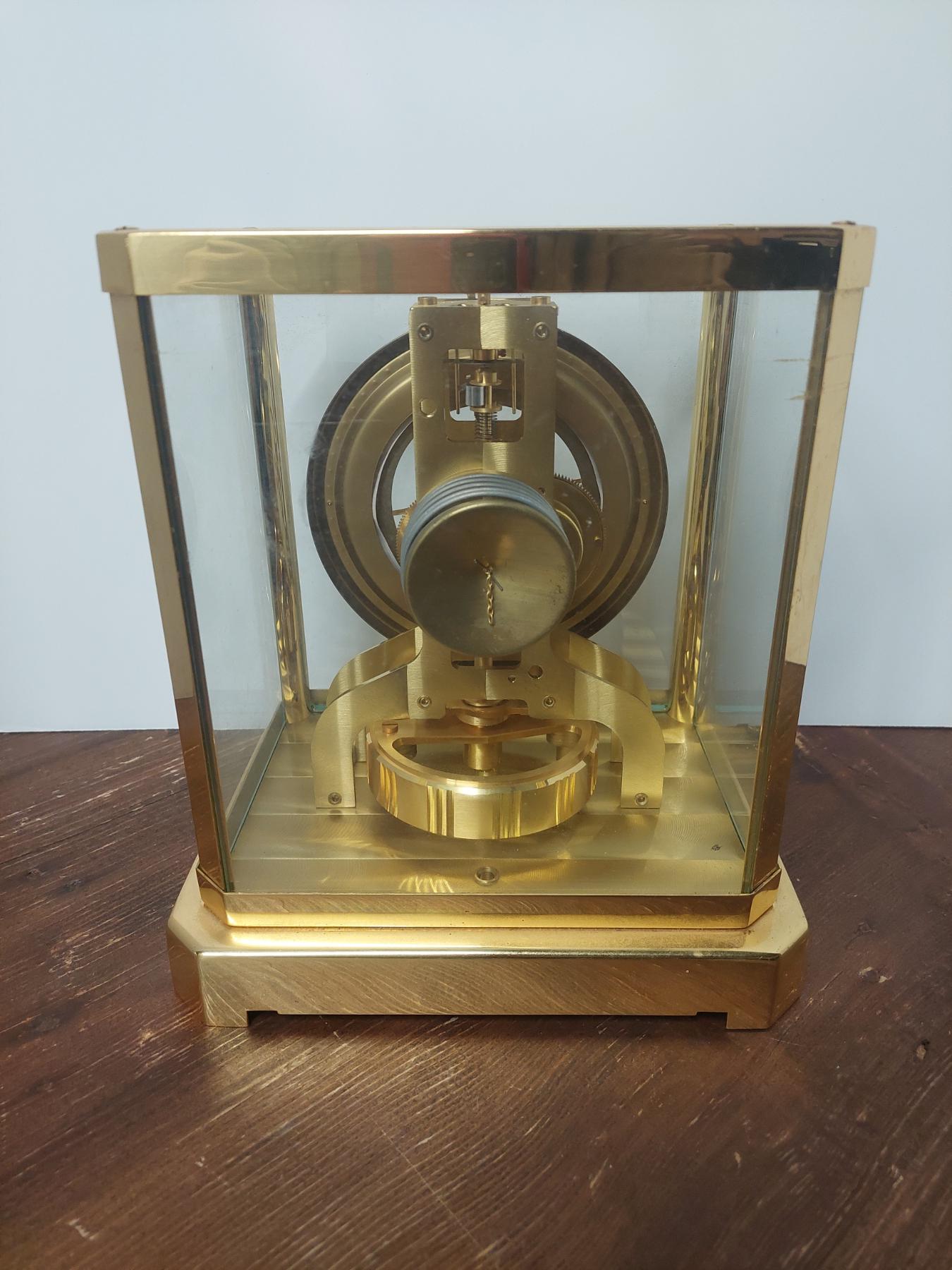 Jager LeCoutre' "ATMOS" Mantle / Shelf Clock - As Is - Very desireable colector clock when complete - hovever, this example is sold as is for repair / restoration. Front glass is not original and is not of proper height. Missing bellows cover & corner piller screws which hold upper glass compartment in place. Sold for parts or project.