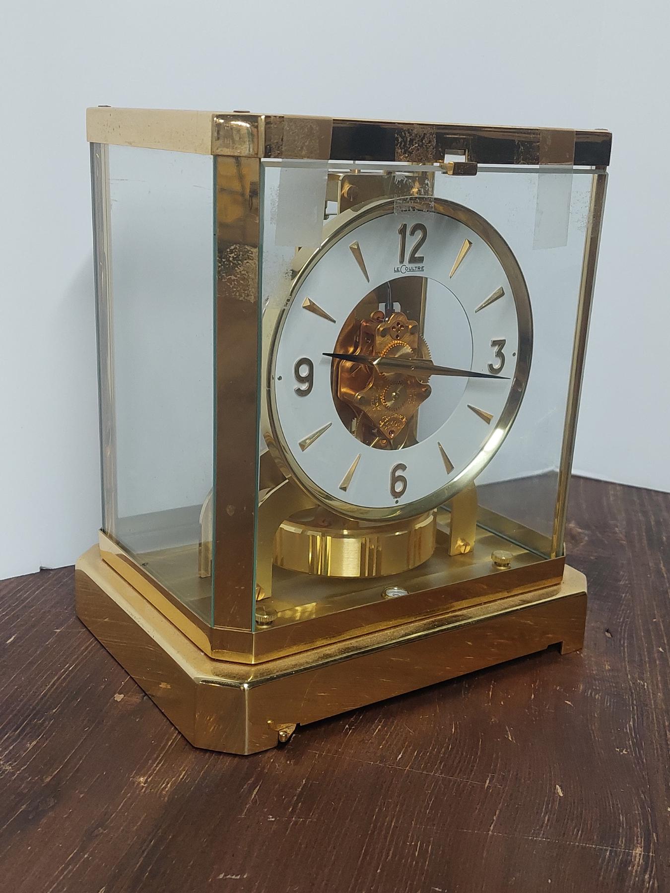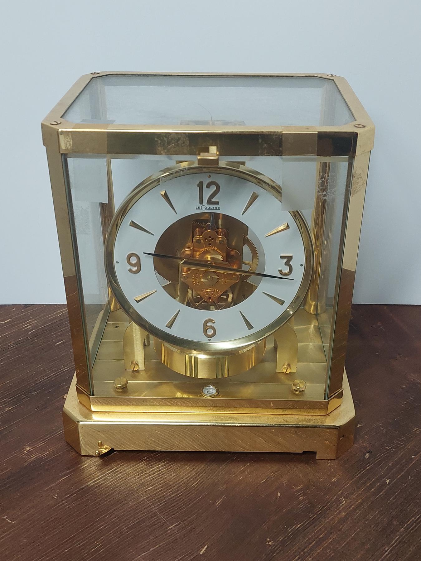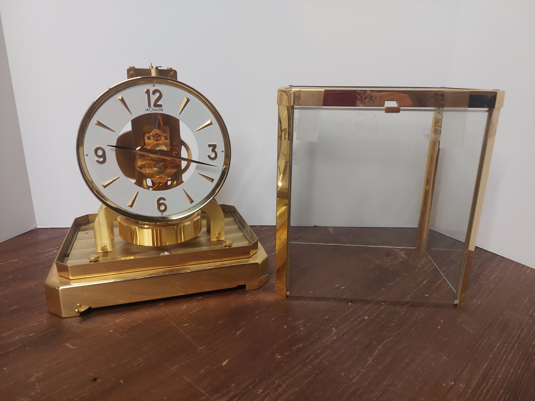 Jager LeCoutre' "ATMOS" Mantle / Shelf Clock - As Is - Very desireable colector clock when complete - hovever, this example is sold as is for repair / restoration. Front glass is not original and is not of proper height. Missing bellows cover & corner piller screws which hold upper glass compartment in place. Sold for parts or project.