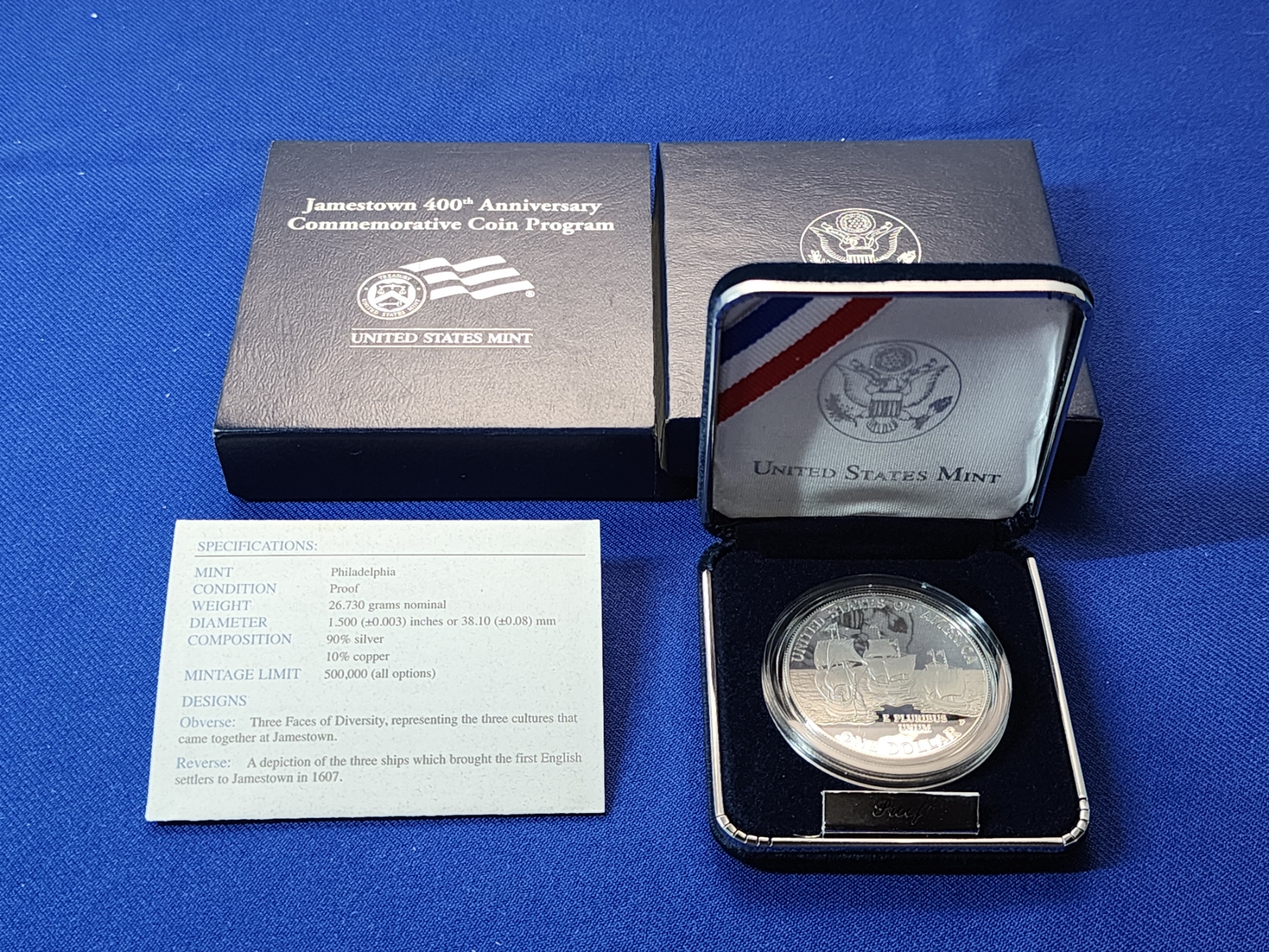 Jamestown 400th Anniversary Commemorative Coin Program - 90% Silver Proof Coin w/ COA