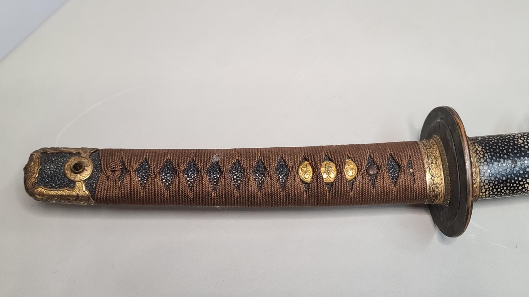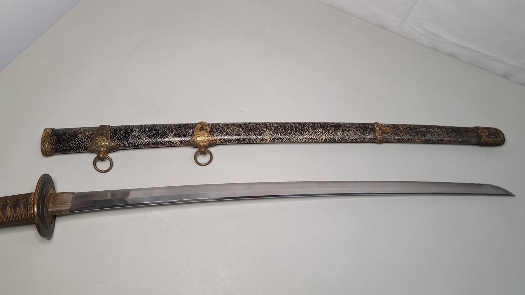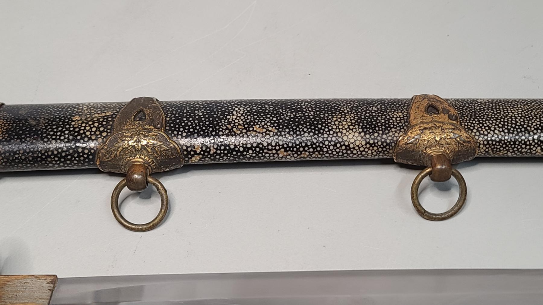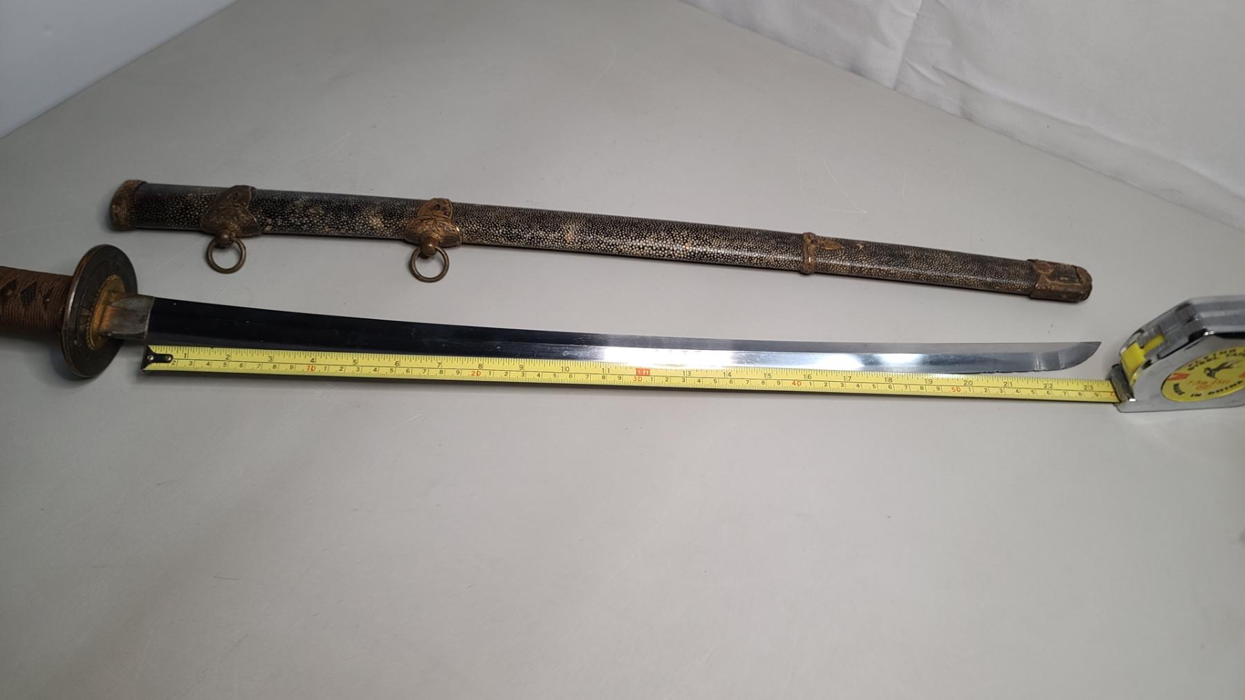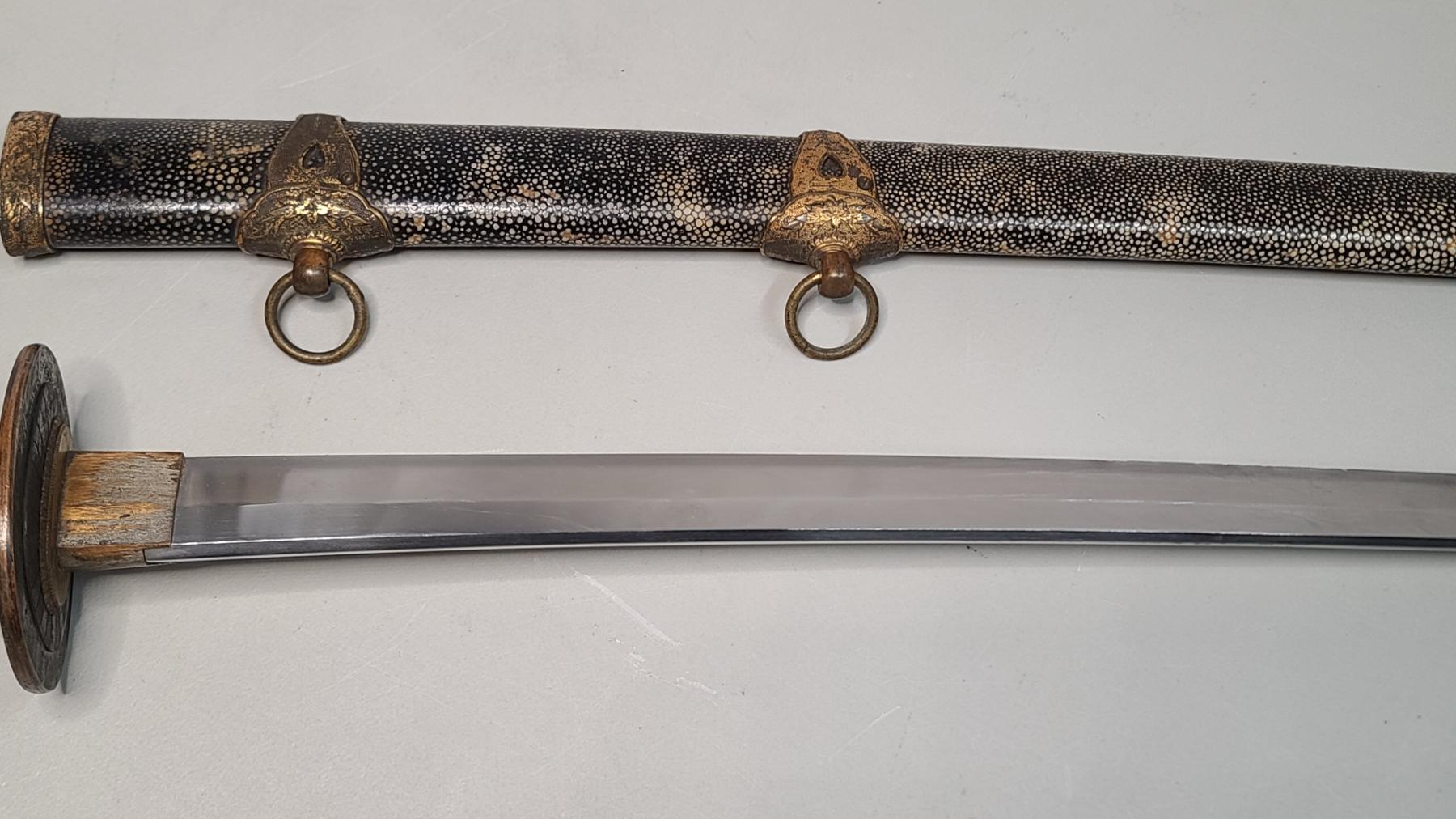 Japanese Katana Sword With Stingray (Shagreen) Wrapped Sheath - Blade Measures Approx 24 Inches