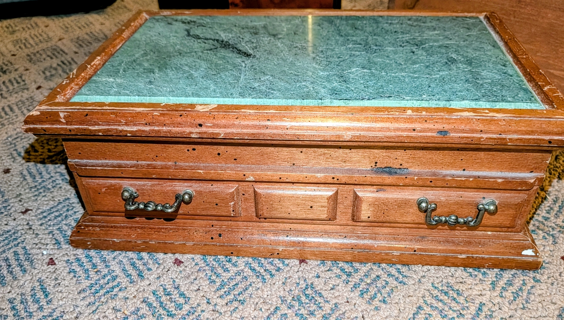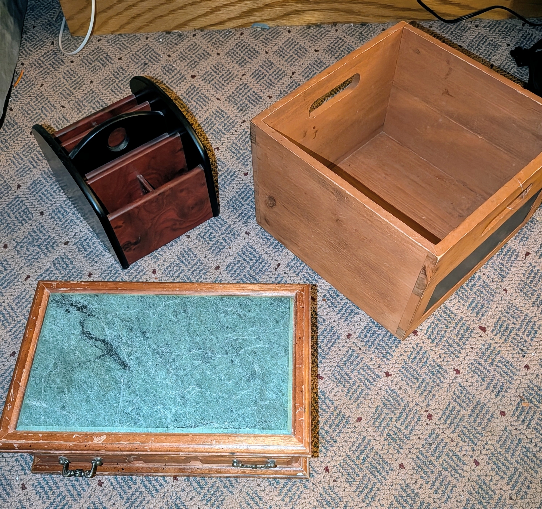Jewelry Box W Marble Top And Two Wood Storage Boxes