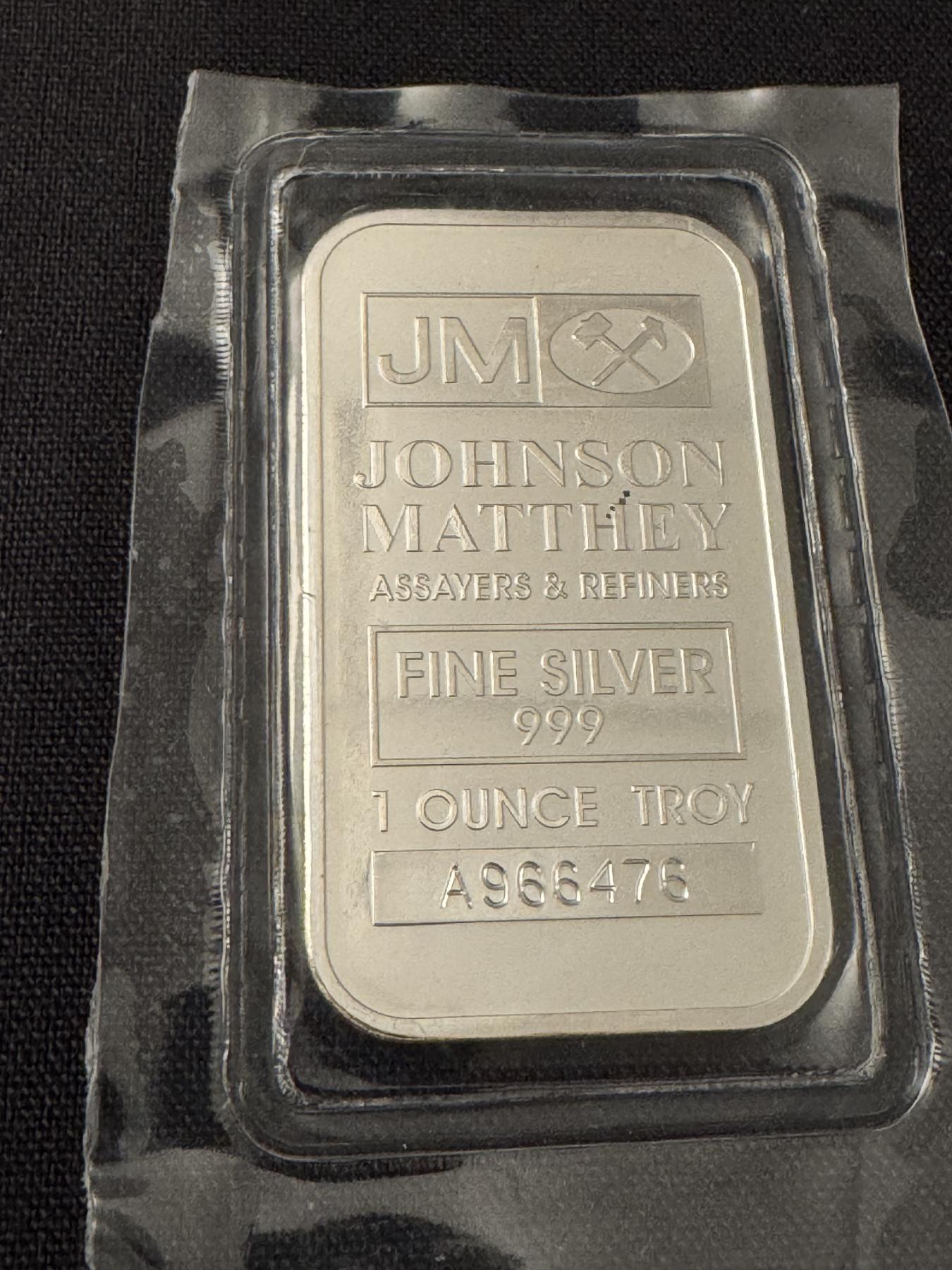 Johnson Matthey .999 Fine Silver One Troy Ounce Bar - Mint Condition & Sealed