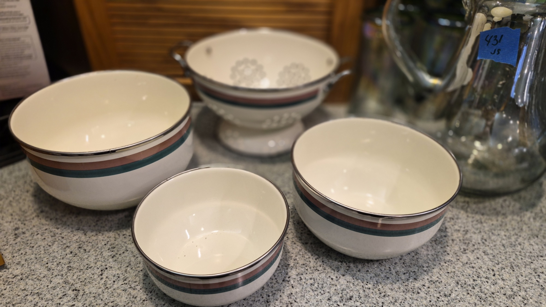 Kitchenware - 4 Pcs Porcelain On SS Assorted Including Strainer - See Pics