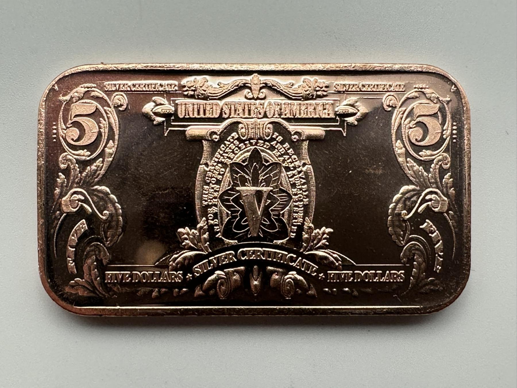 Lakota Chief '$5 Silver Certificate' 1 AVDP oz .999 Fine Copper Bar