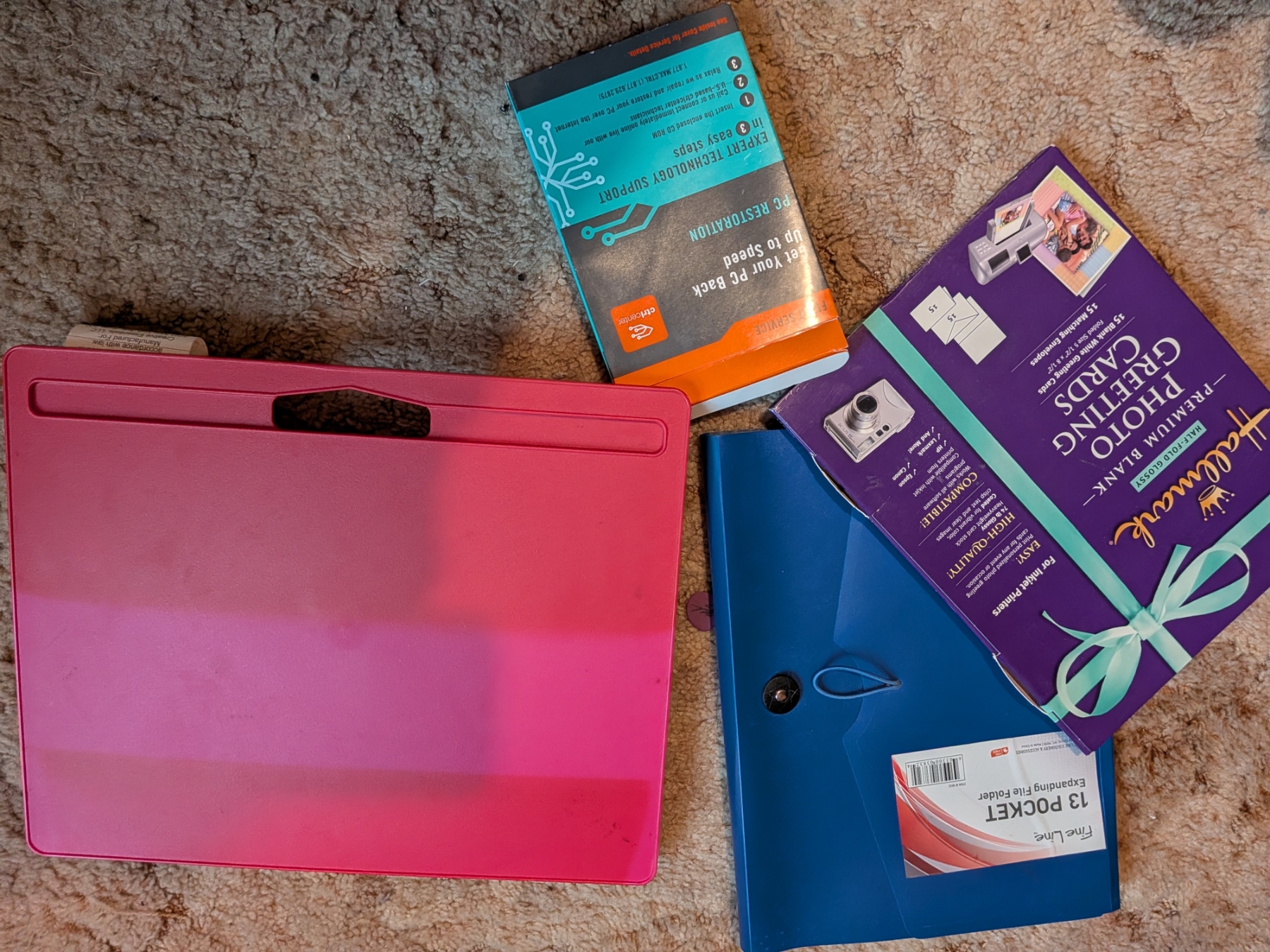 Lap Desk, Photo Paper, File Folder, Blue Nylon Hamper