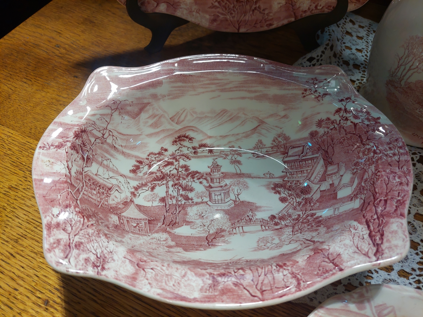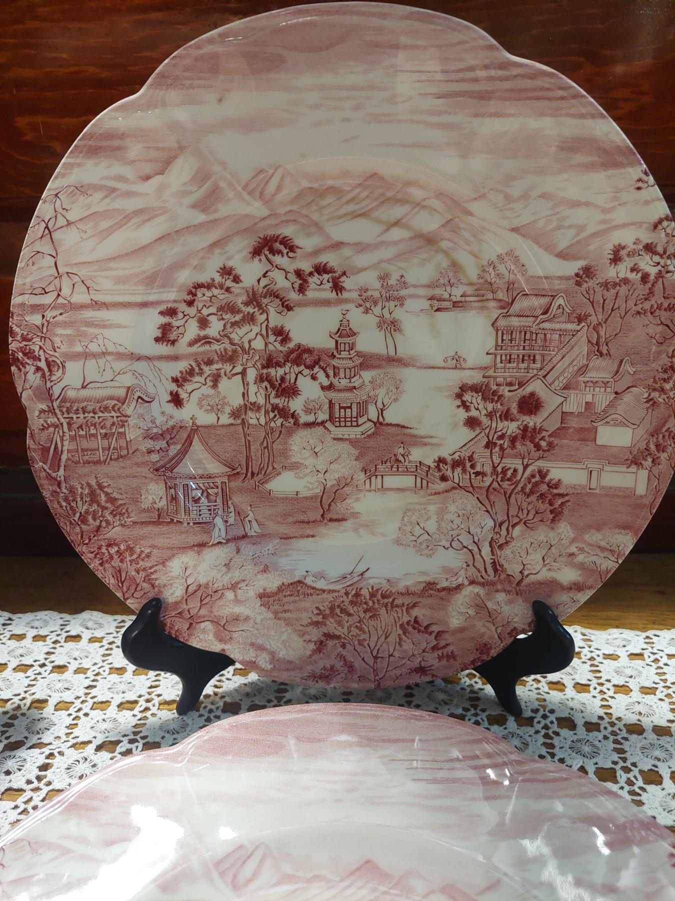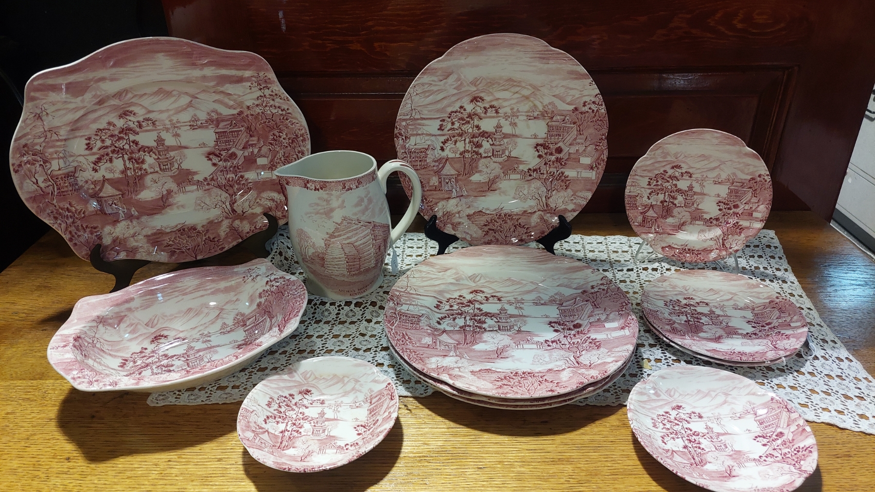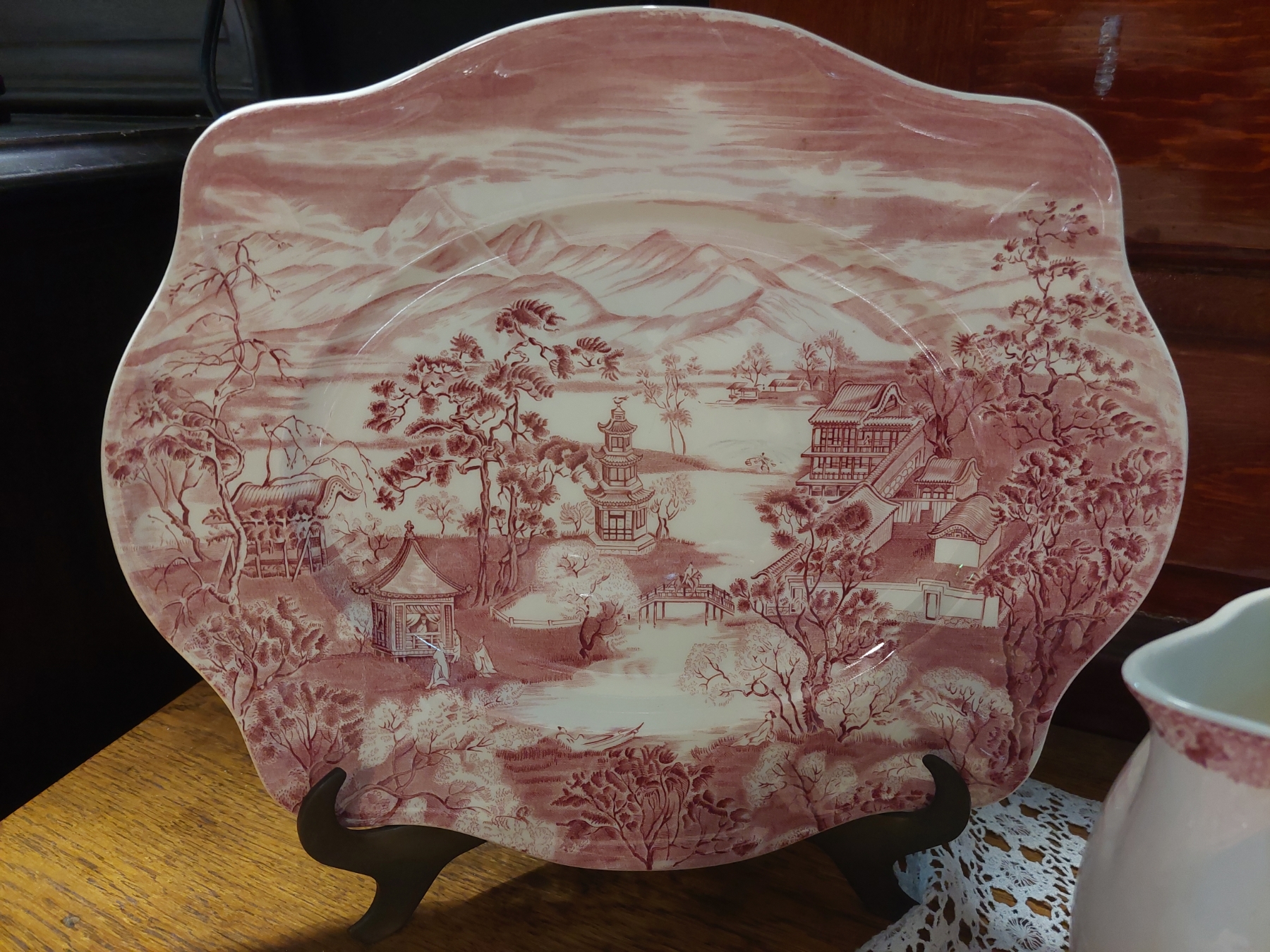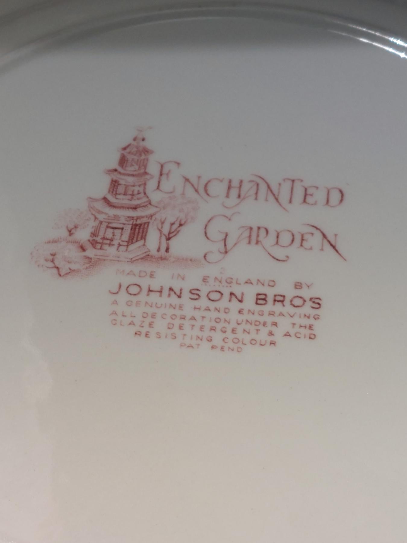 Large 12 Pcs Vintage Johnson Bros England - "Enchanted Garden" Pink Porcelain Set - Perfect Largest Pc Is 12 x 10 Inches