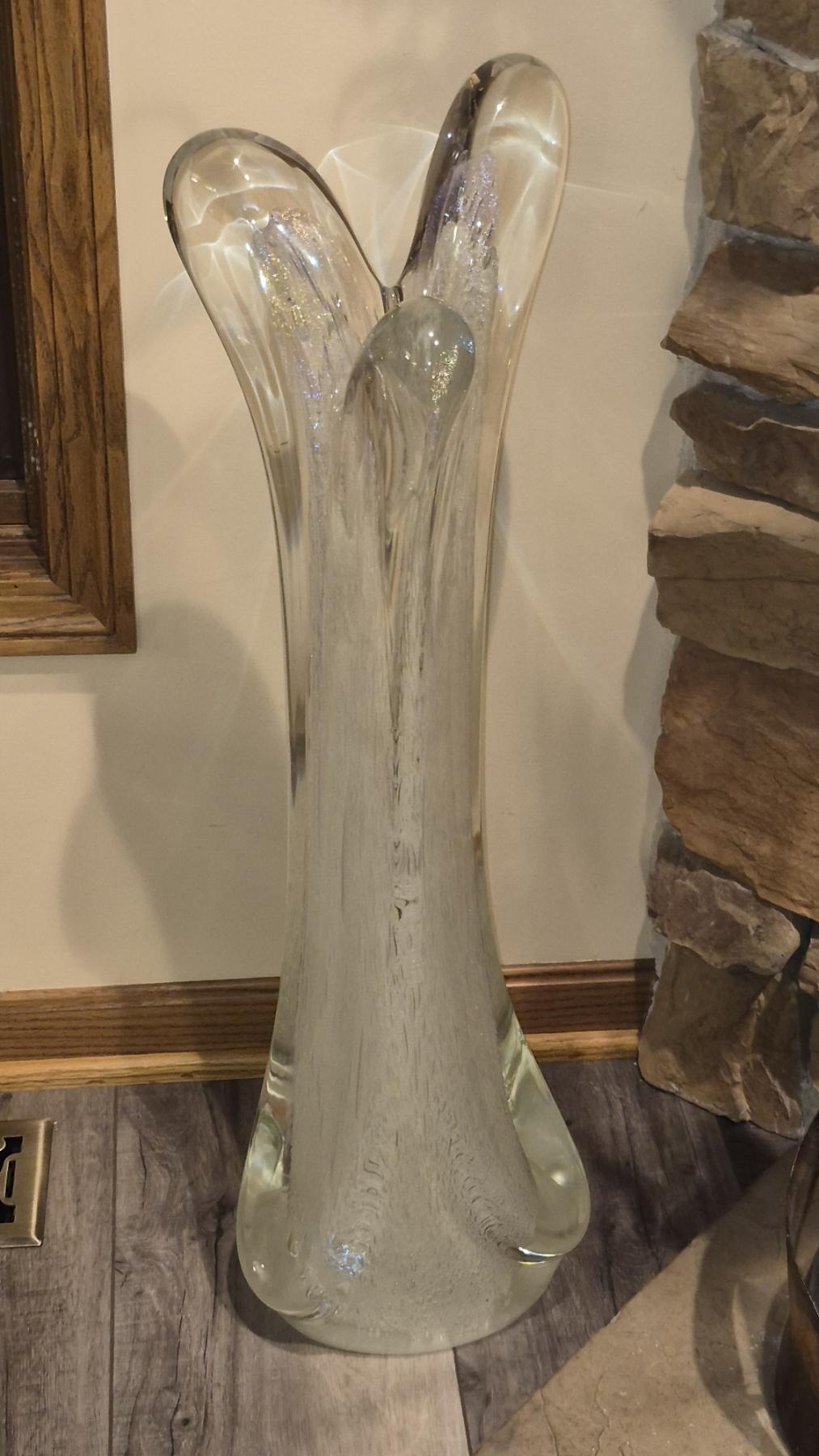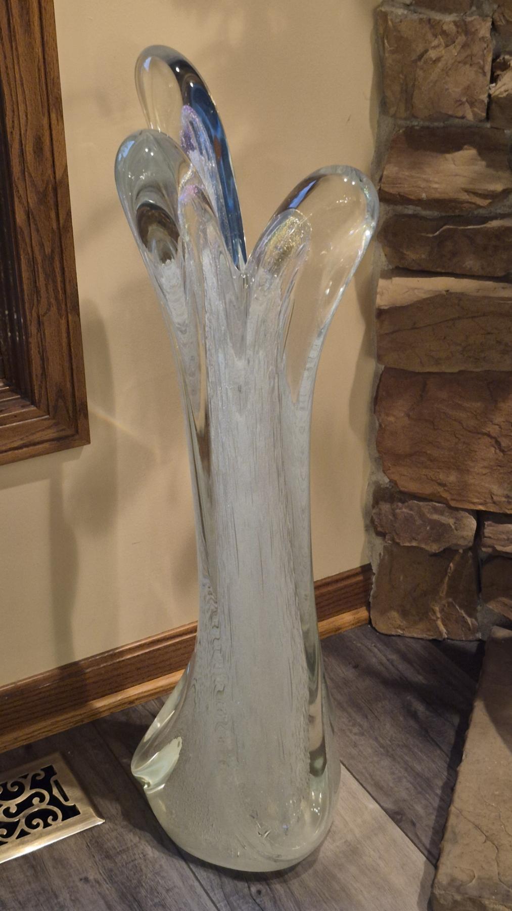 Large 24" Tall Art Glas Vase / Sculpture Seedy Bubbles Thruought & Heavy - App 9 1/2" Width See Pics