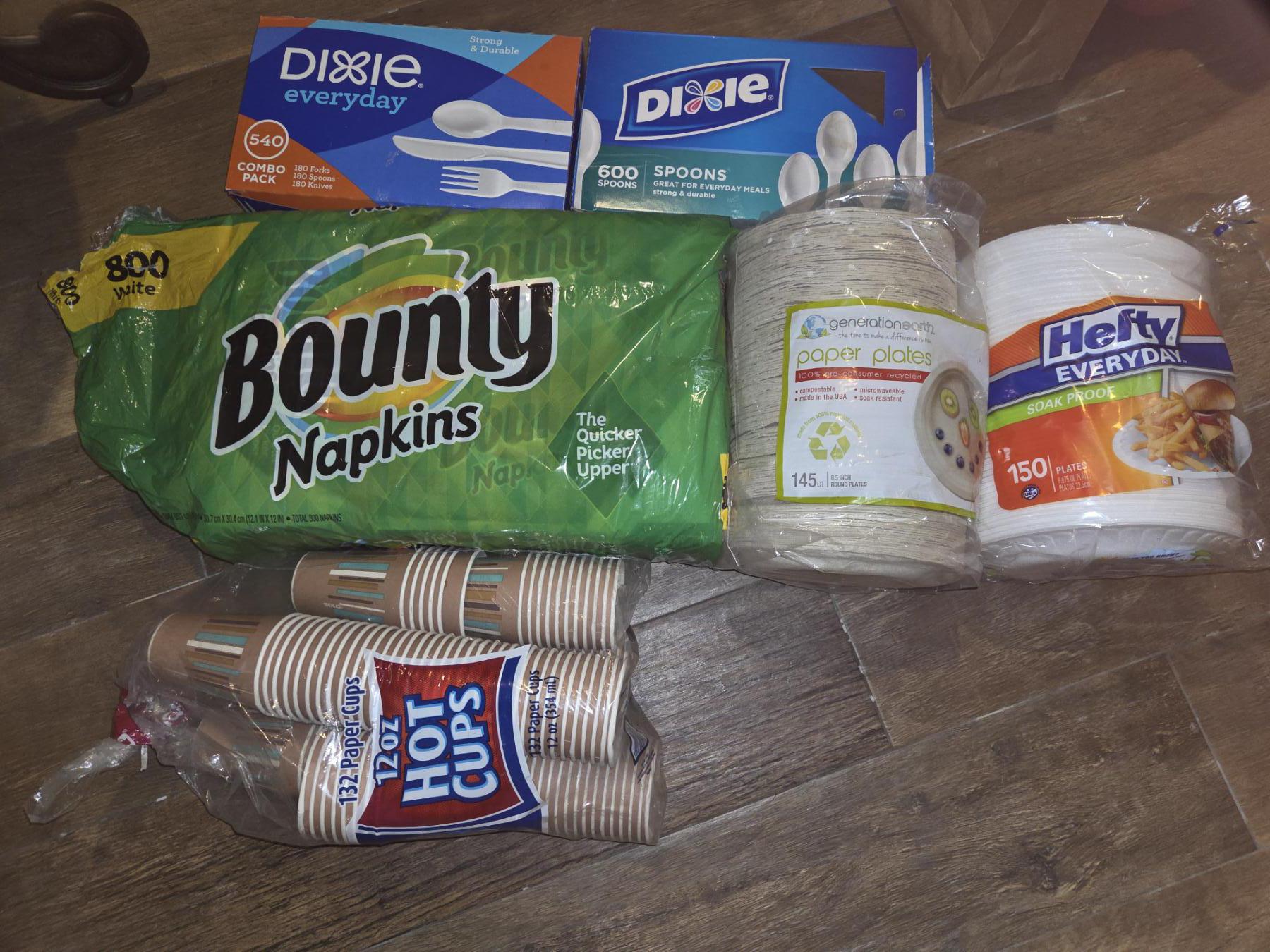 Large Group Of Napkins, Cups, Plates & Platicware