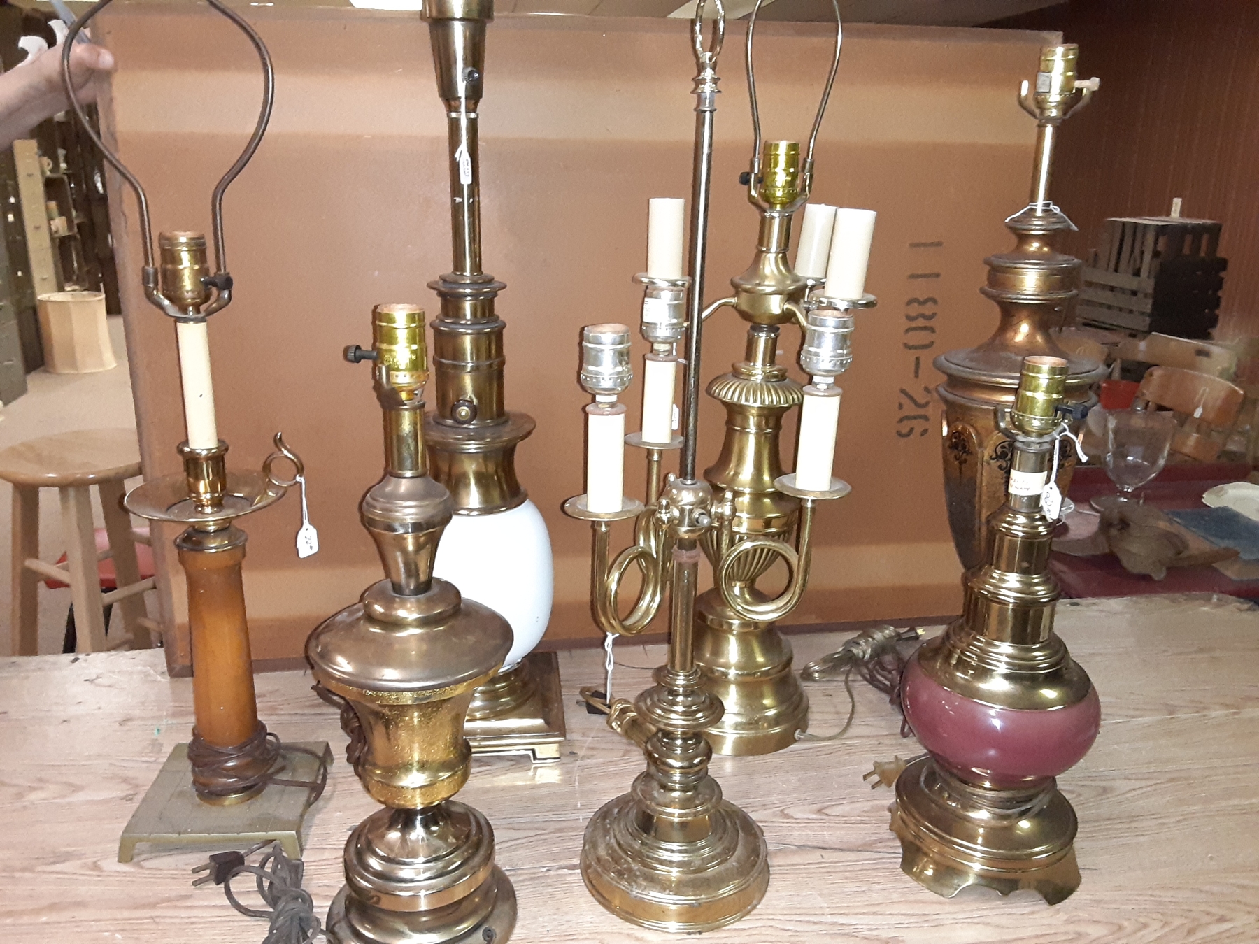 Large Group Of Table Lamps As Shown - Mostly Brass - See Pics