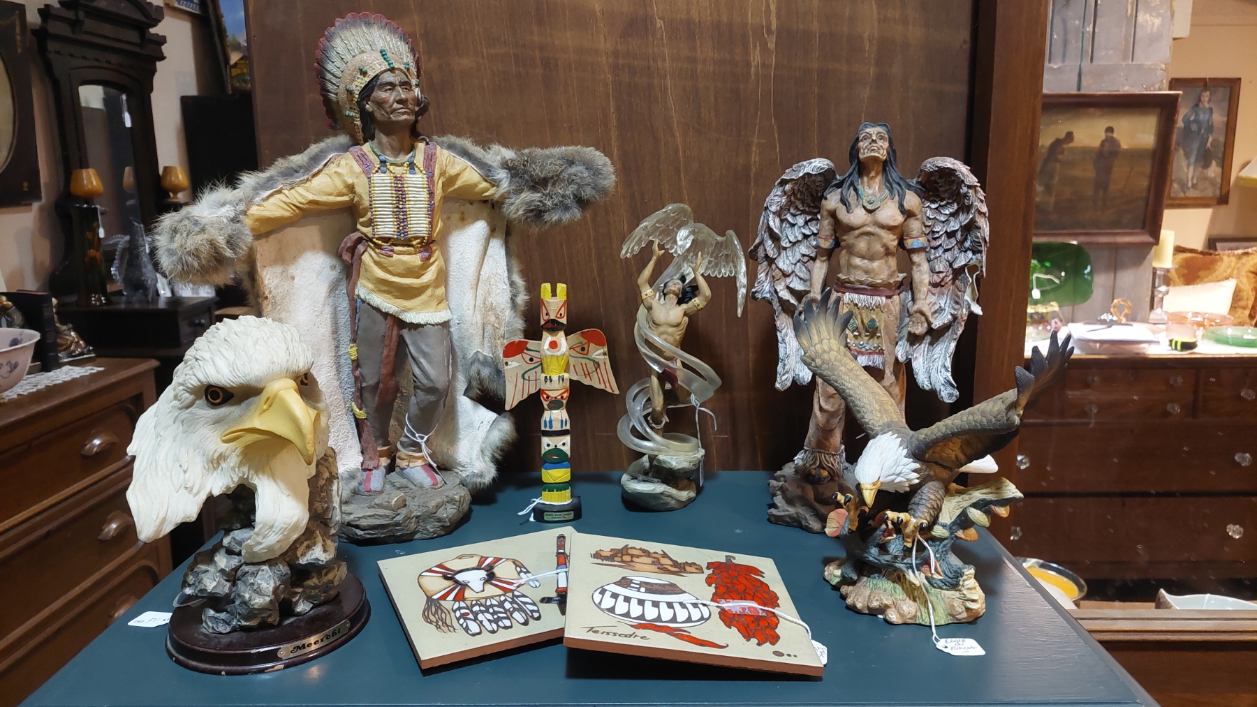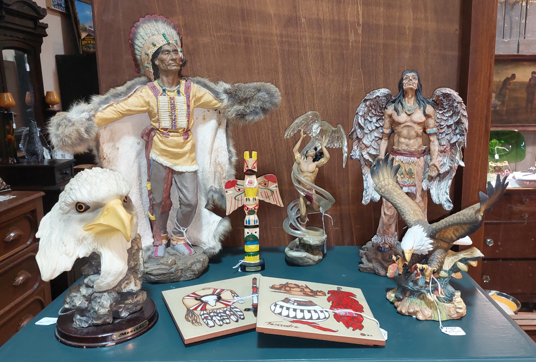 Large Grouping Of Native American Figural Statues & More - 8 Pcs - See Pics