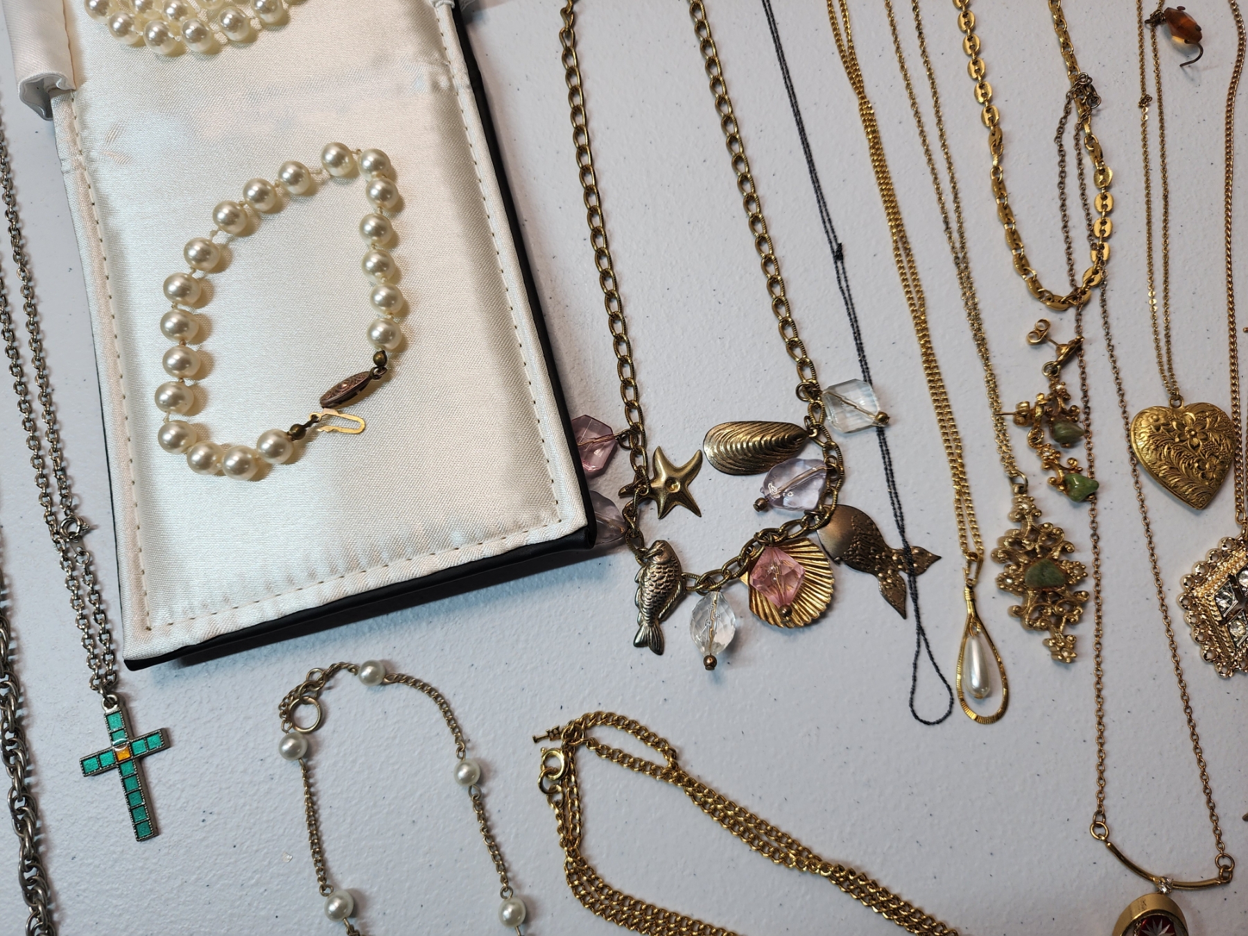 Large Lot of Assorted Costume Jewelry Including Pearl Necklace, Gold-Tone & Silver-Tone Pieces