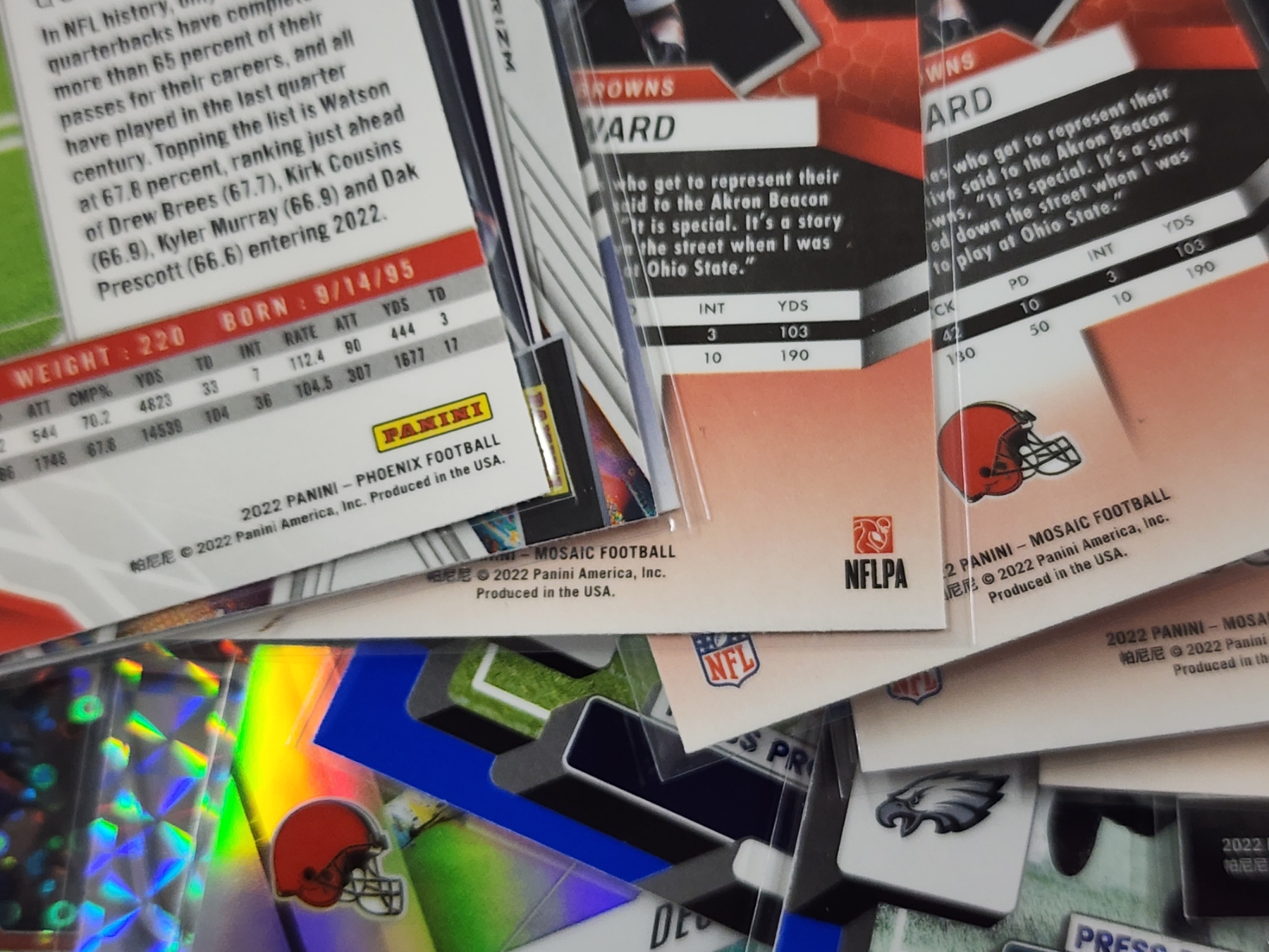 Large Lot of Over 60 Assorted Near Mint Football Trading Cards - Assorted Years from Panini