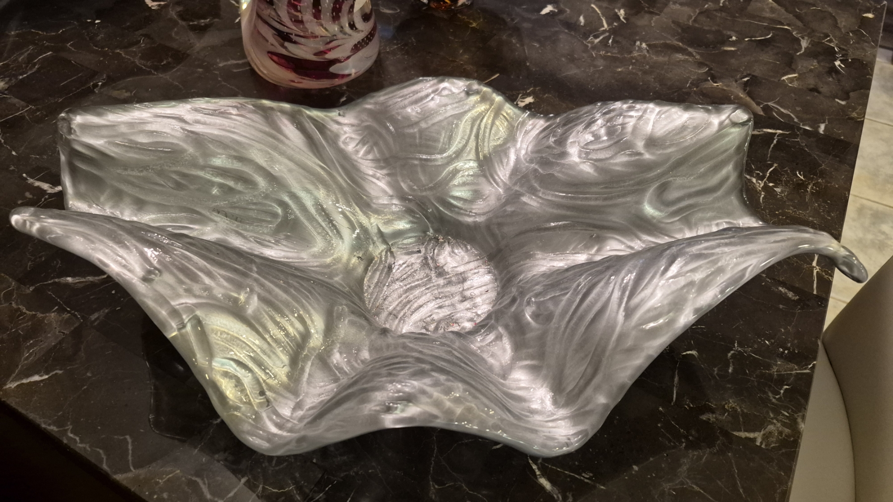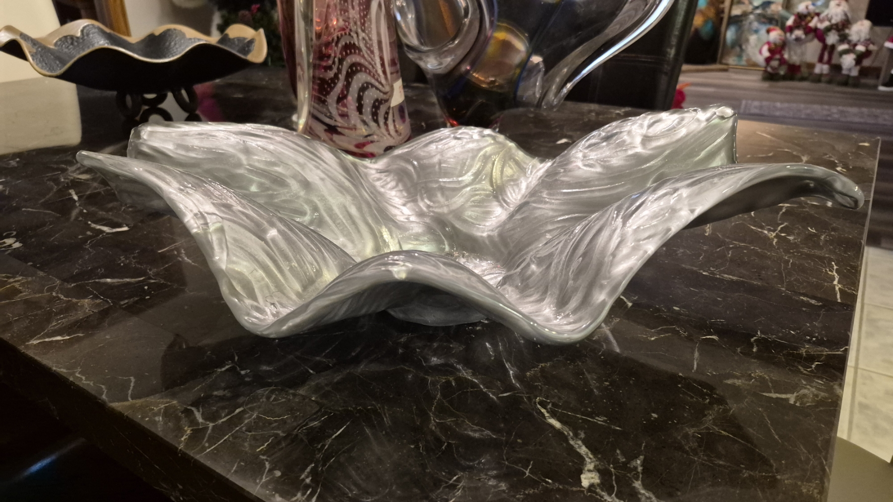 Large Ruffled Art Glass Silver Bowl 21" by 12 1/2" Nice