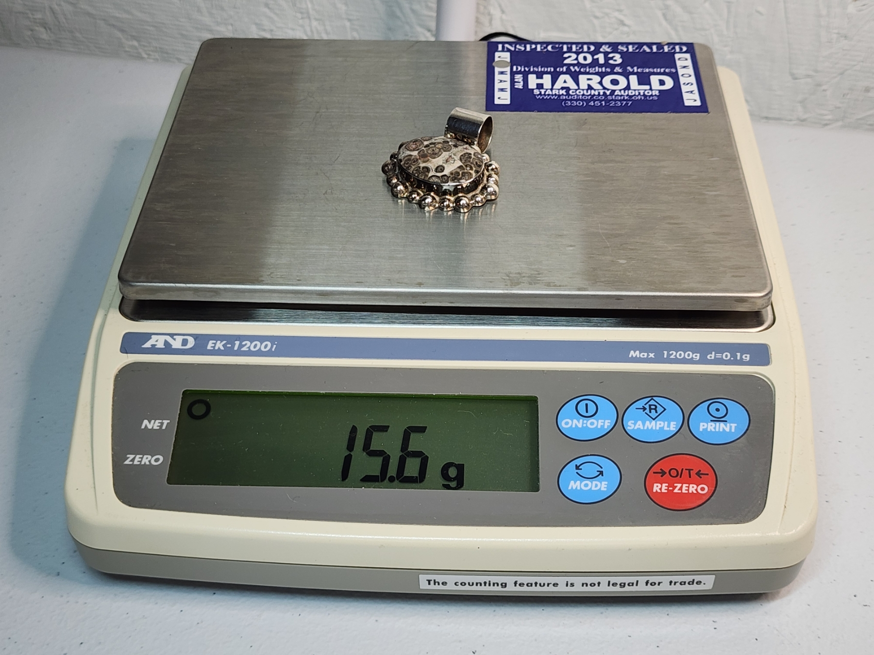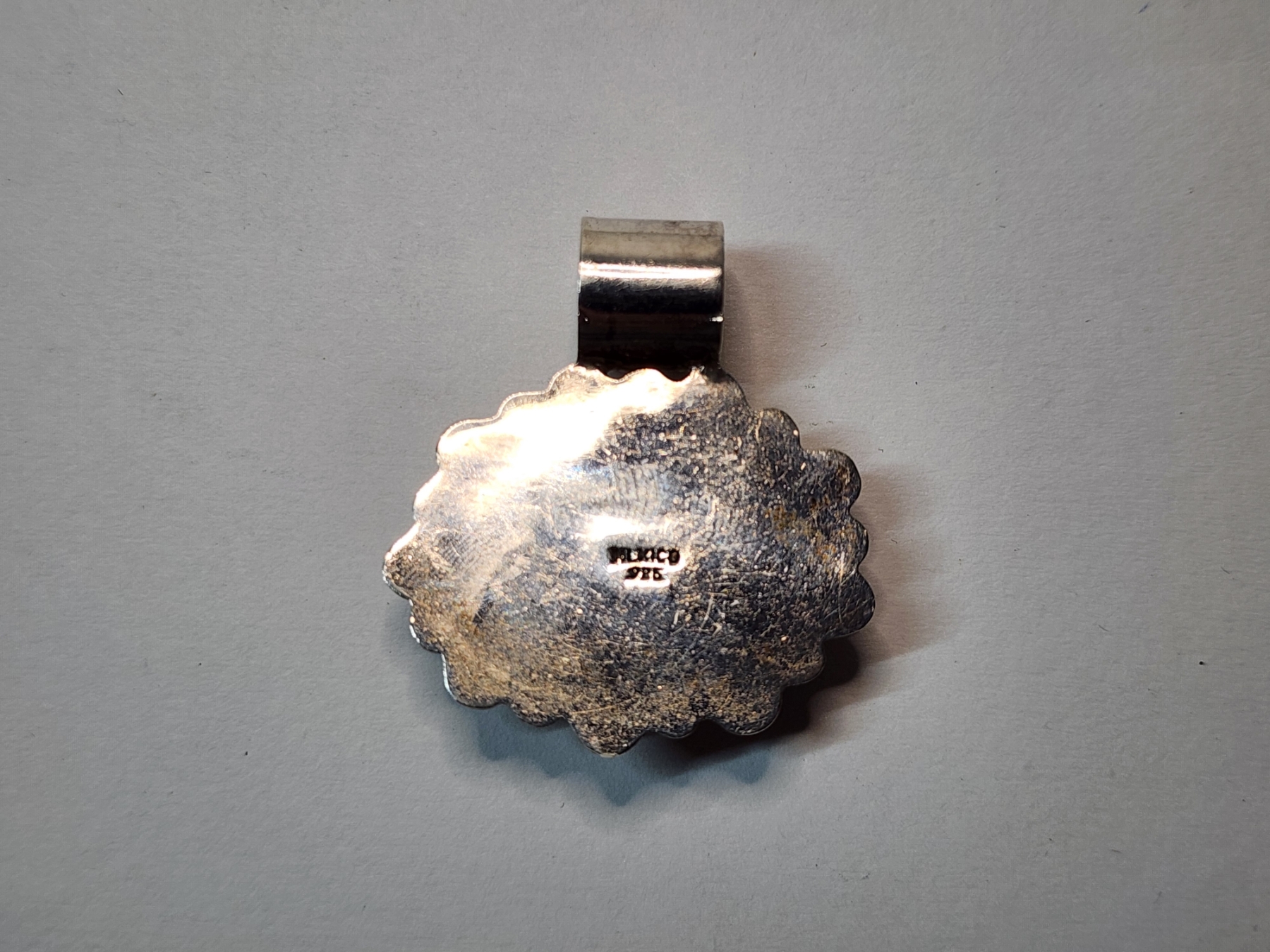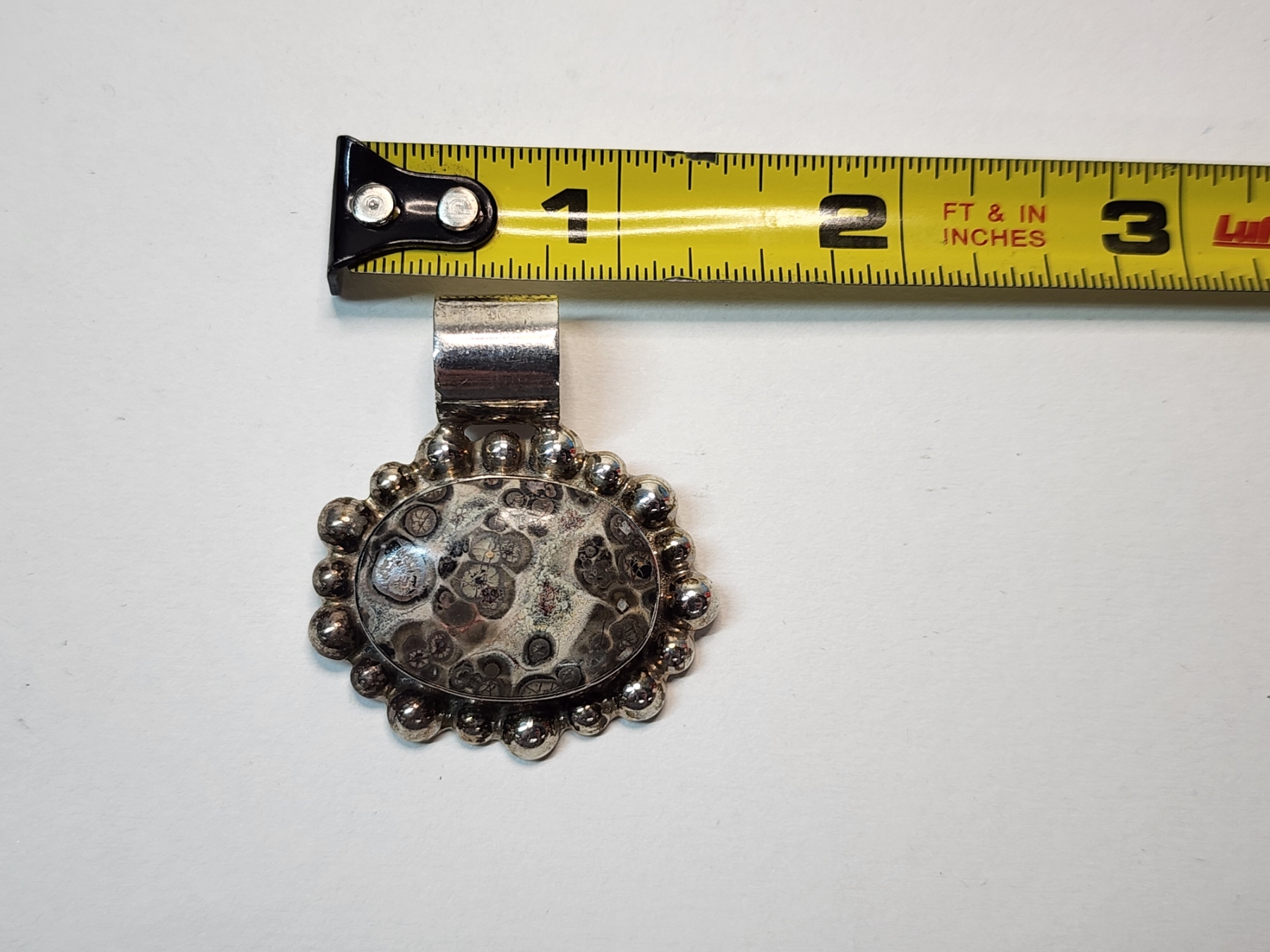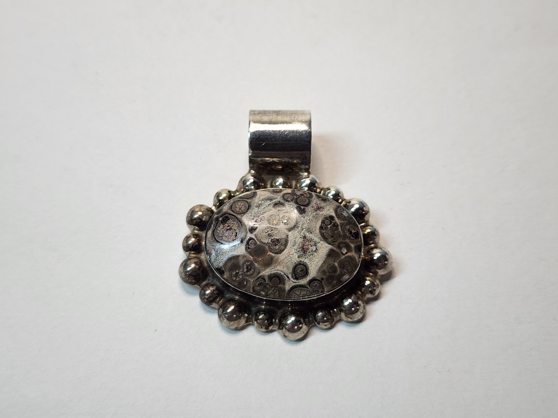 Large Sterling Silver Pendant with Large Fossil-Style Gemstone TW: 15.6g