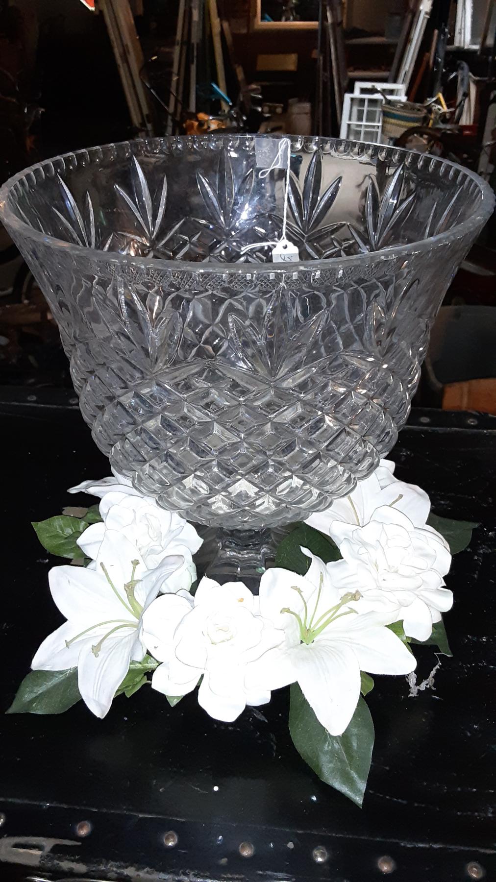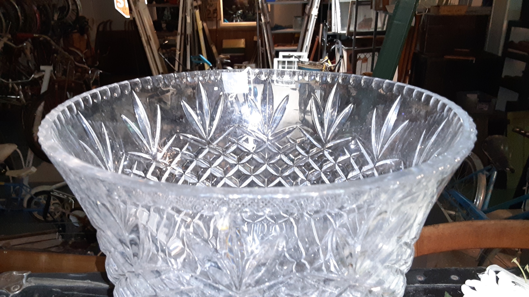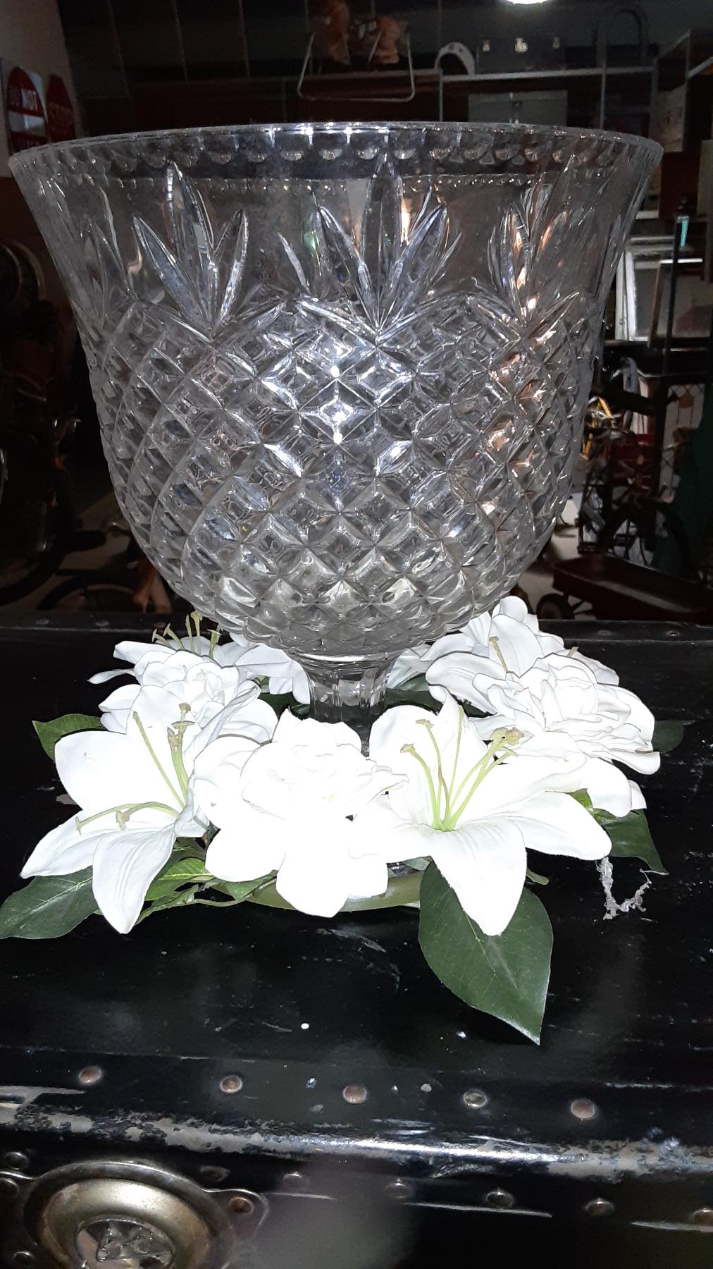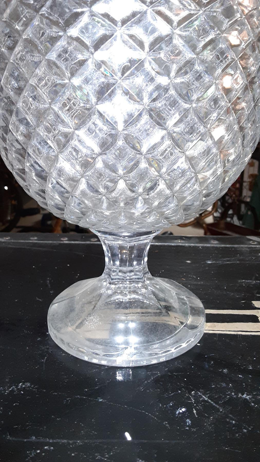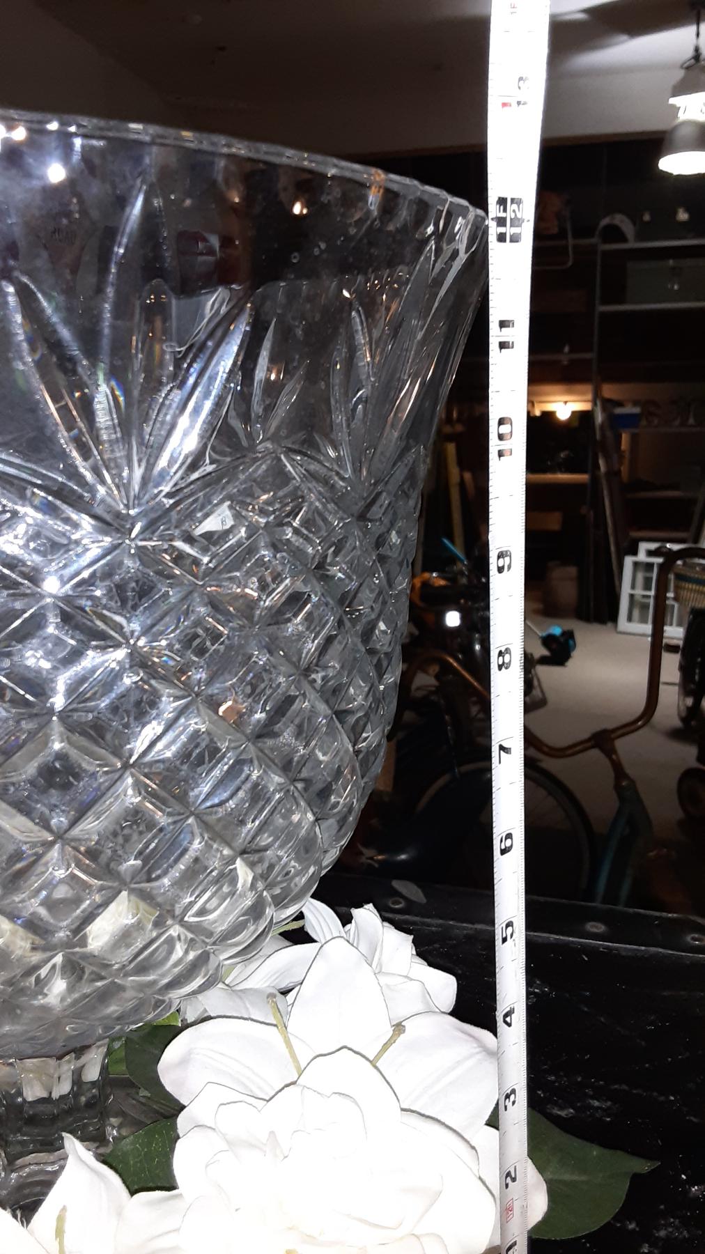 Large antique Indiana Glass Diamond Point Cut/Pressed Glass Vase - 12" Tall With 10 1/2" Diameter at Rim