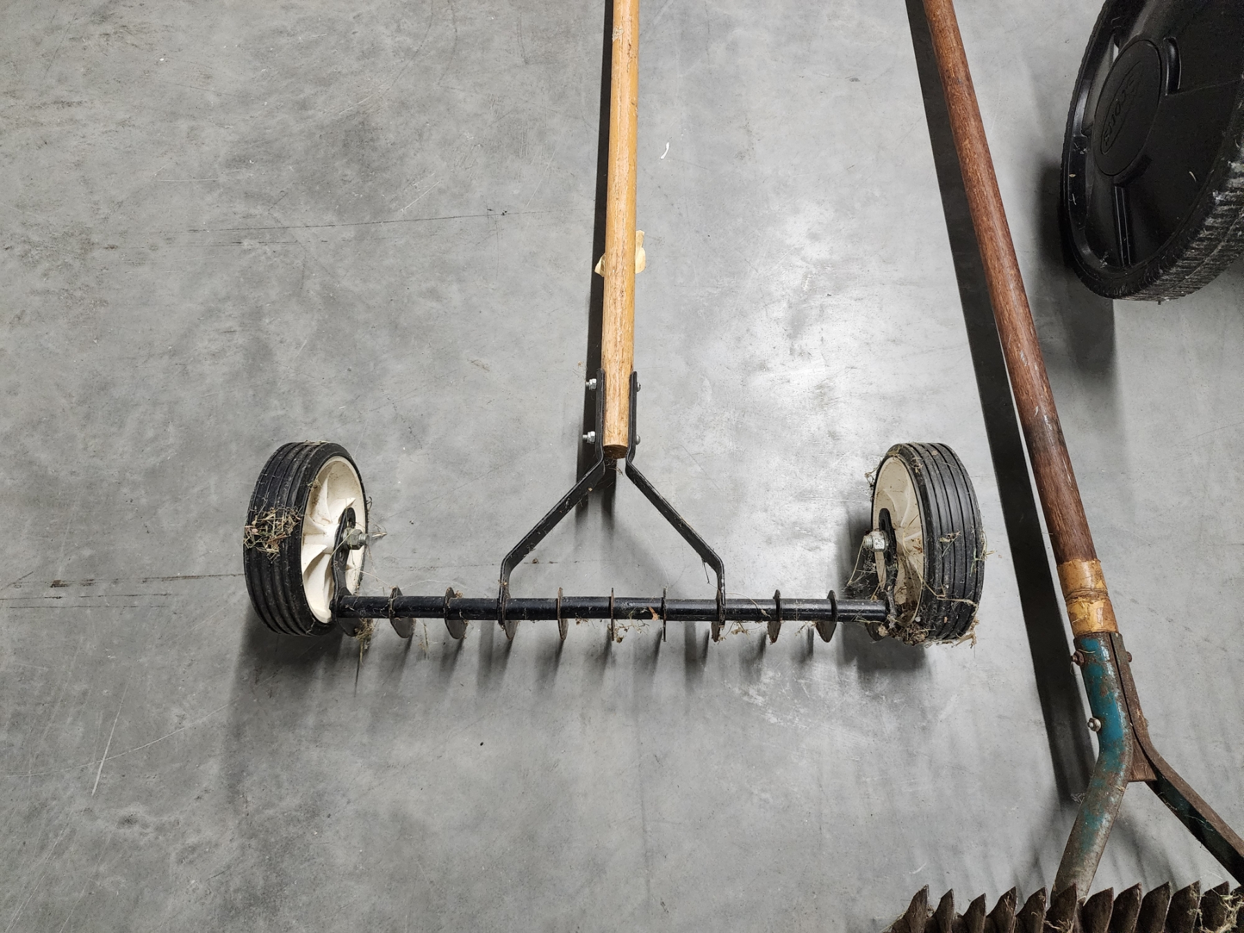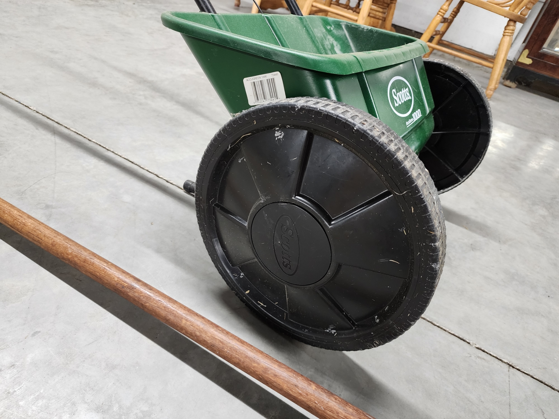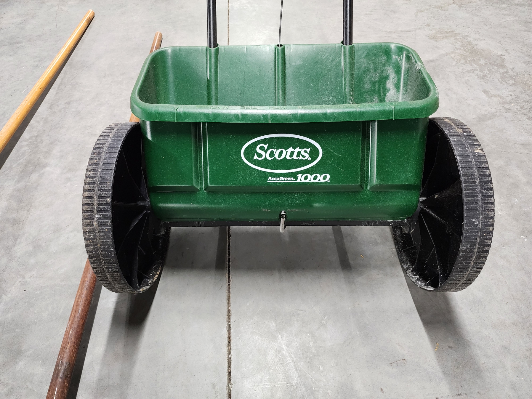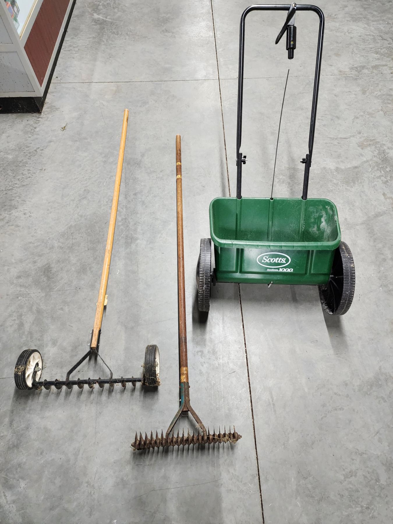 Lawn/Garden Items: Scotts AccuGreen 1000 Classic Drop Spreader, Aerator Rakes