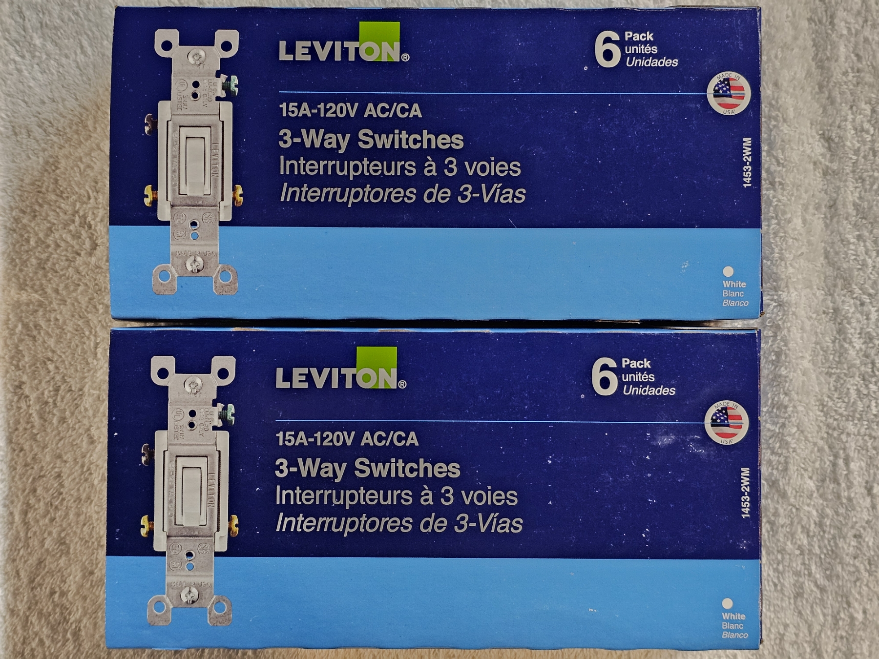 Leviton 3-Way Wall Switches - 6 Per Box x 2 Boxes = 12 Switches - GREAT CONDITION!!! MAKE THE (B)RIGHT CHOICE AND PLACE YOUR BID TODAY!!!