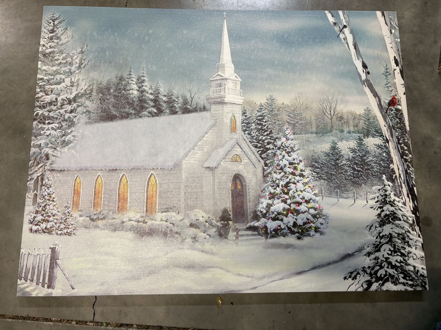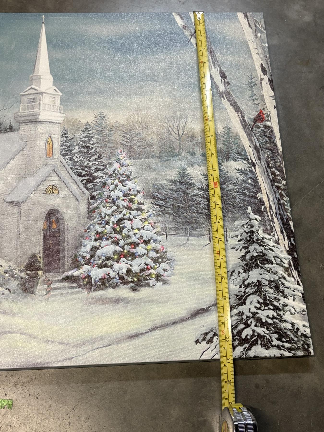 Light up Snowy Winter Church Canvas - 21x27" - Does Work!