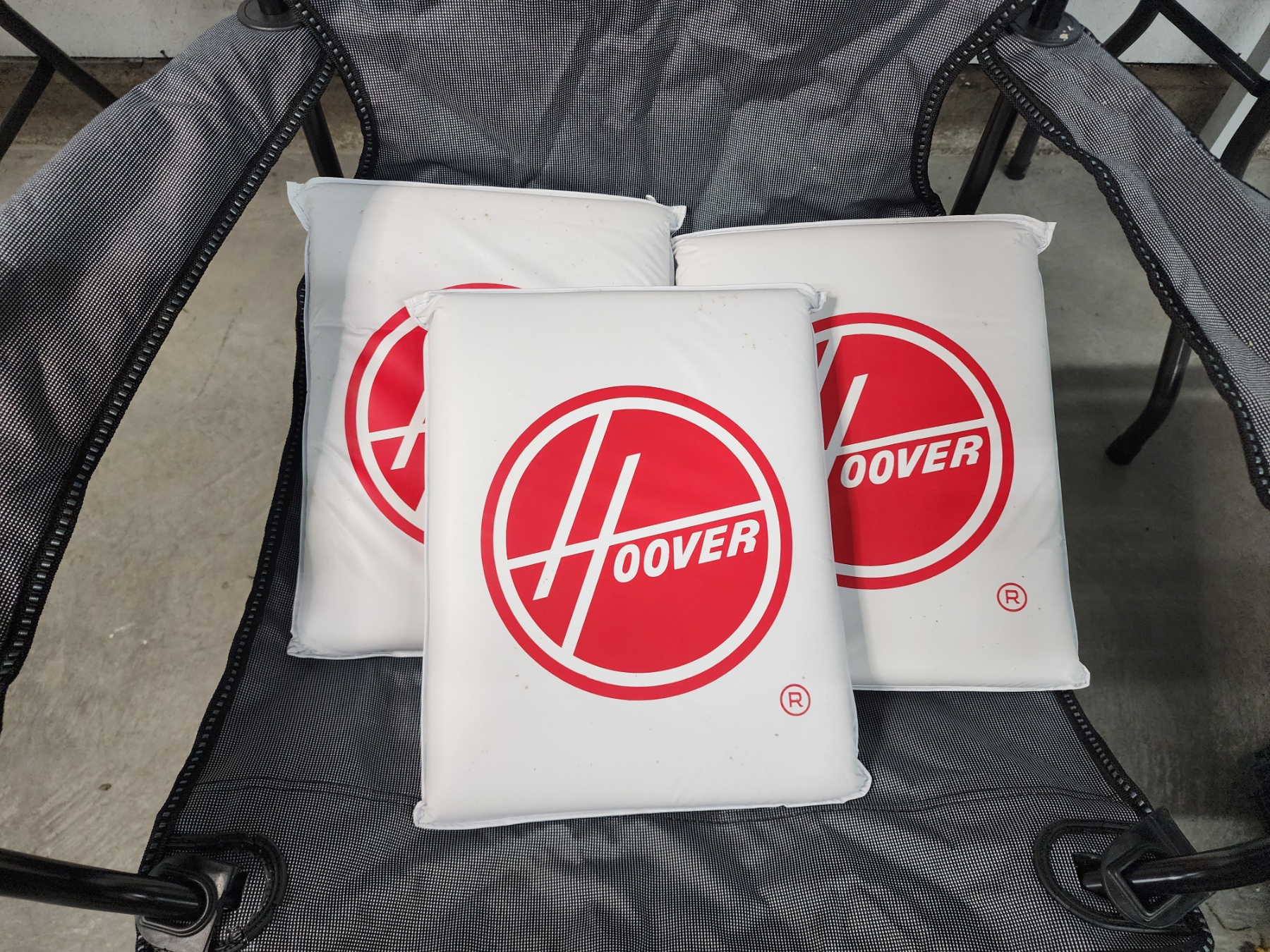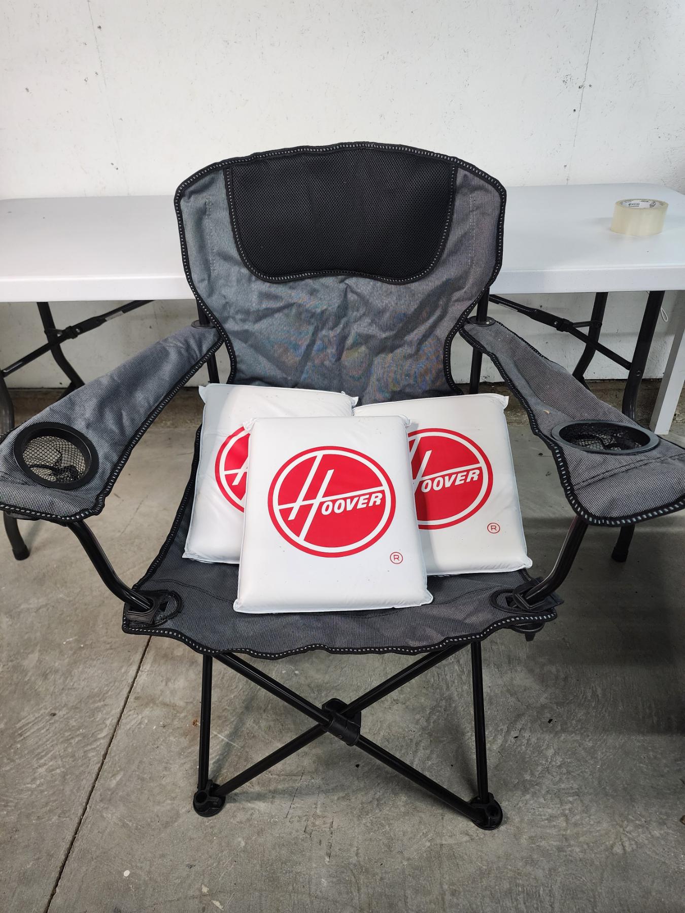 Like-New Folding Camping Chair with Bag & x3 Hoover Stadium Seat Cushions