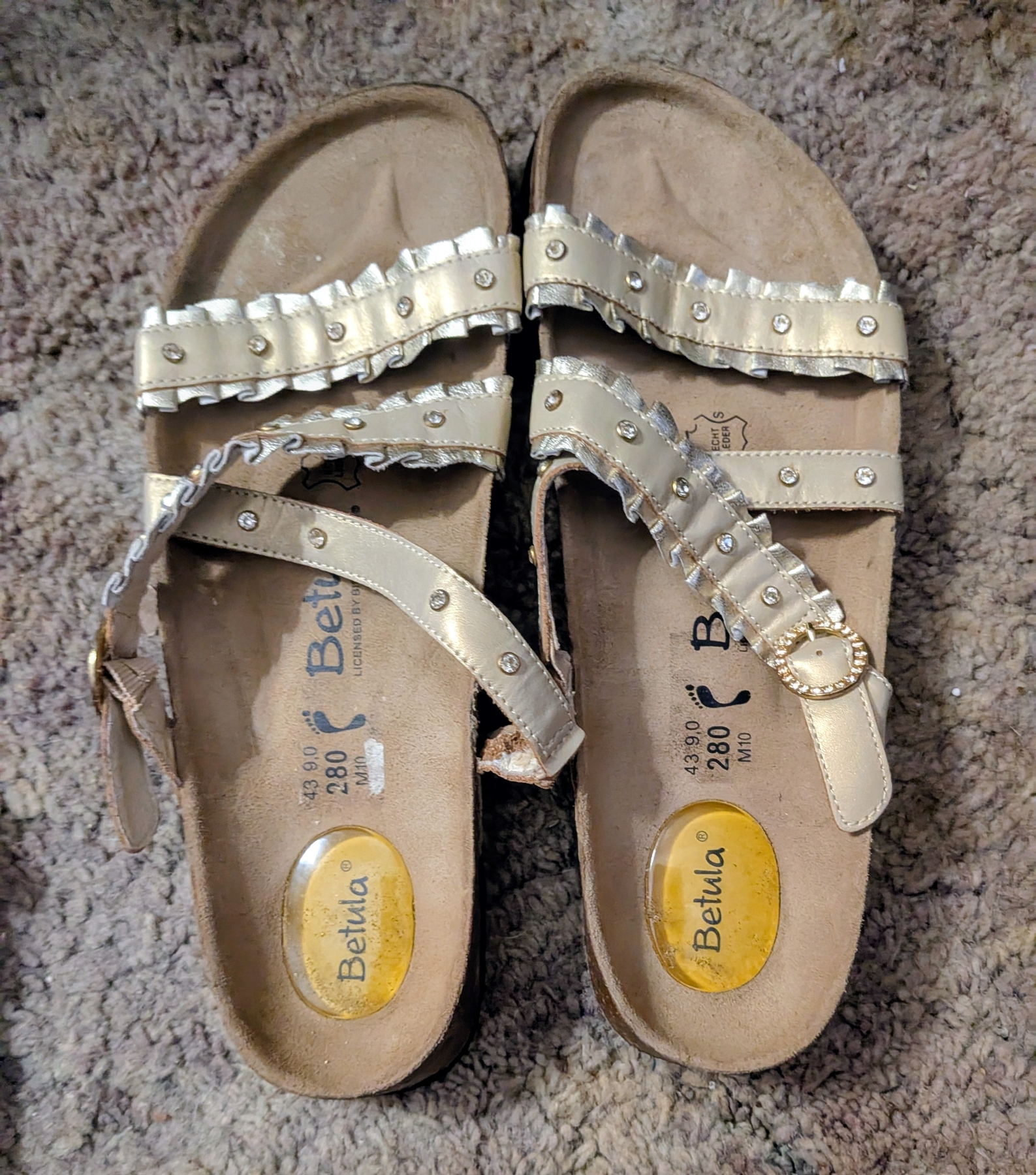 Like New Size 43 Gold Leather With Rinestones Birkenstocks