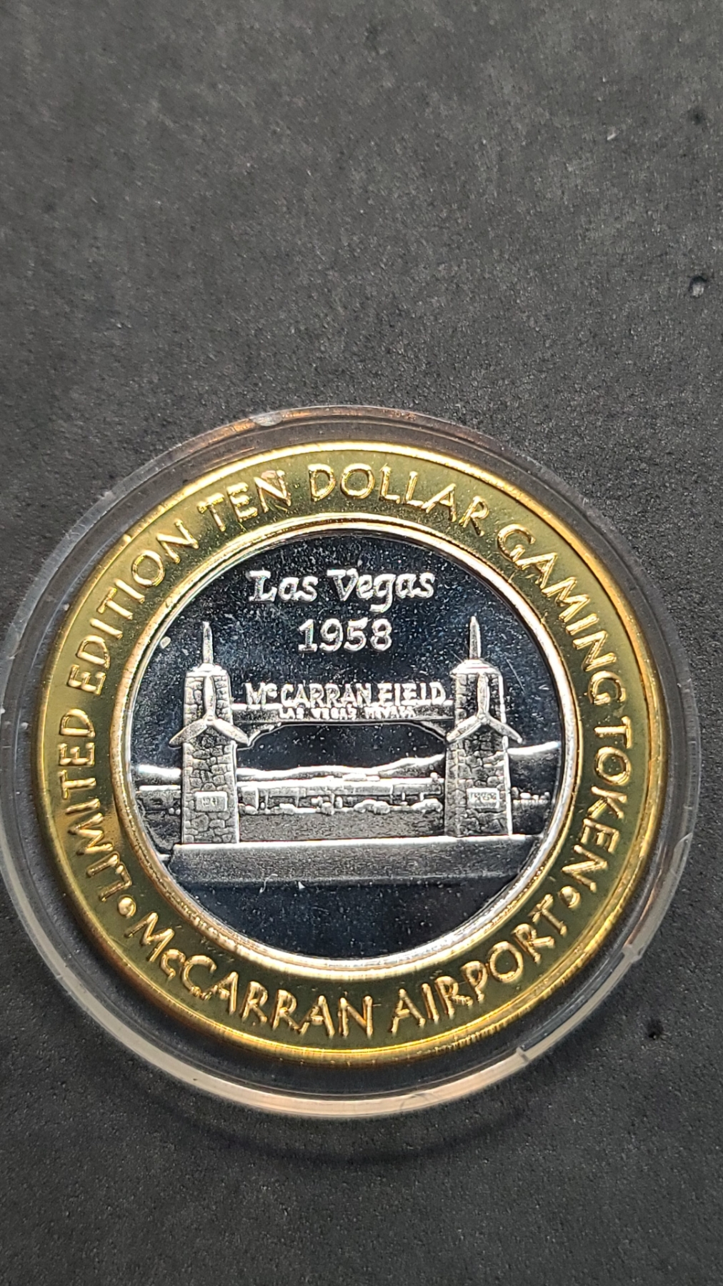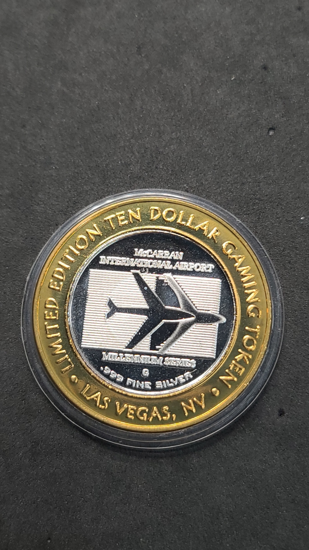 Limited Edition 1958 McCarren Airport/Las Vegas Nevada Millennium Series G $10 Gaming Token With .999 Fine Silver