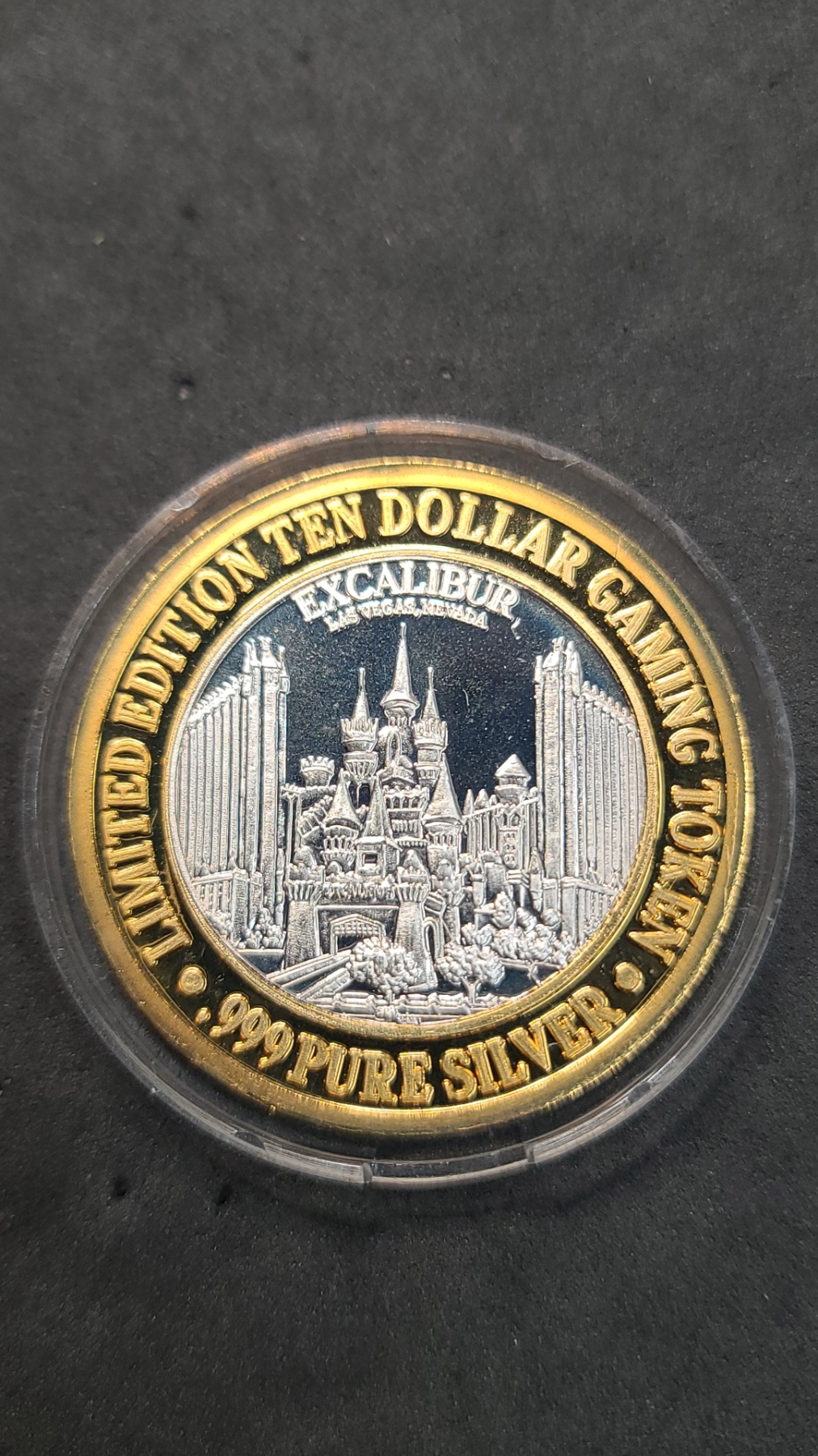 Limited Edition Las Vegas Excalibur $10 Gaming Token With .999 Fine Silver