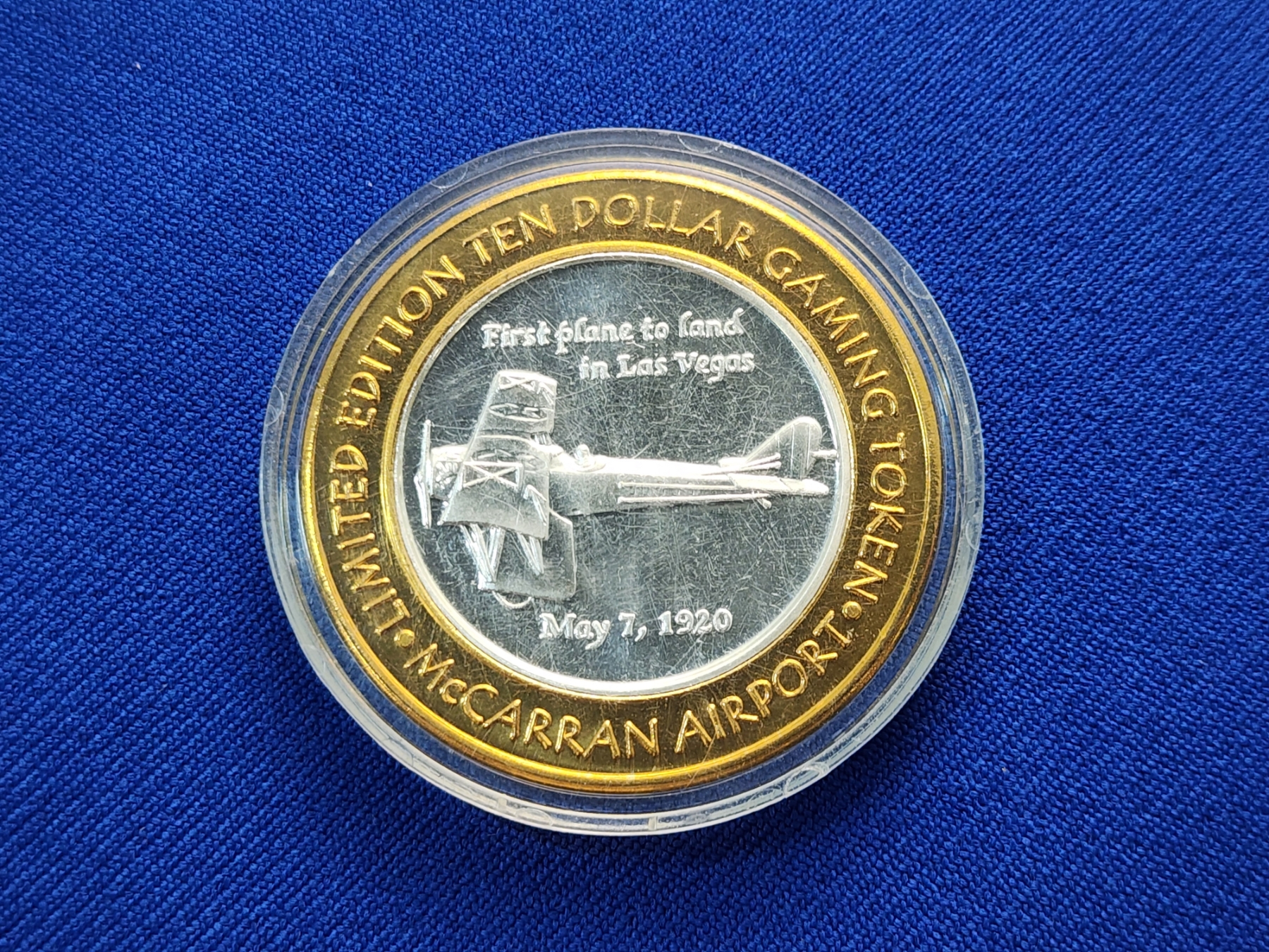 Limited Edition McCarran Airport $10 Gaming Token .999 Fine Silver