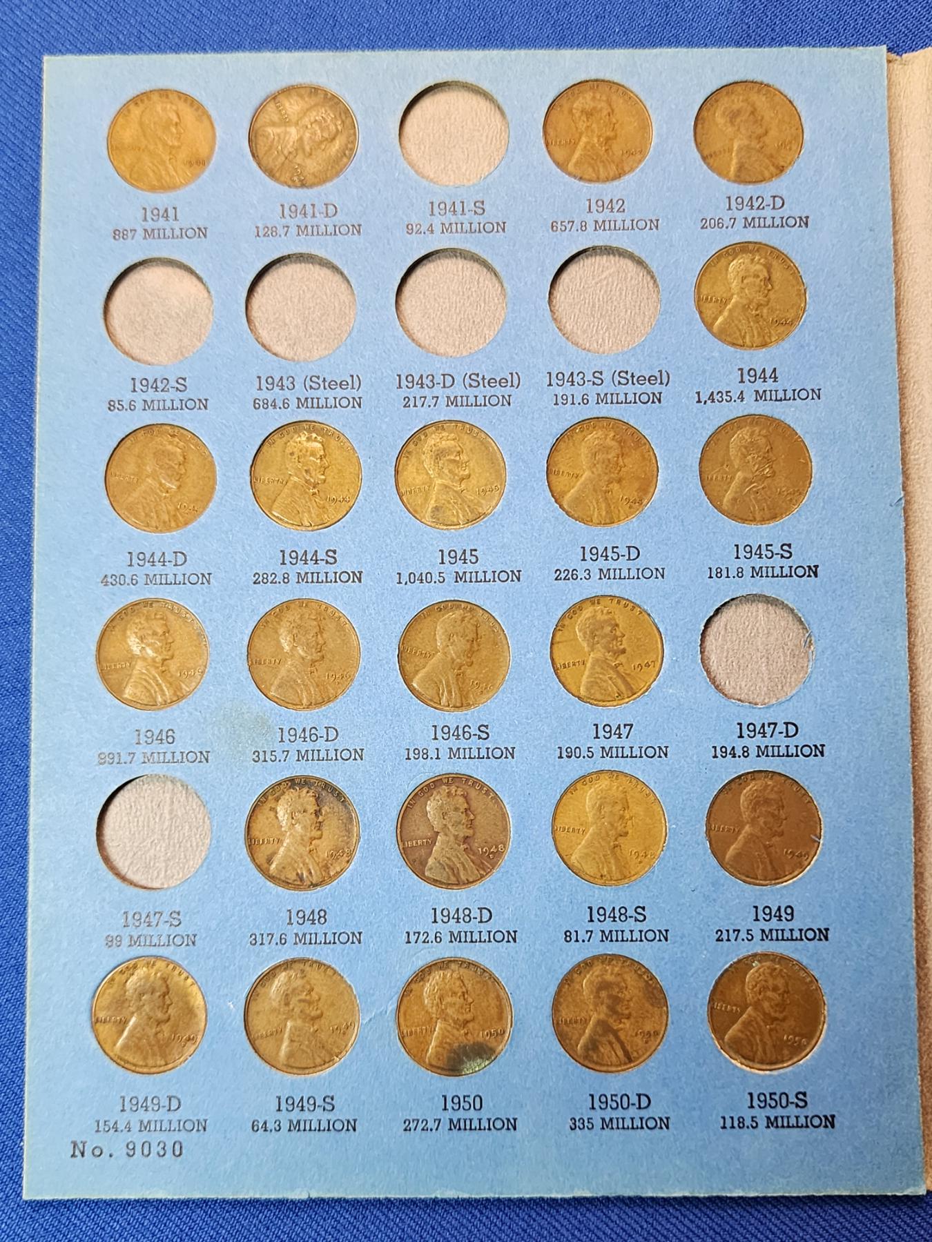 Lincoln Head Cent Coin Collecting Book Starting 1941 - Coins Included - FV: $0.67