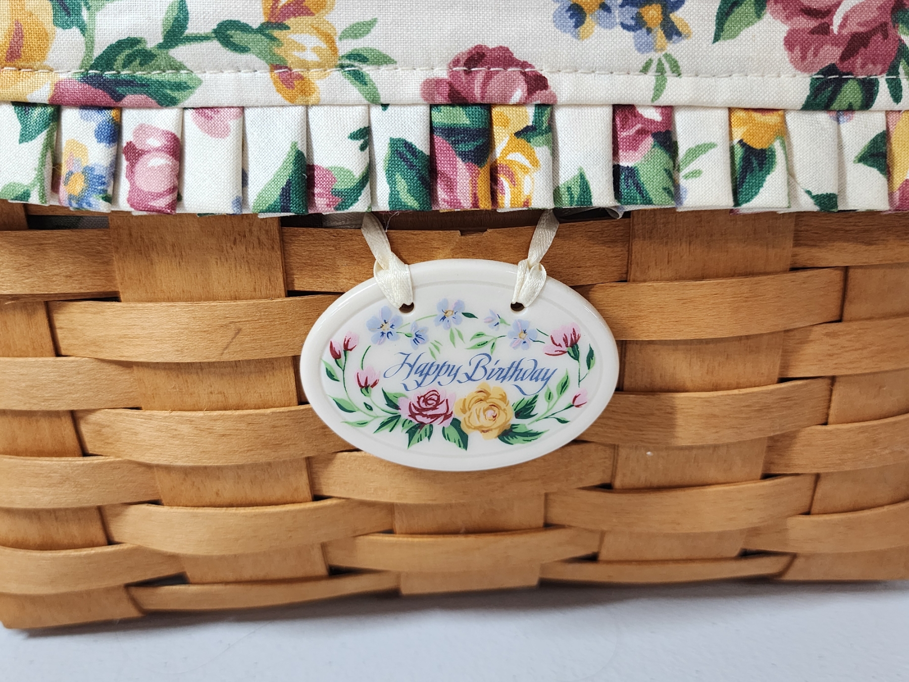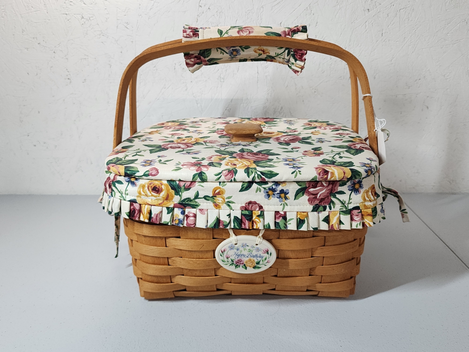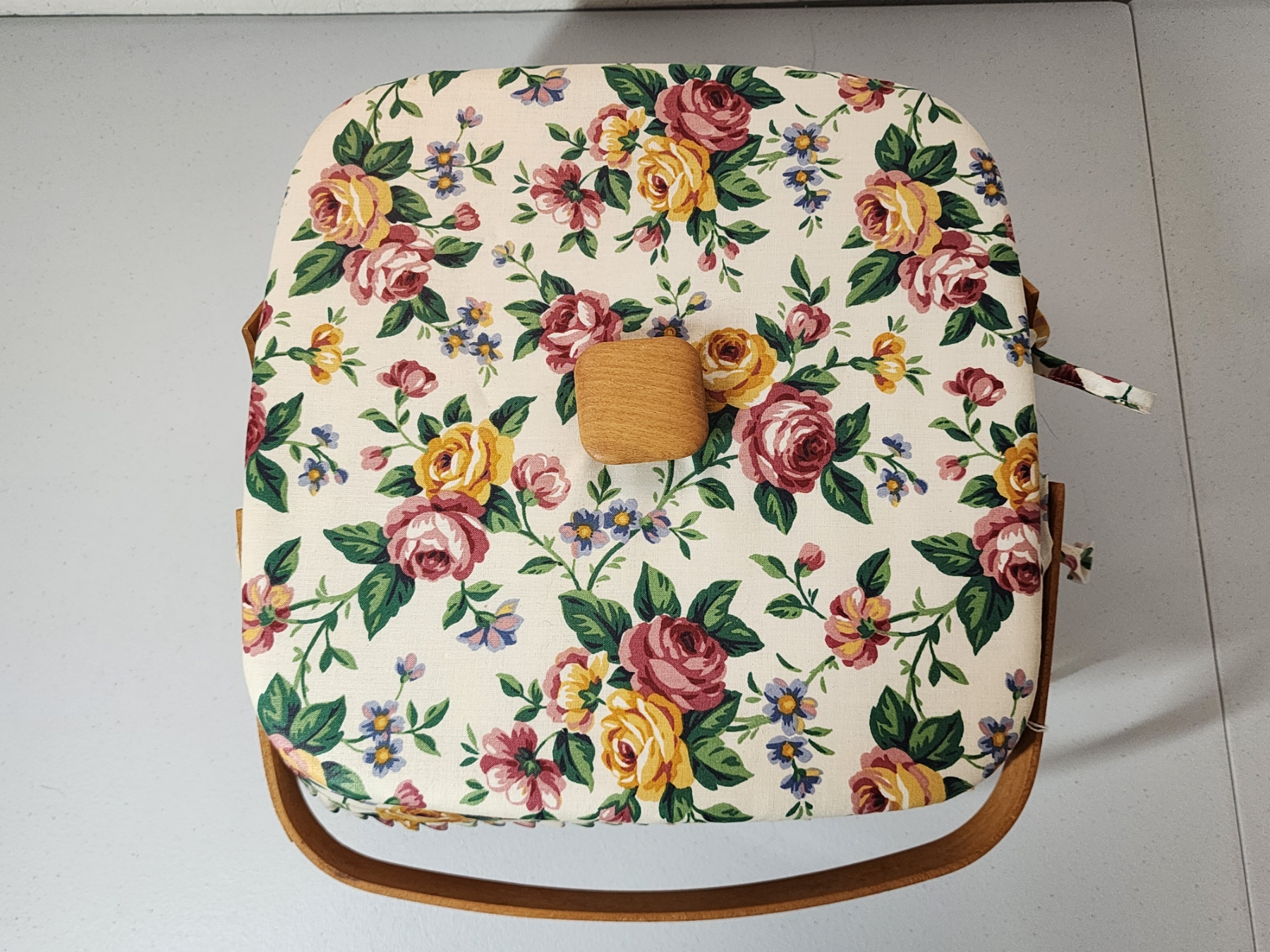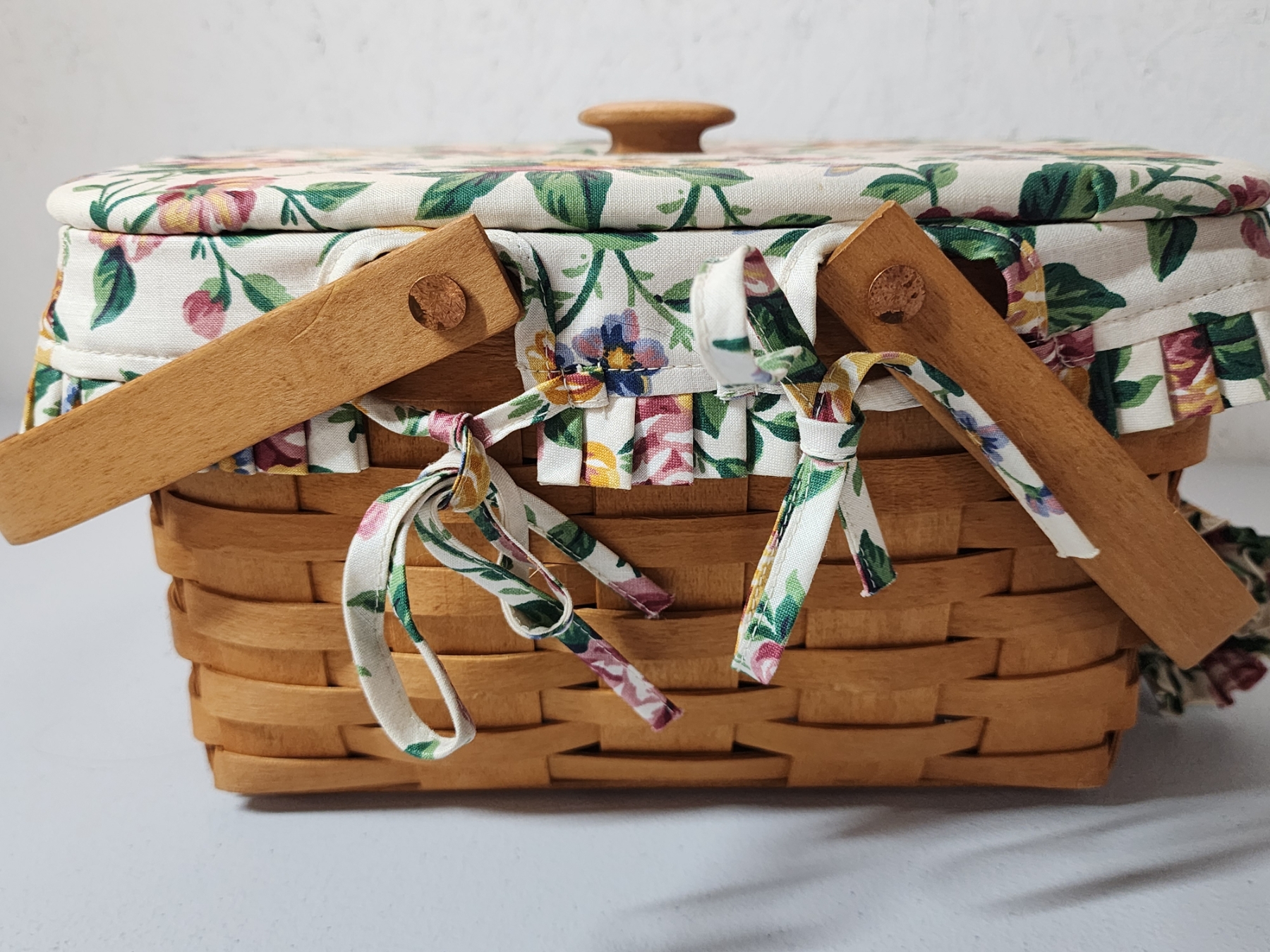 Longaberger Square Cake Basket with Floral Liner, Lid, Stand, Plastic Liner - Excellent Condition!