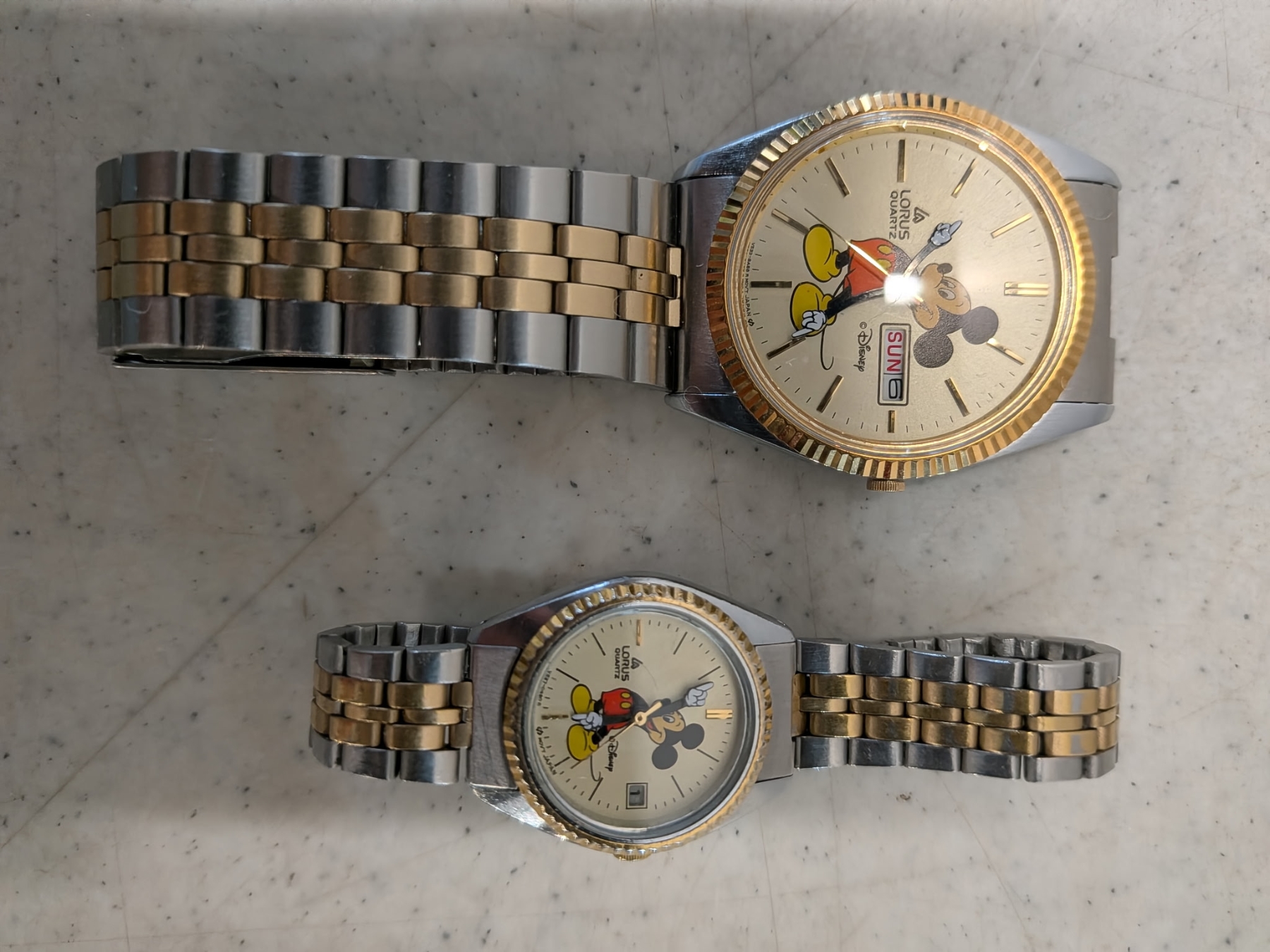Lorus Quartz Disney Mickey Mouse Two Toned Band His & Hers Watches