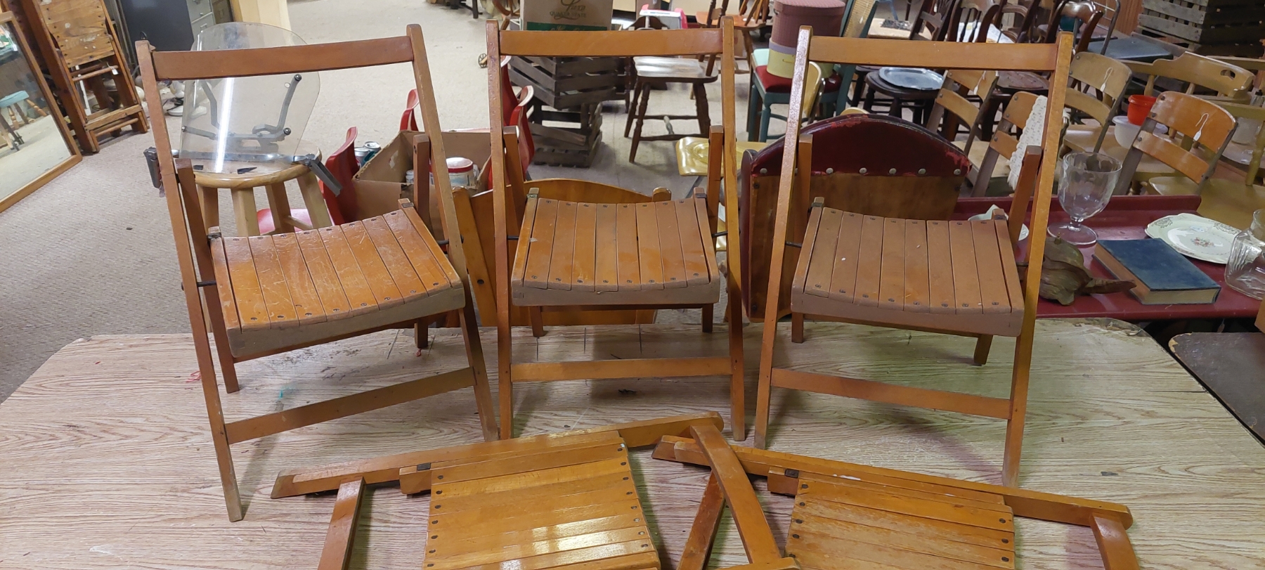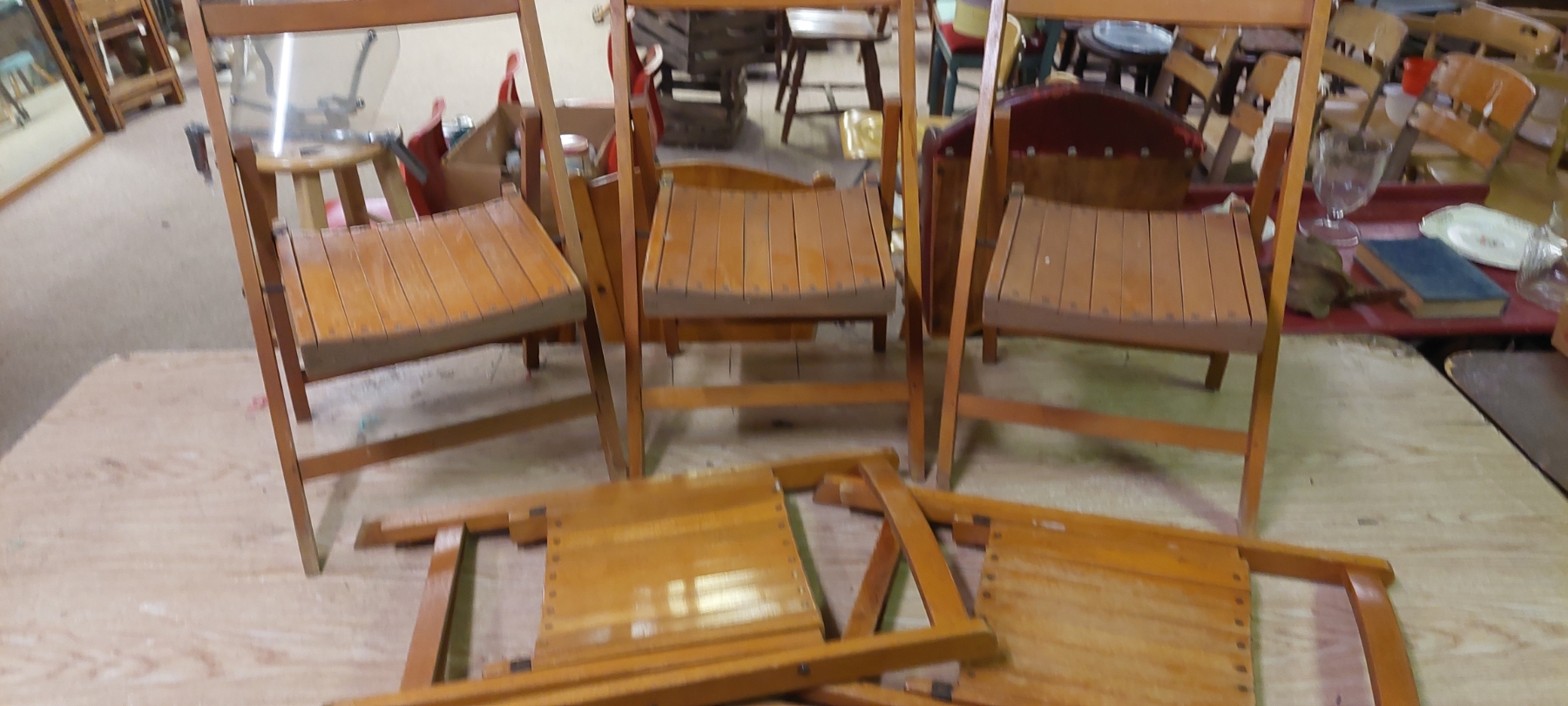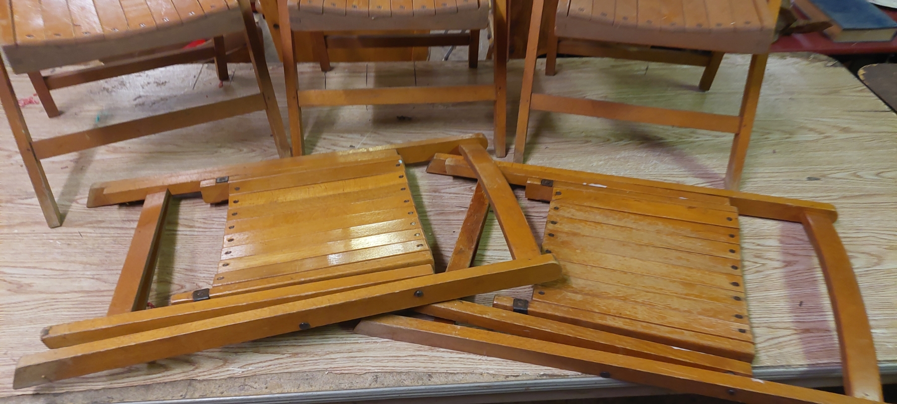 Lot Of 5 Smaller size Wooden Folding Chairs All In Excellent Condition