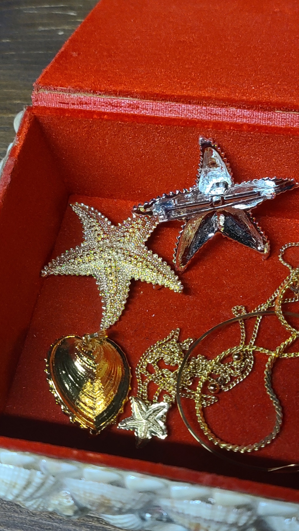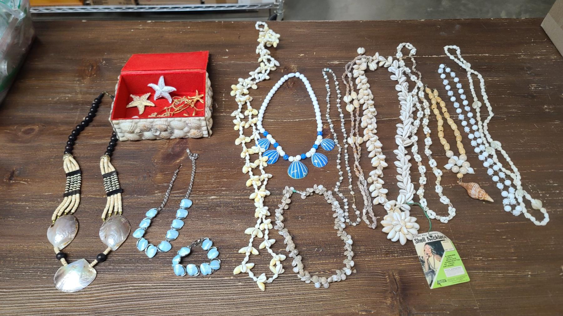 Lot Of Assorted Shell/Beach Themed Jewelry & Shell Trinket Box