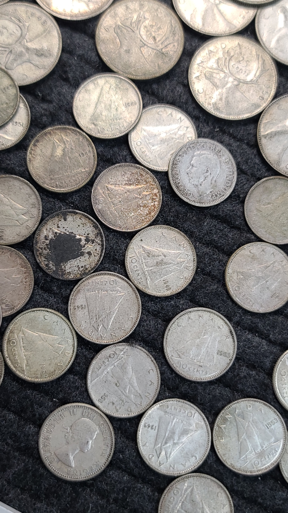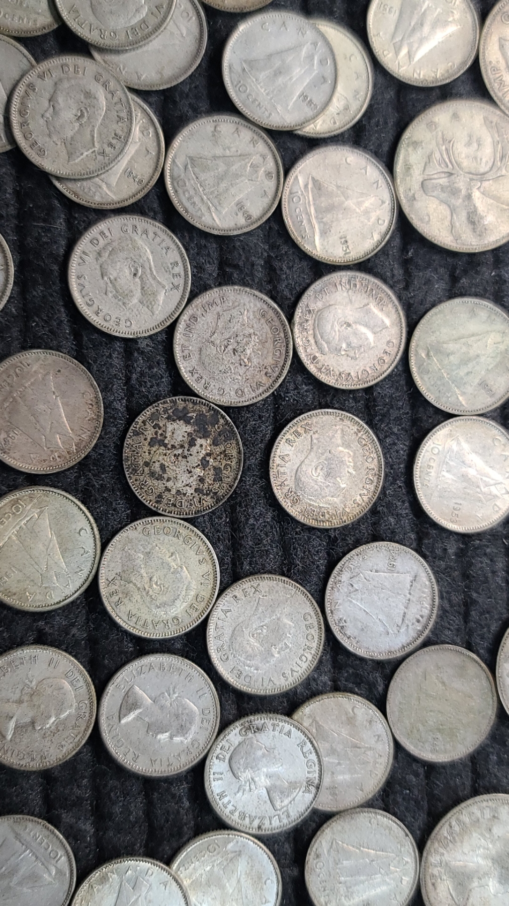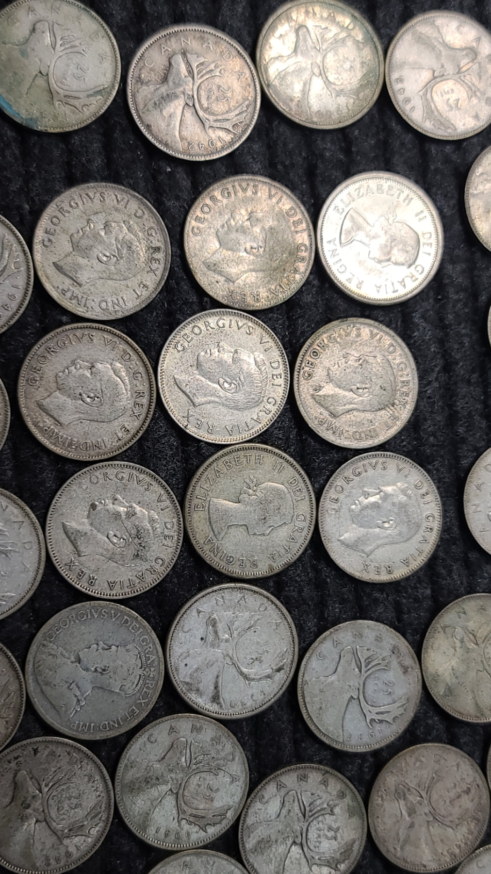 Lot Of Assorted Years Canadian Silver Coins. Canadian Silver Coins Vary In Actual Silver Weights. Face Value: $26.50