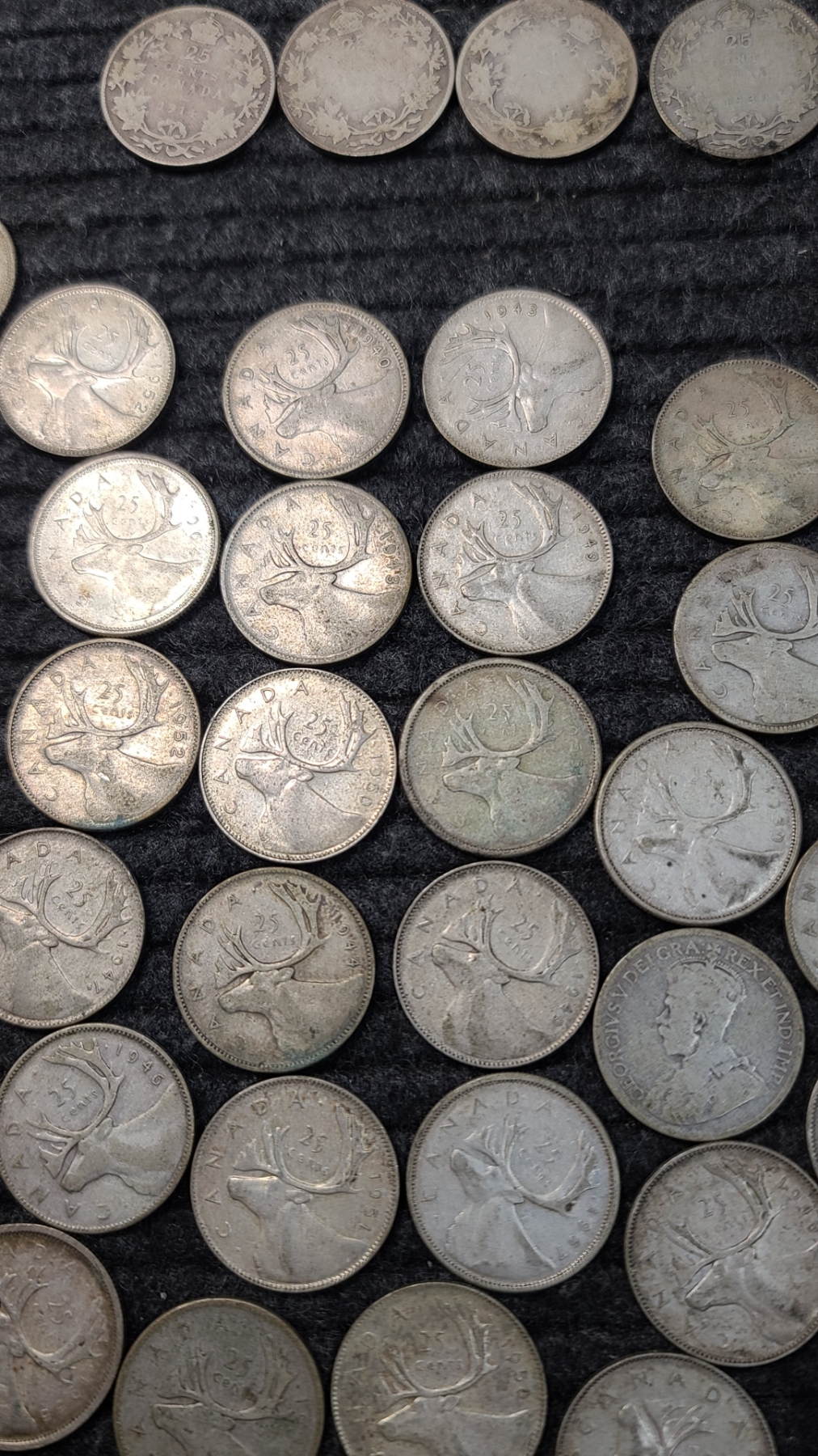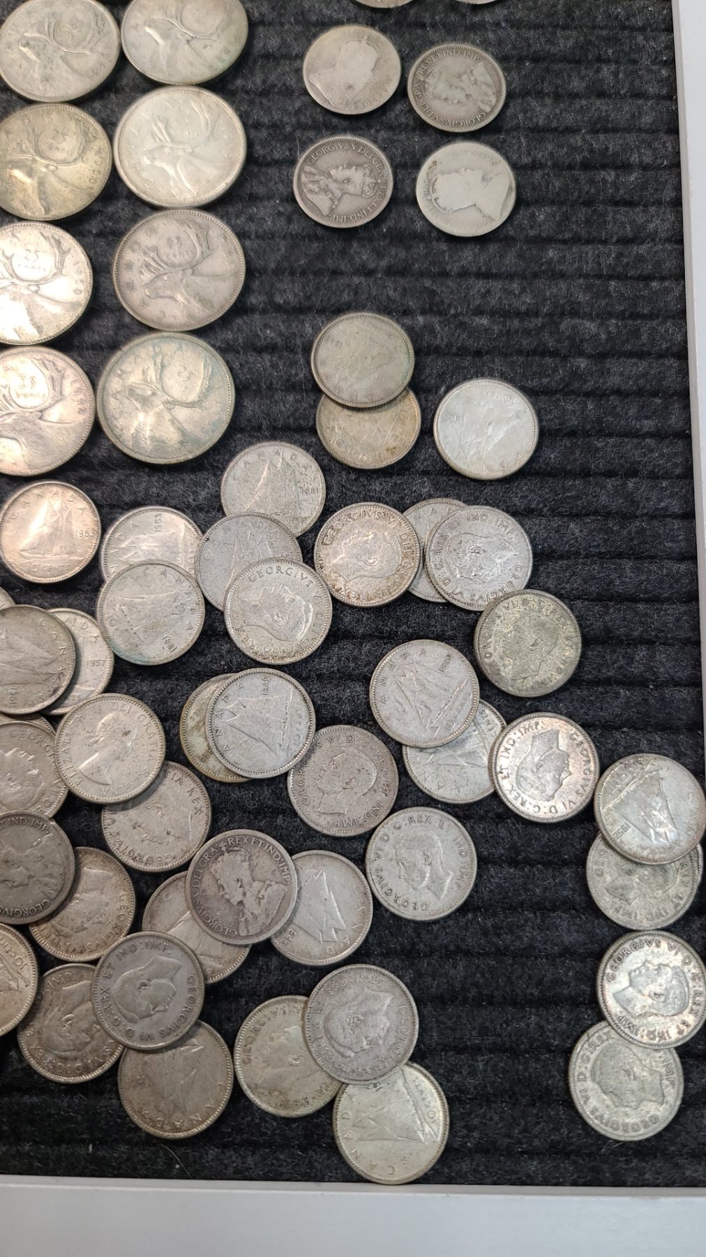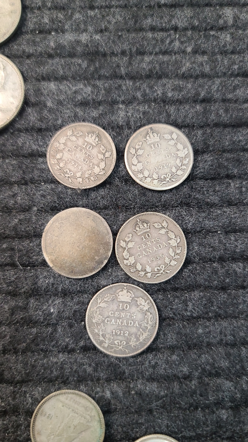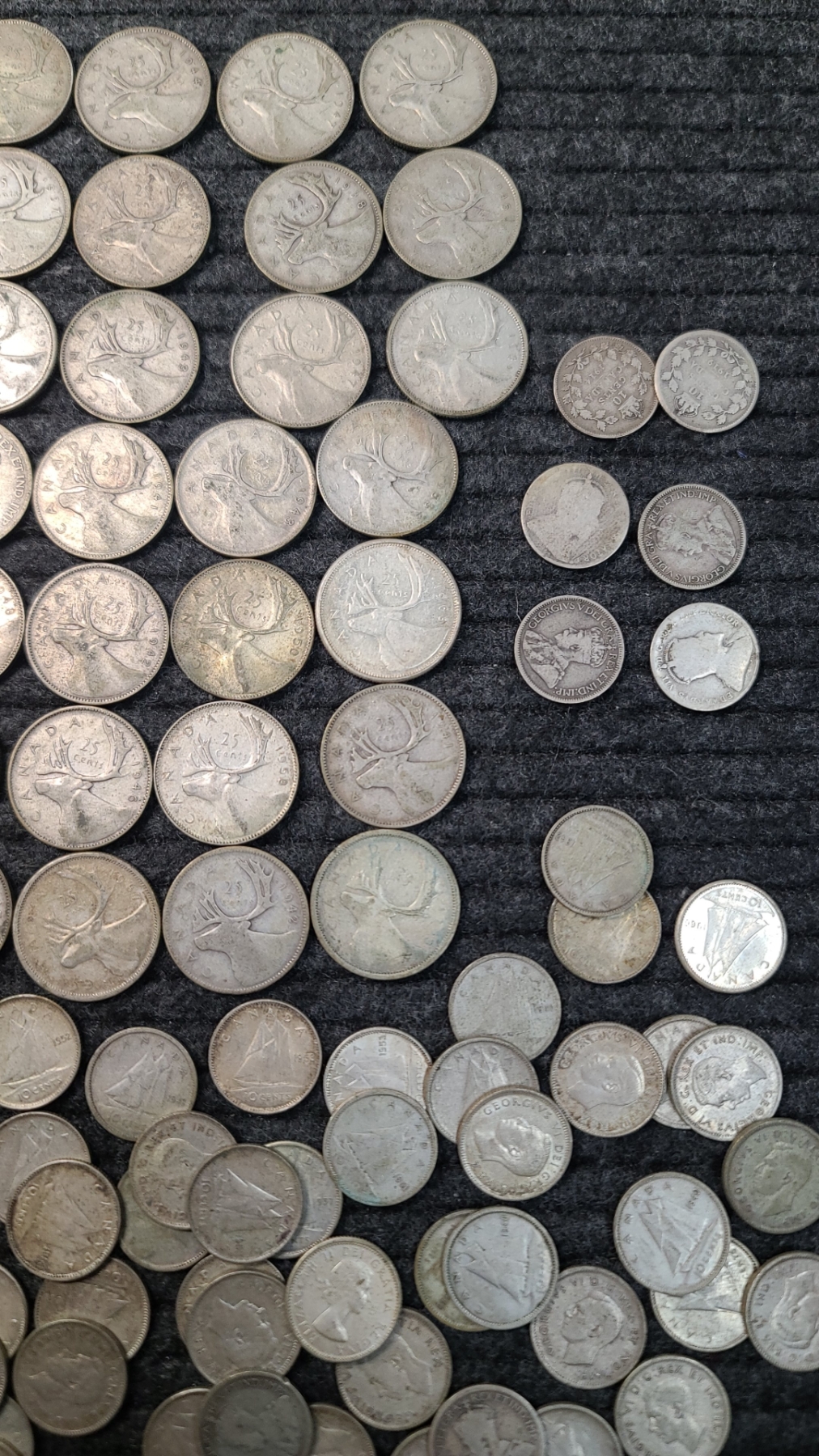 Lot Of Assorted Years Canadian Silver Coins. Canadian Silver Coins Vary In Actual Silver Weights. Face Value: $26.50