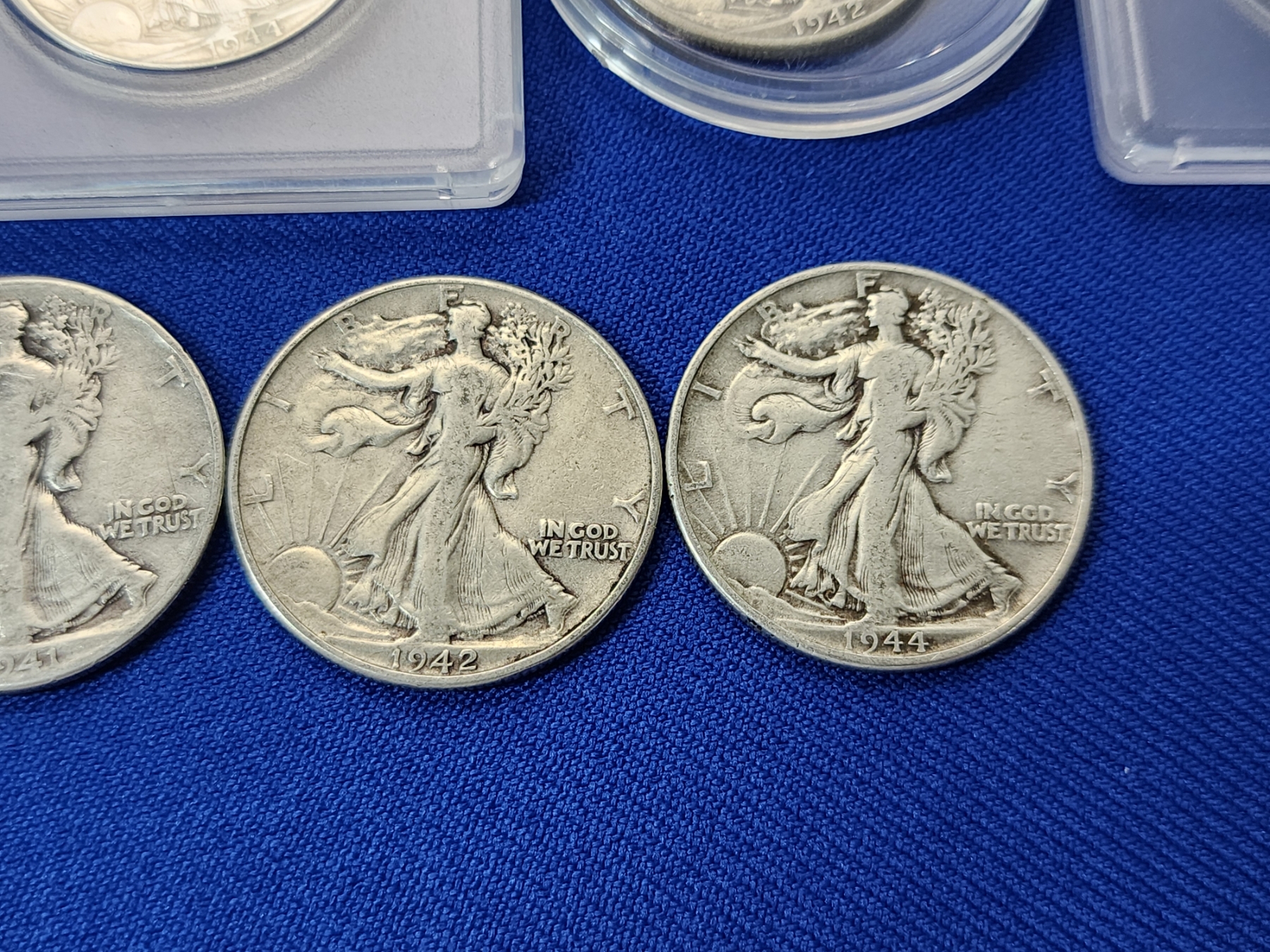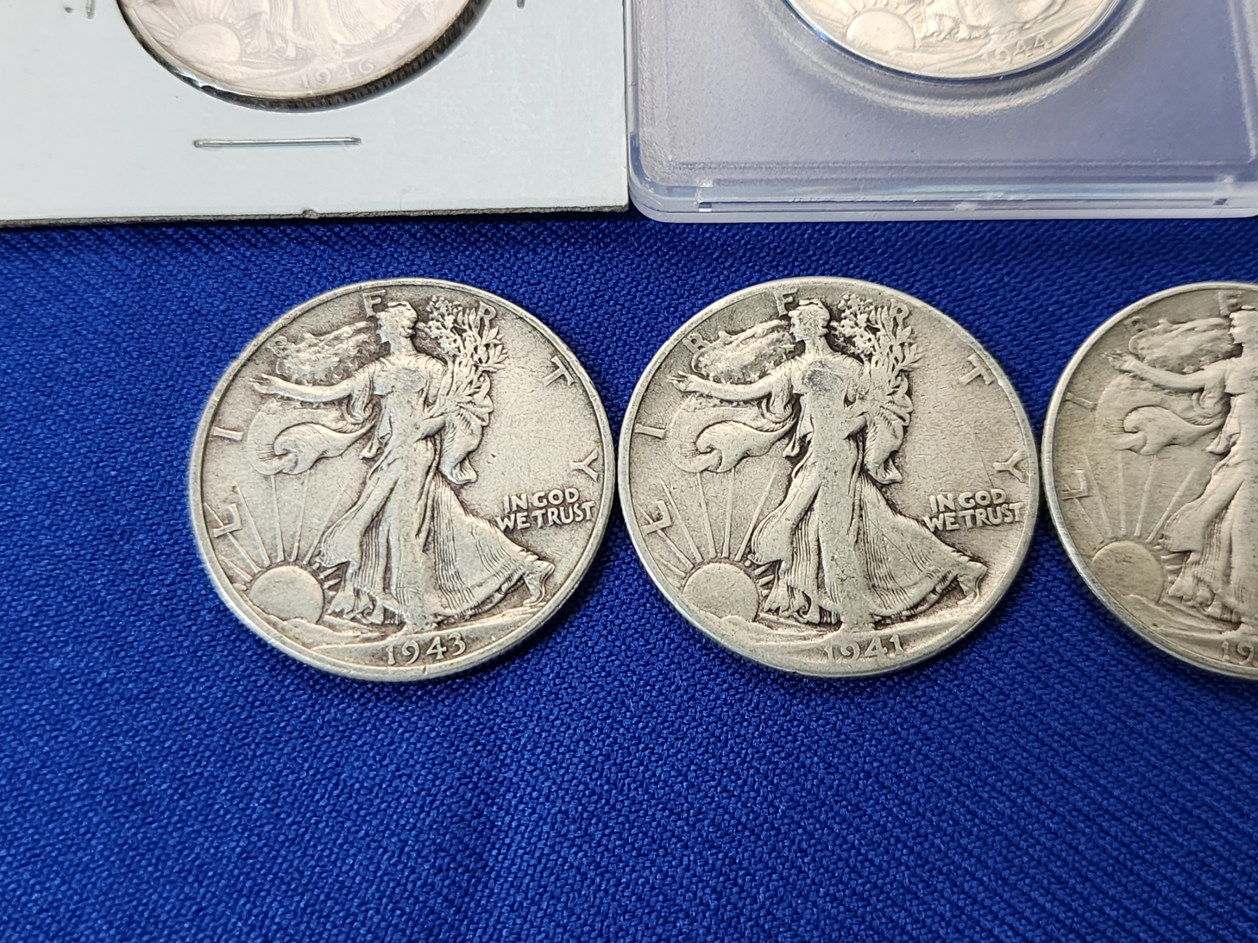 Walking Liberty Silver Half Dollars: 1946, 1943, 1944, 1942, 1942, 1942, 1944, 1941