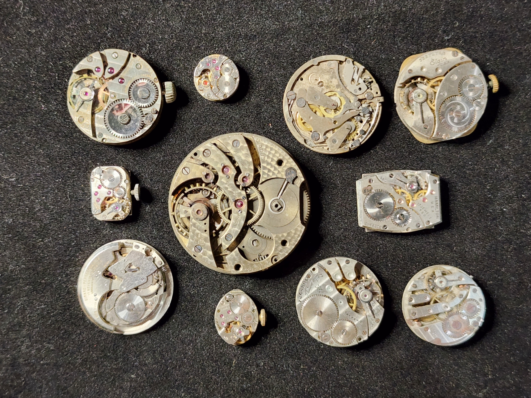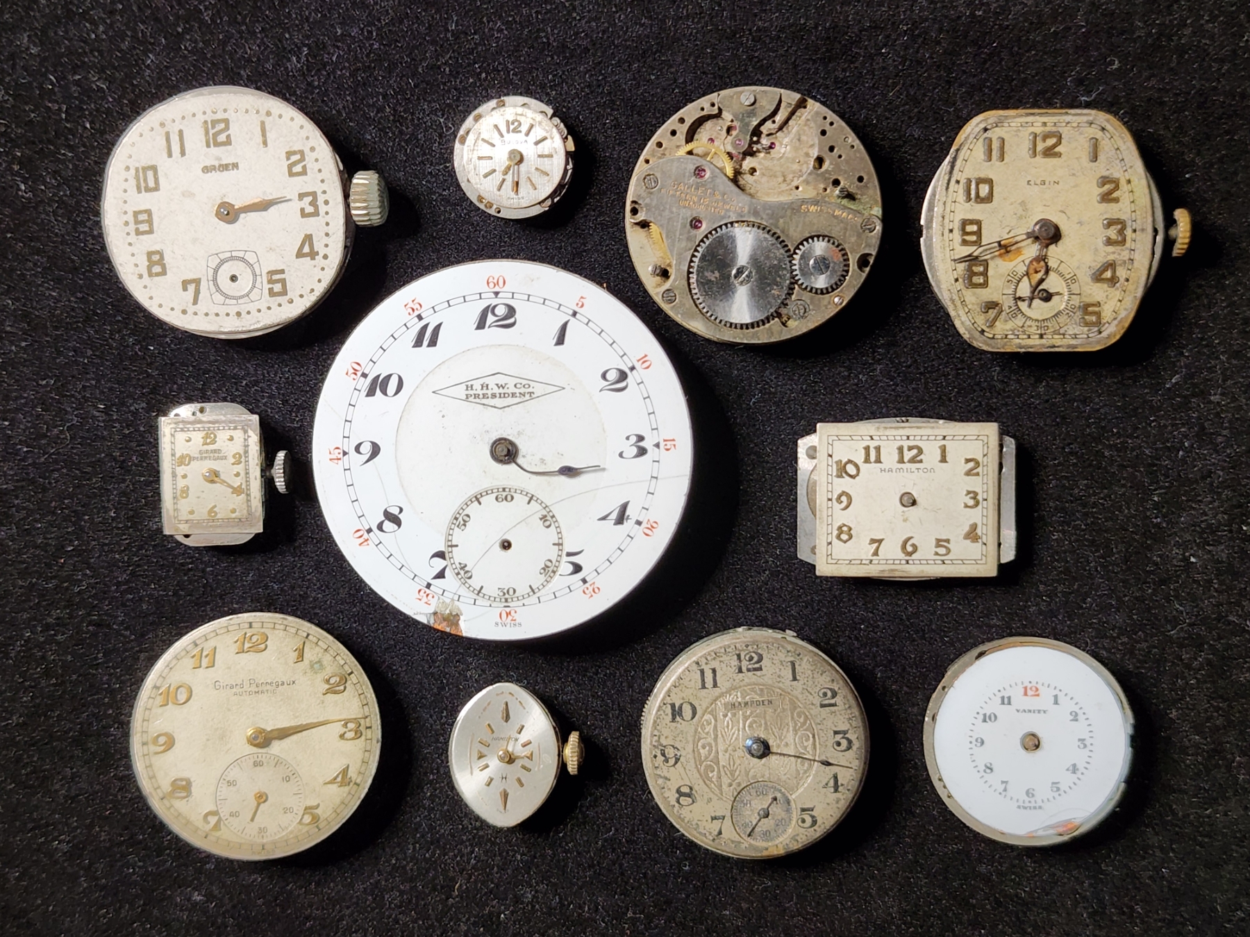 Lot of 11 Assorted Watch Heads & Mechs From Various Companies & Sizes