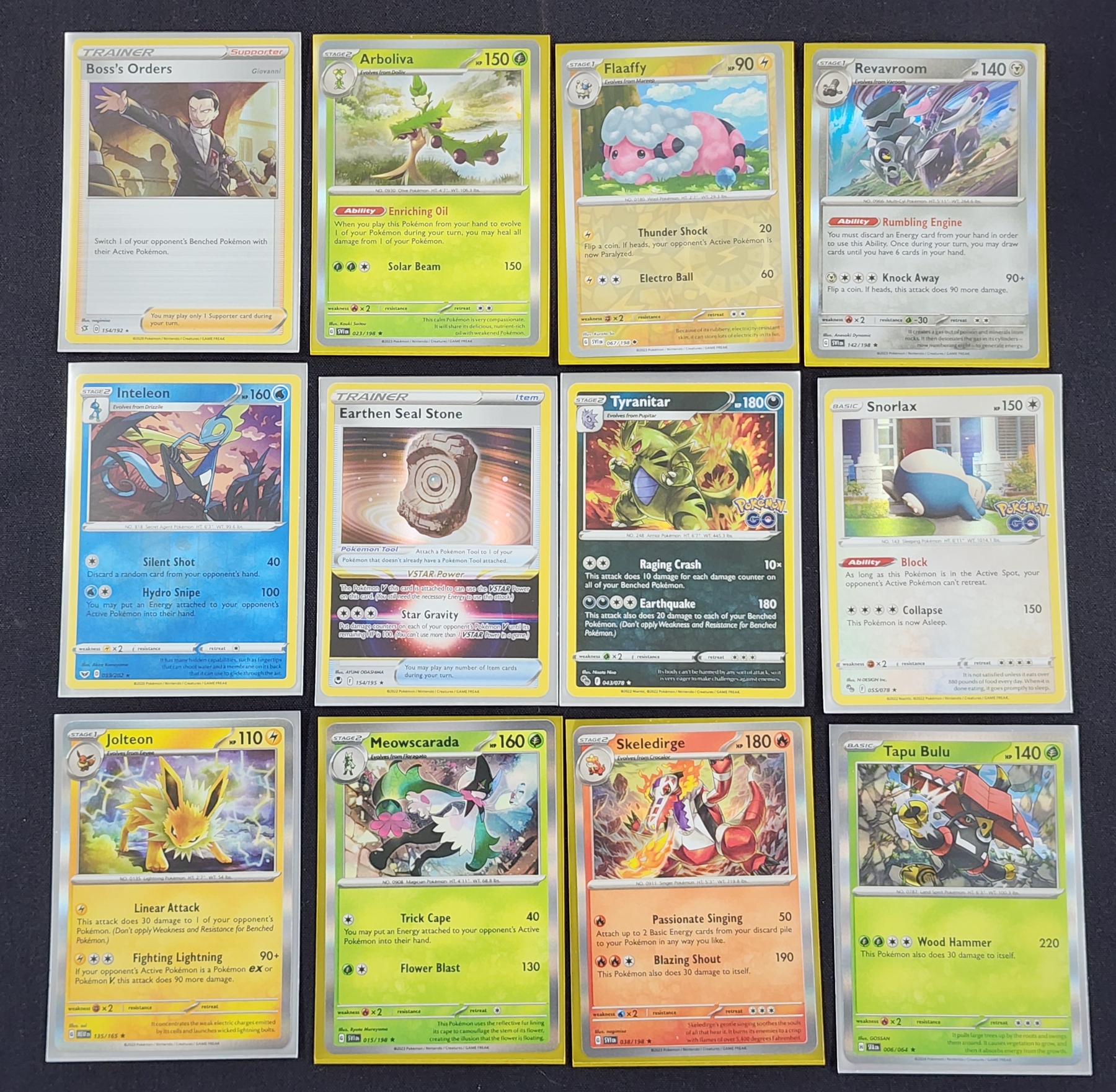 Lot of 12 Assorted Pokemon Trading Cards Including Holo & Rares Ft. Snorlax & Tyranitar & More