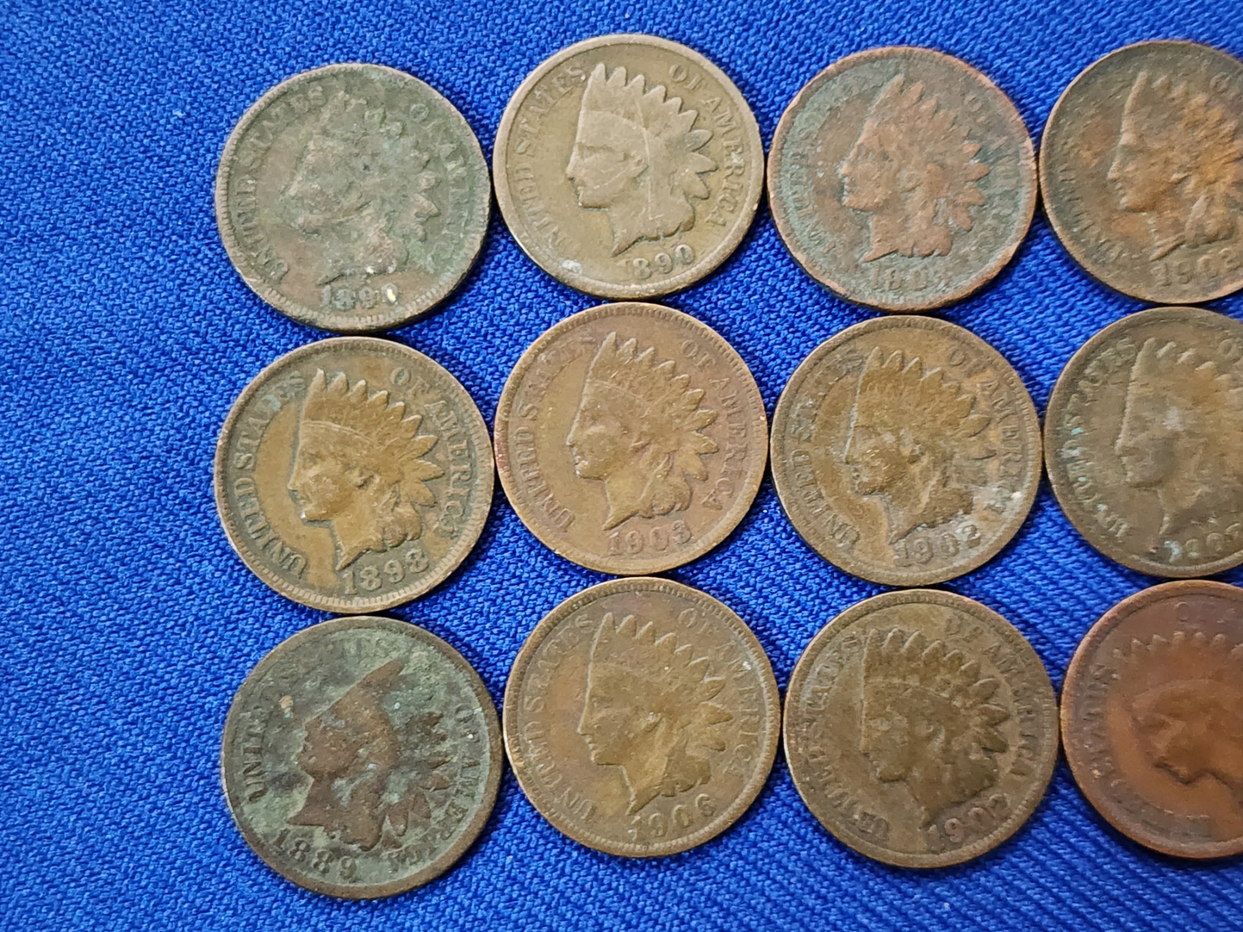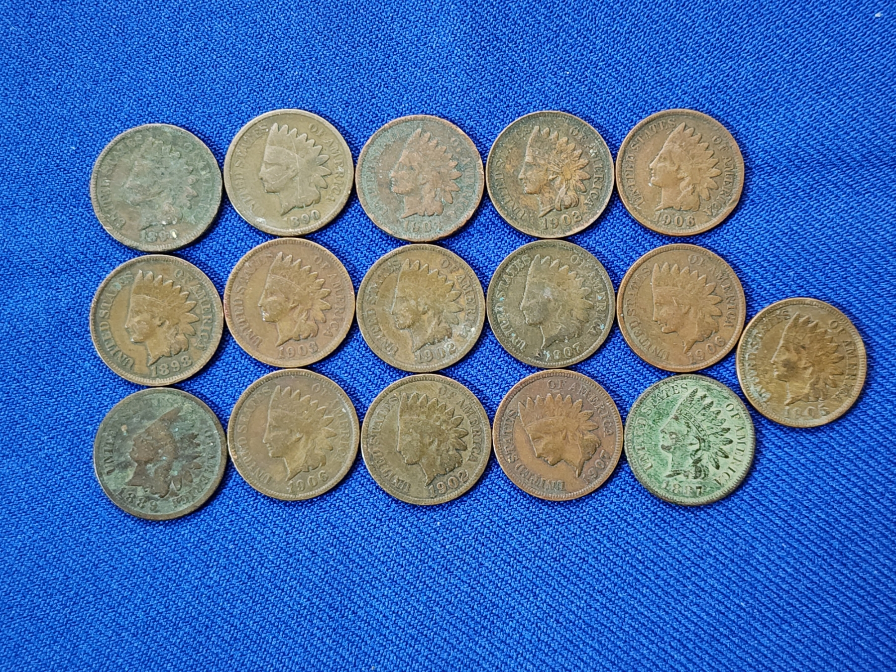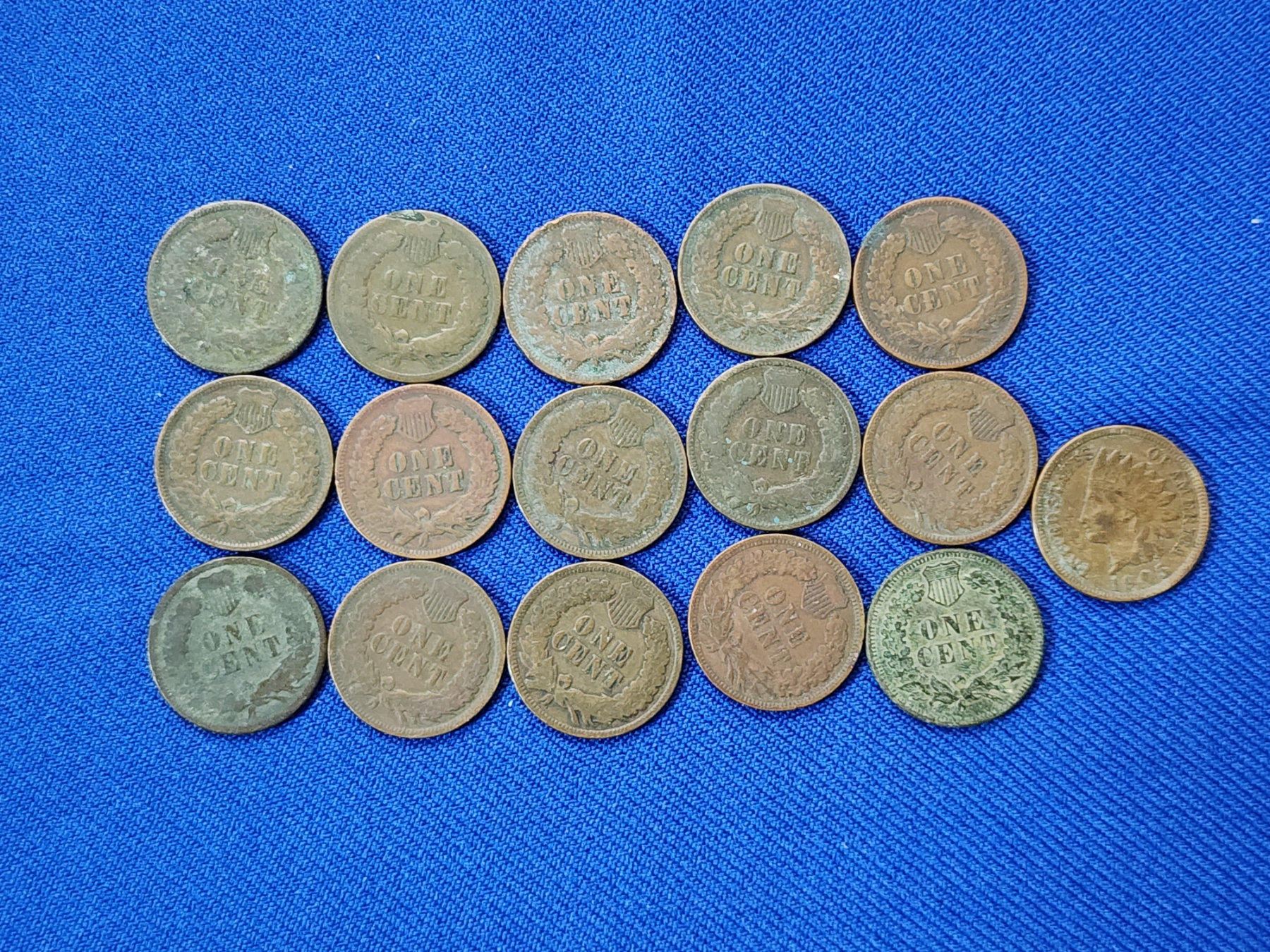 Lot of (16) Assorted Years U.S. Indian Head Cents