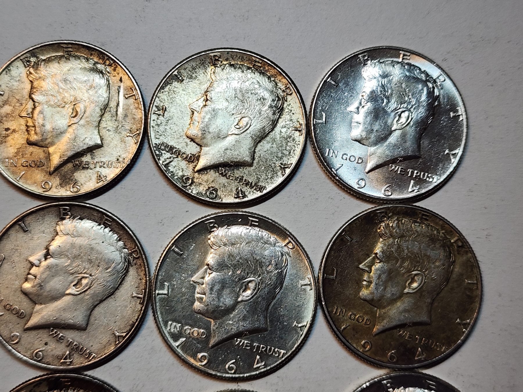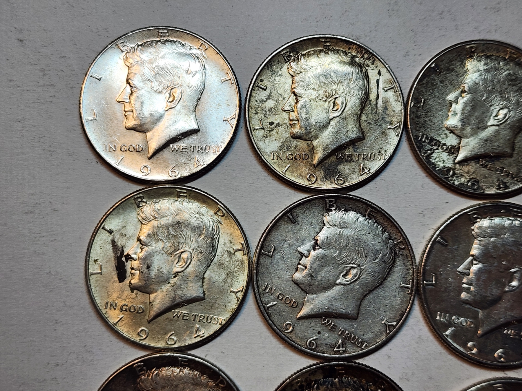 Lot of 1964 Kennedy Silver Half Dollars - 90% Silver Face Value: $6.00