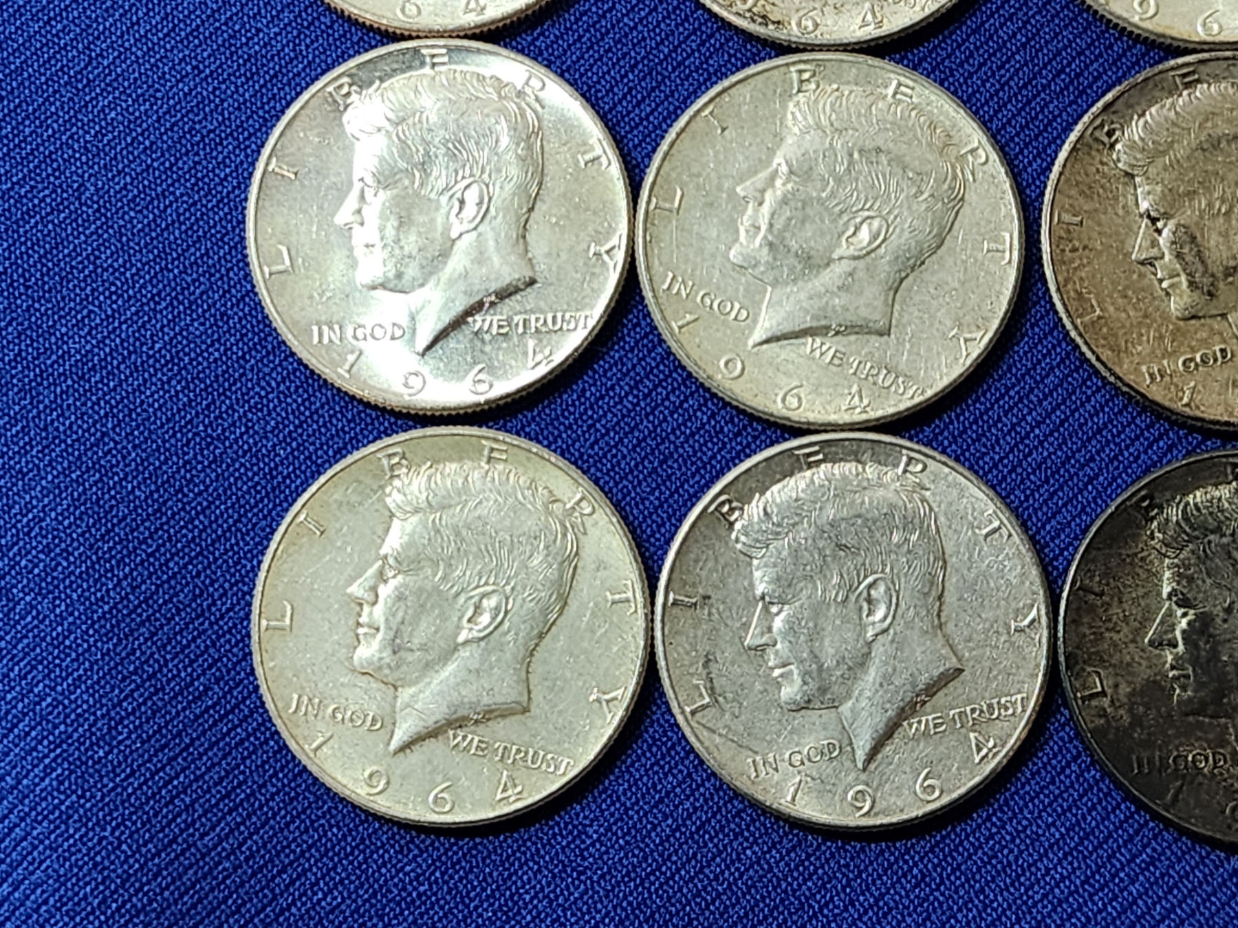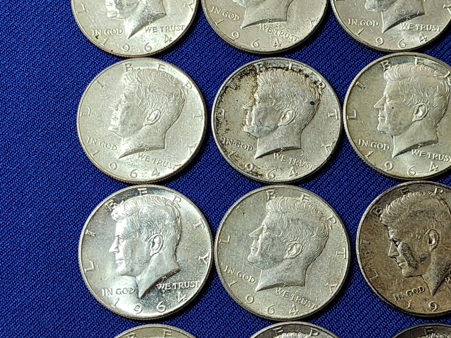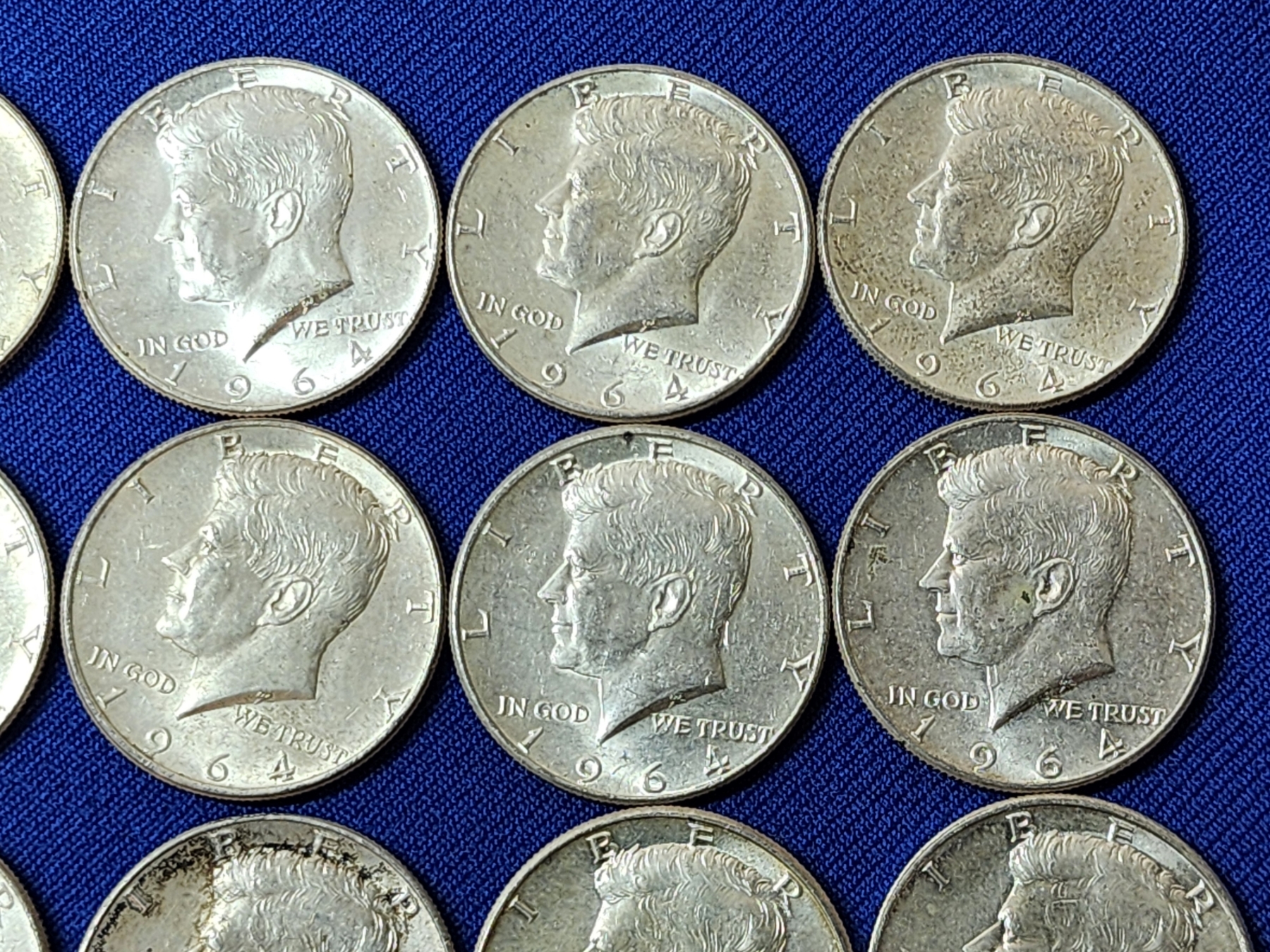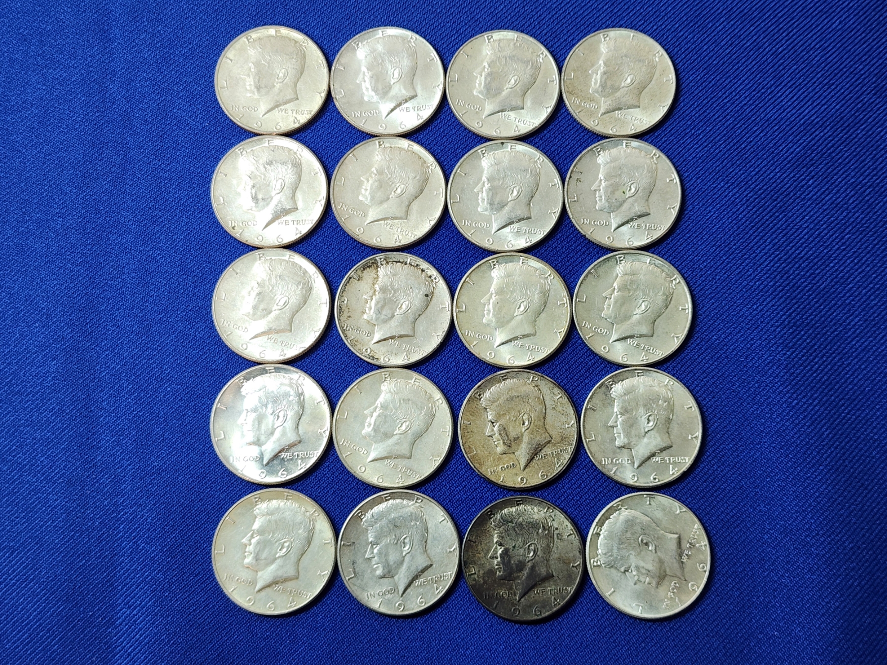 Lot of (20) 1964 Kennedy Half Dollars - 90% Silver FV: $10.00