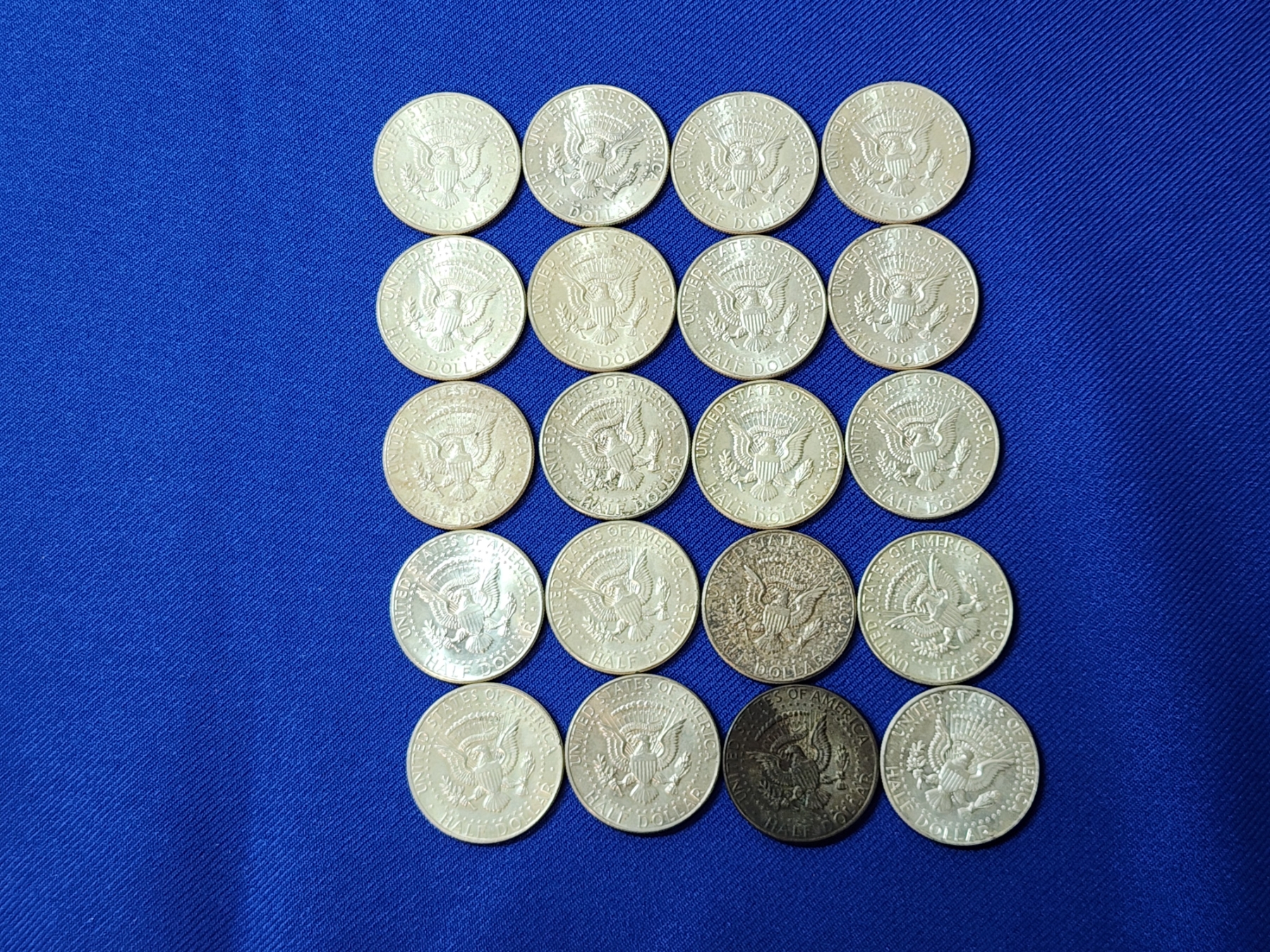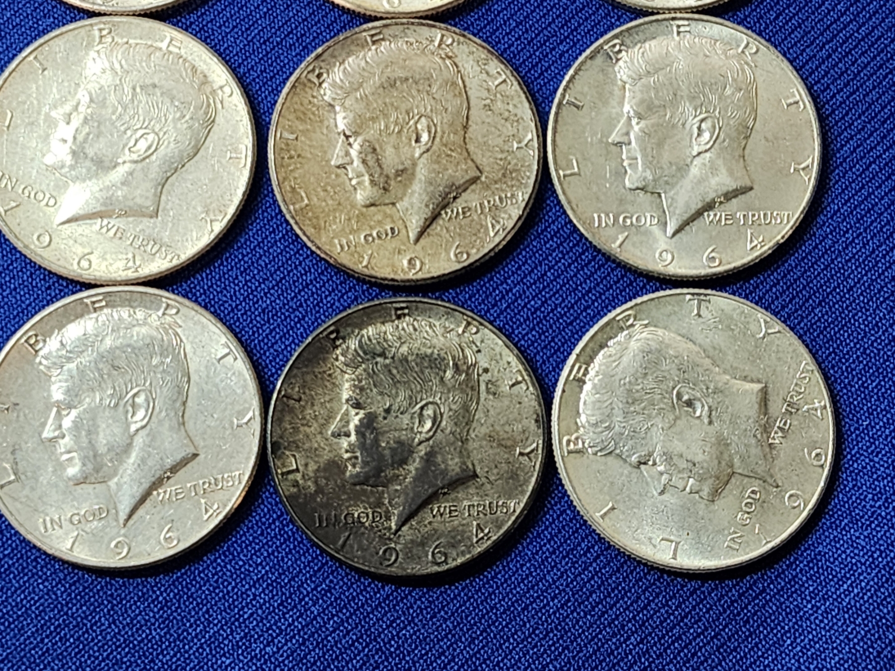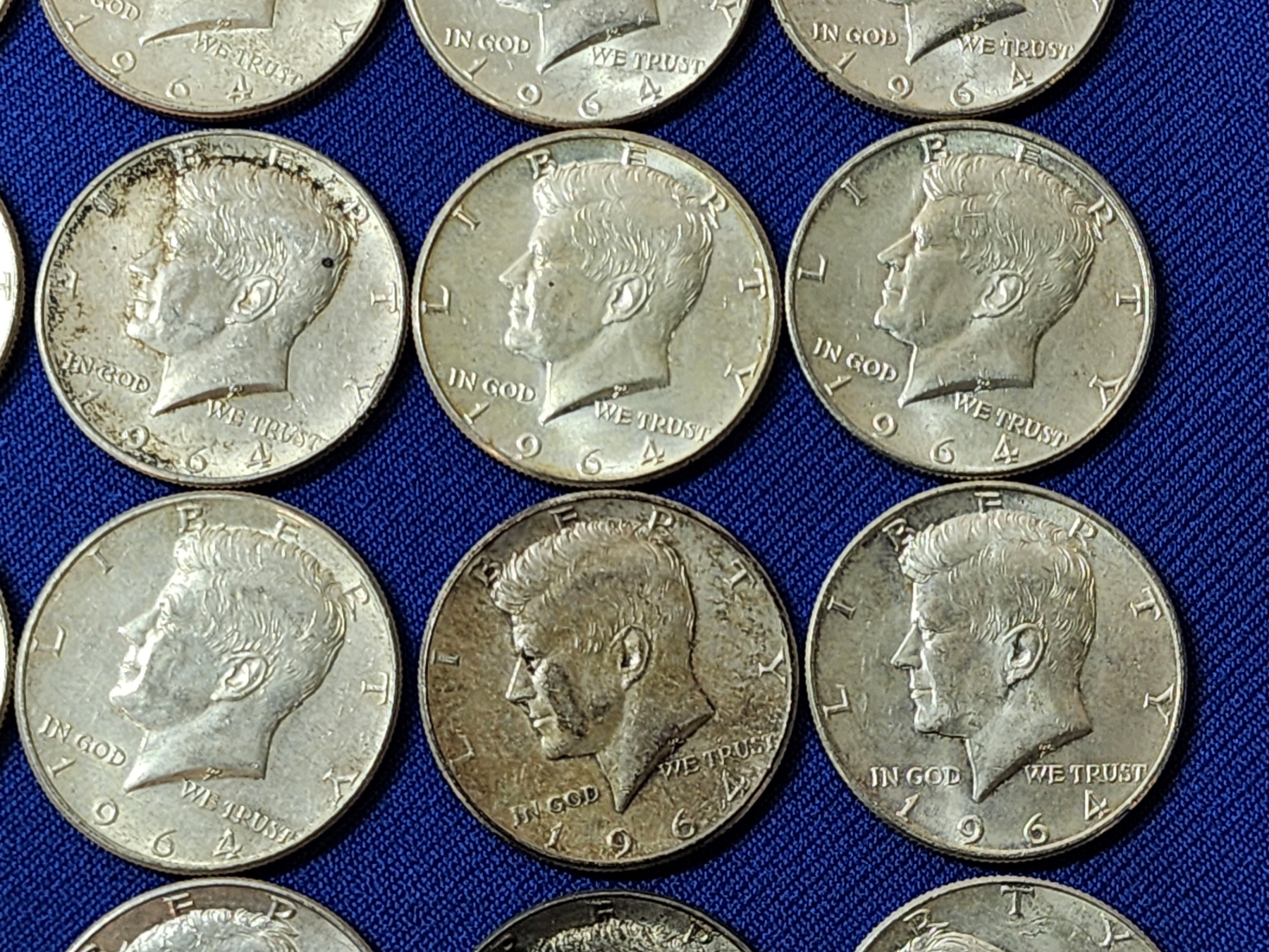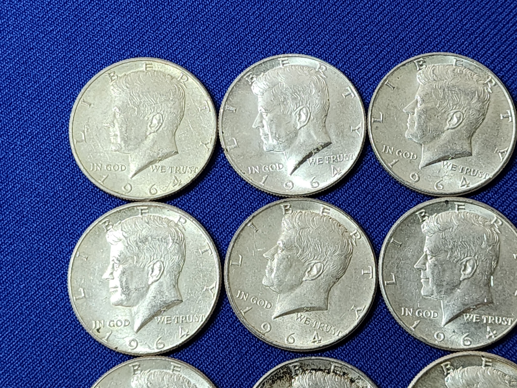 Lot of (20) 1964 Kennedy Half Dollars - 90% Silver FV: $10.00