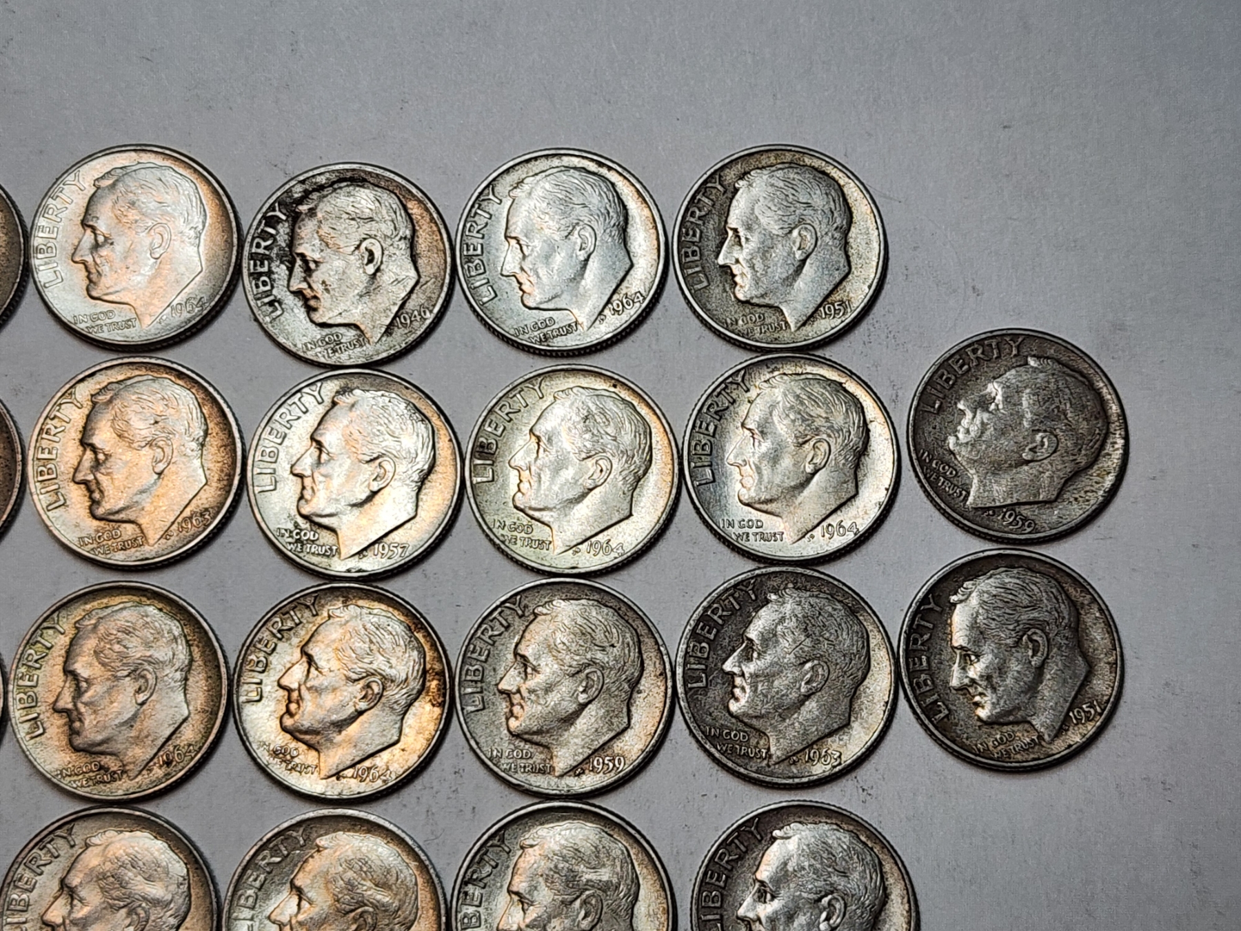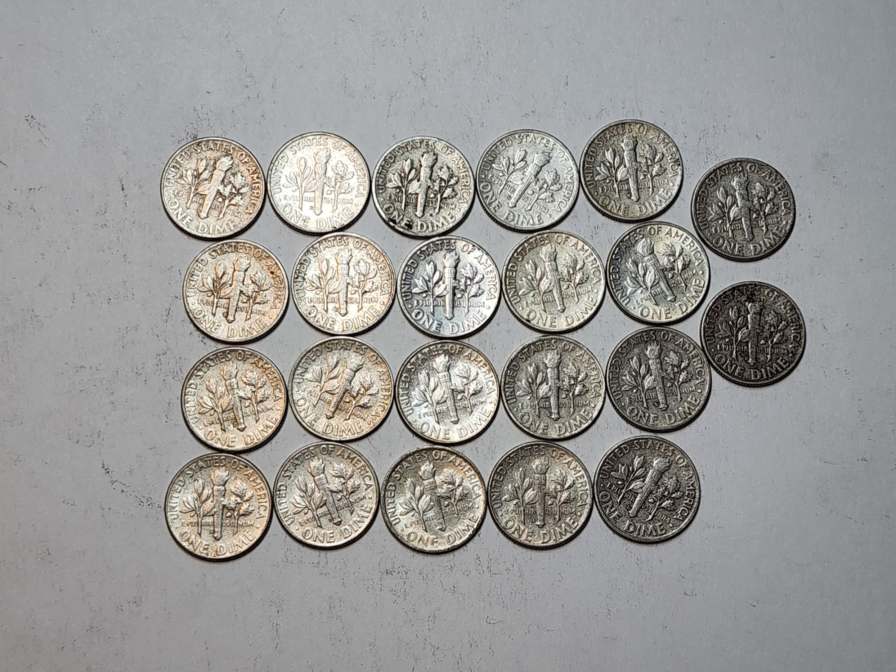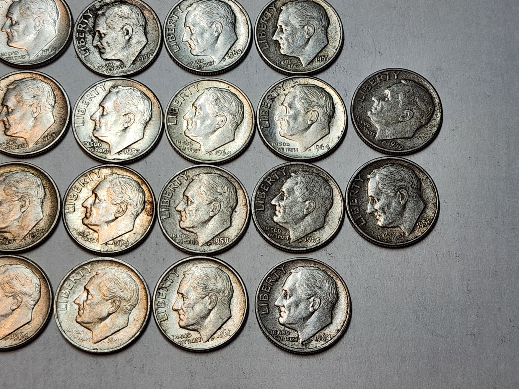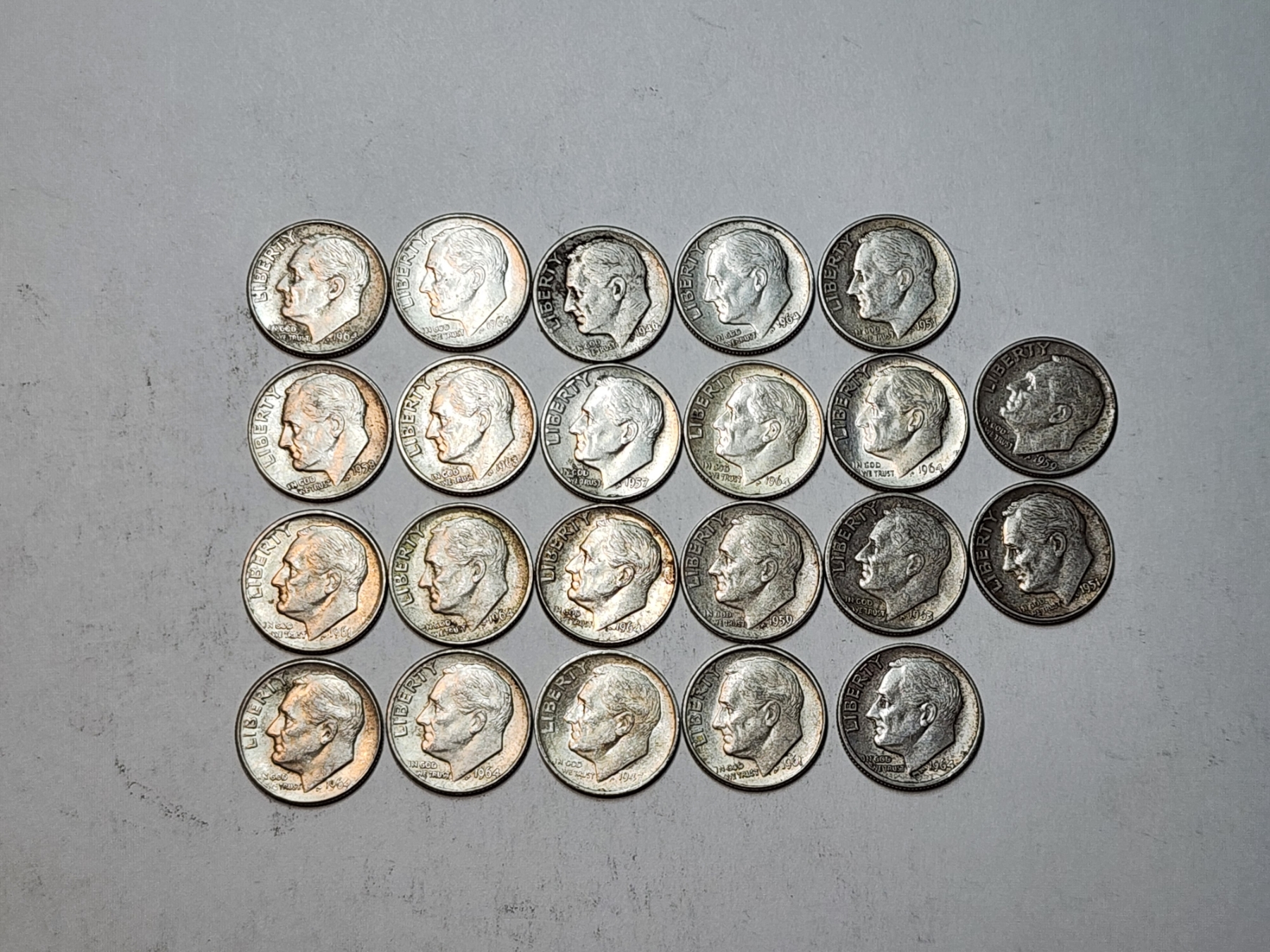 Lot of 22 Assorted Year Silver Roosevelt Dimes FV: $2.20