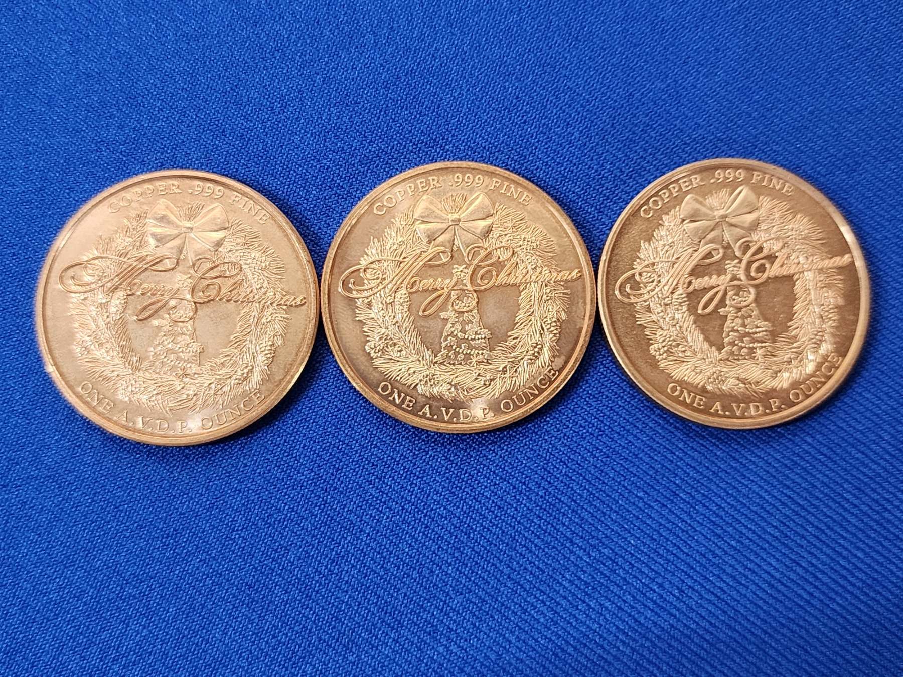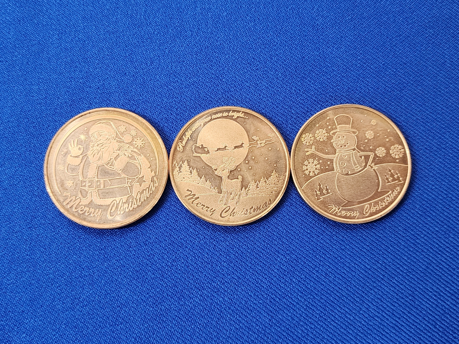 Lot of (3) Christmas Theme 1 oz .999 Fine Copper Rounds in Excellent Condition