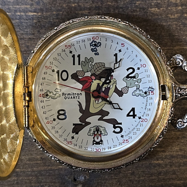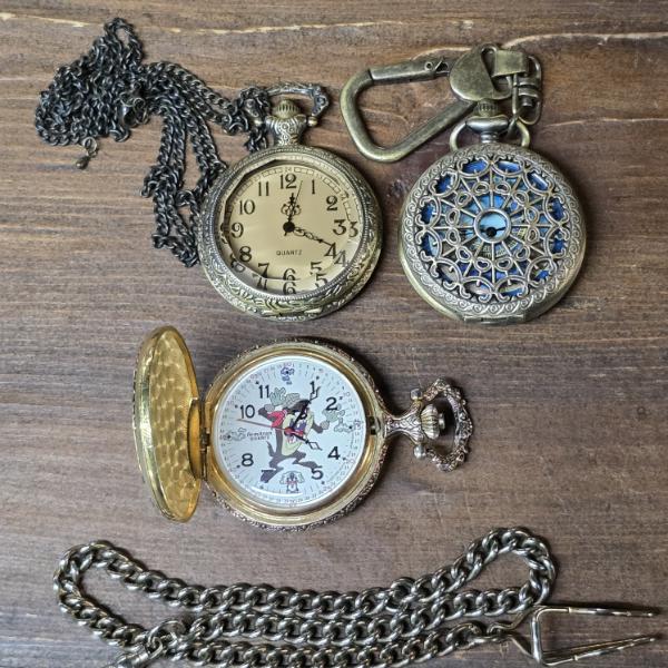 Lot of 3 Pocket Watches and a Watch Chain incl. Tazmanian Devil Watch